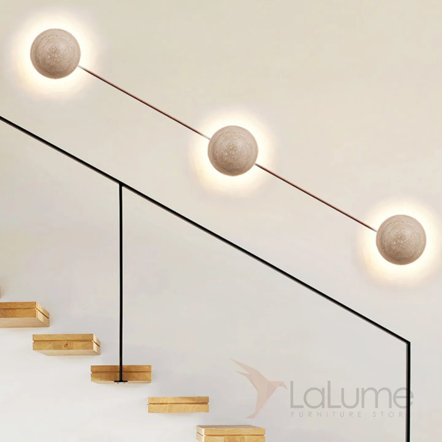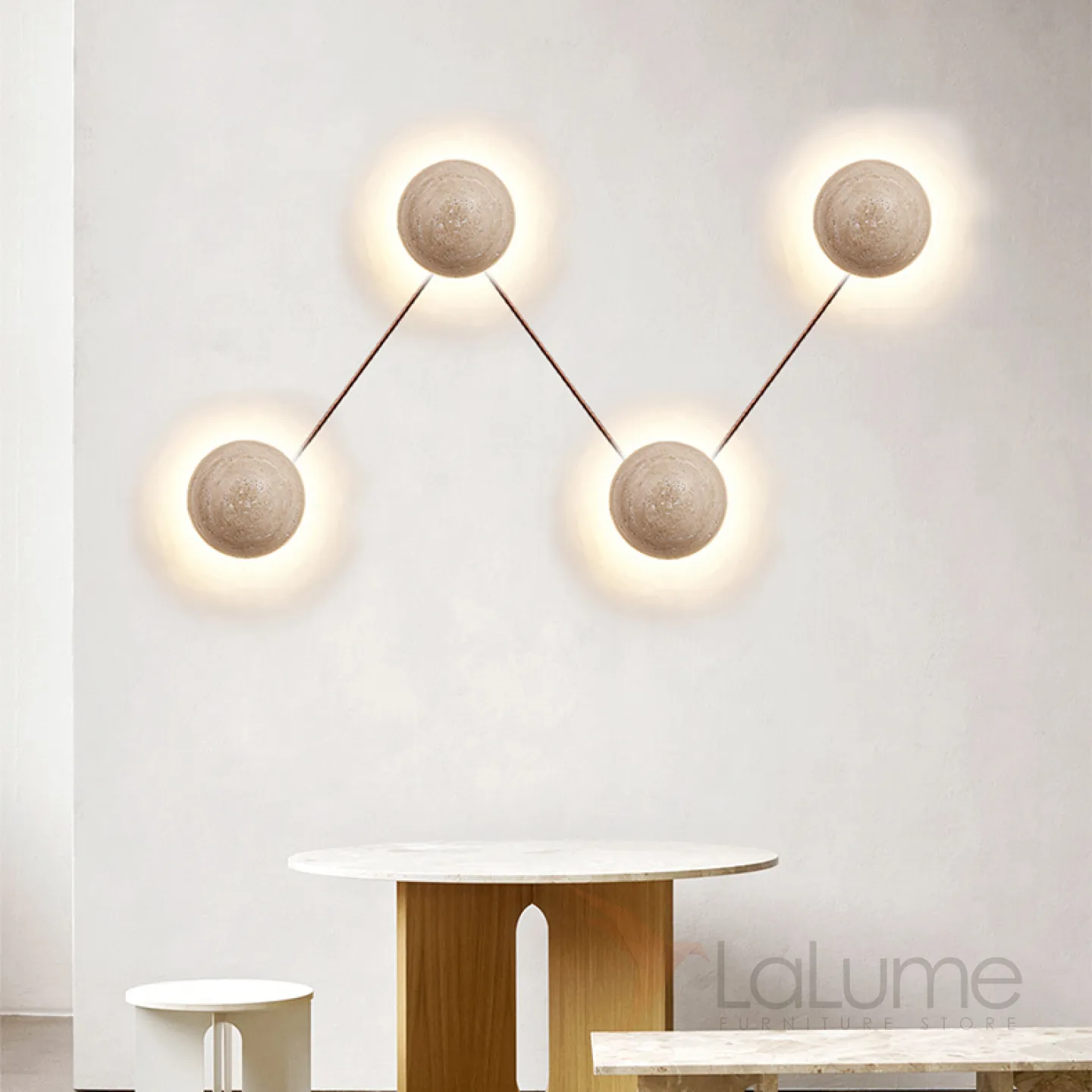 Настенный светодиодный светильник с шаровидным корпусом из желтого камня травертина POVL WALL L4