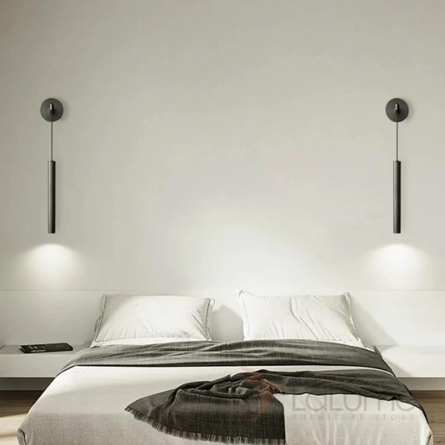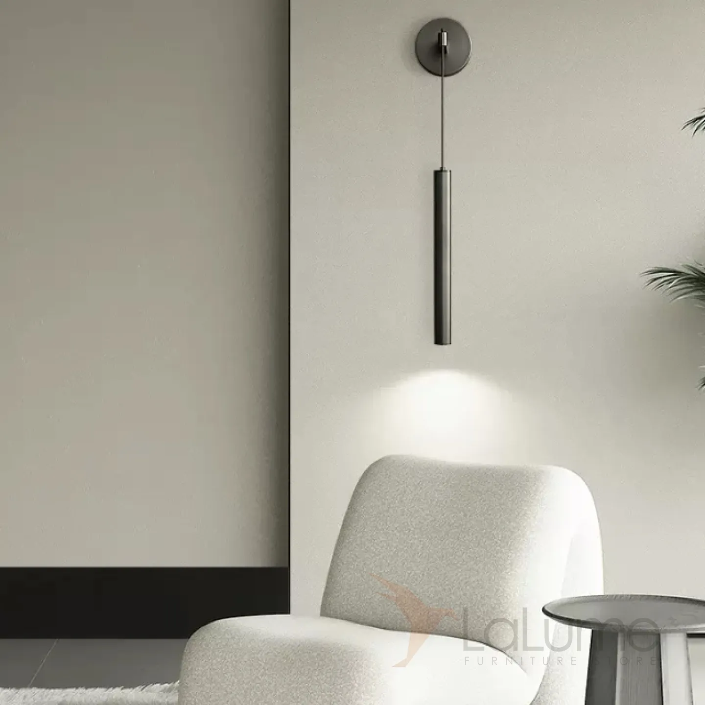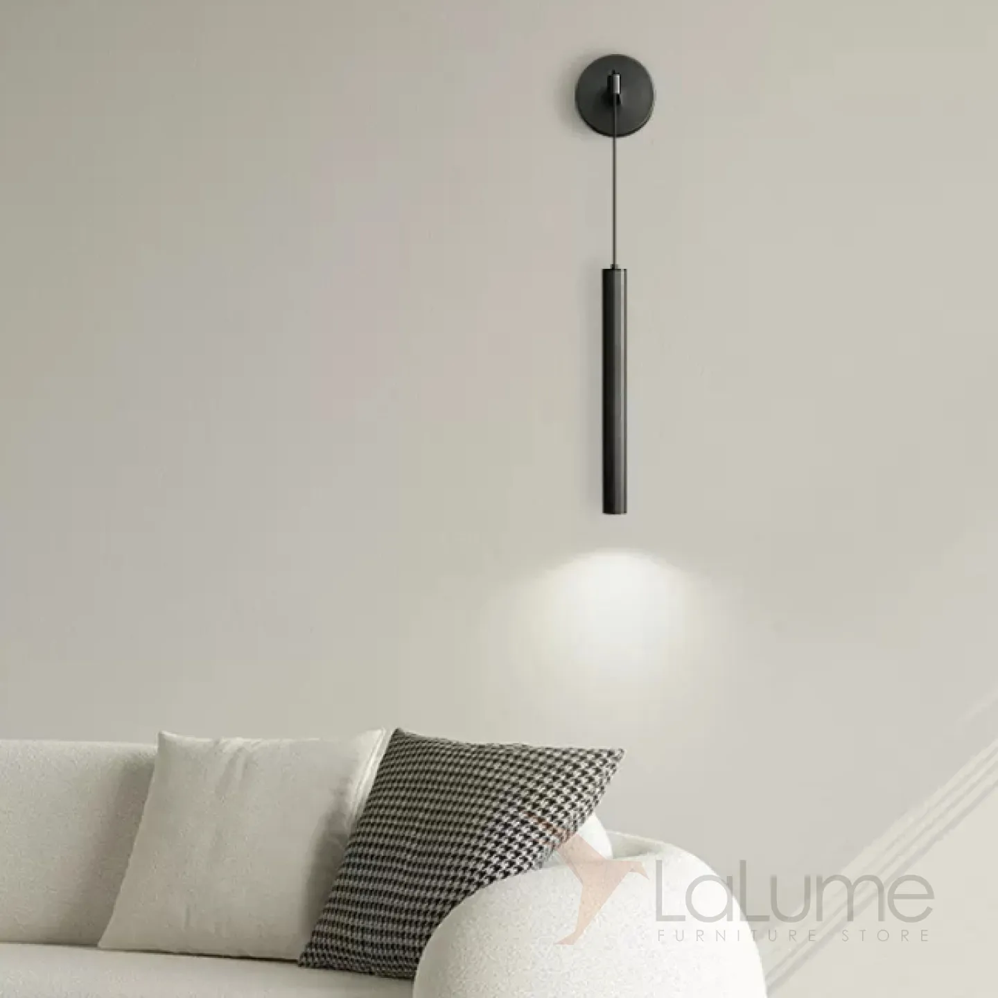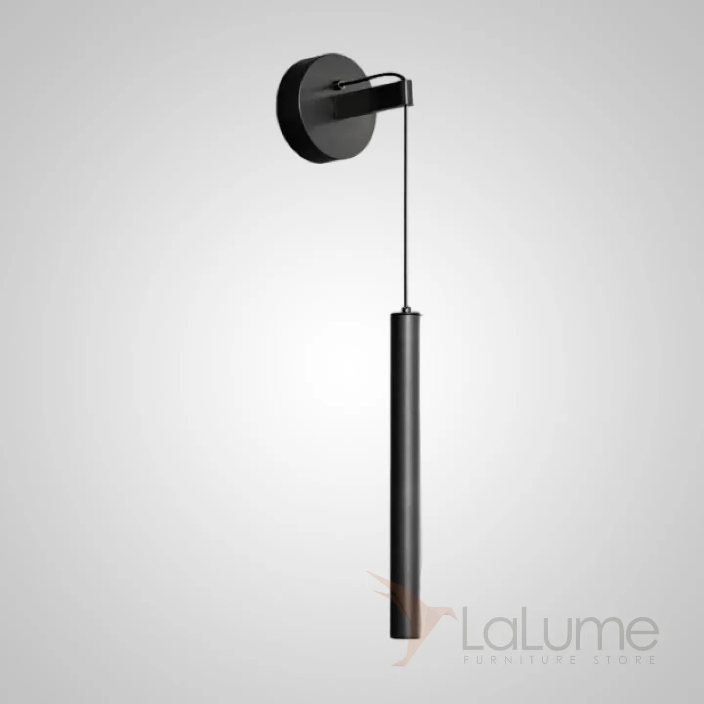 Настенный светодиодный светильник с вытянутым цилиндрическим корпусом на подвесе с круглым креплением ASKER Black