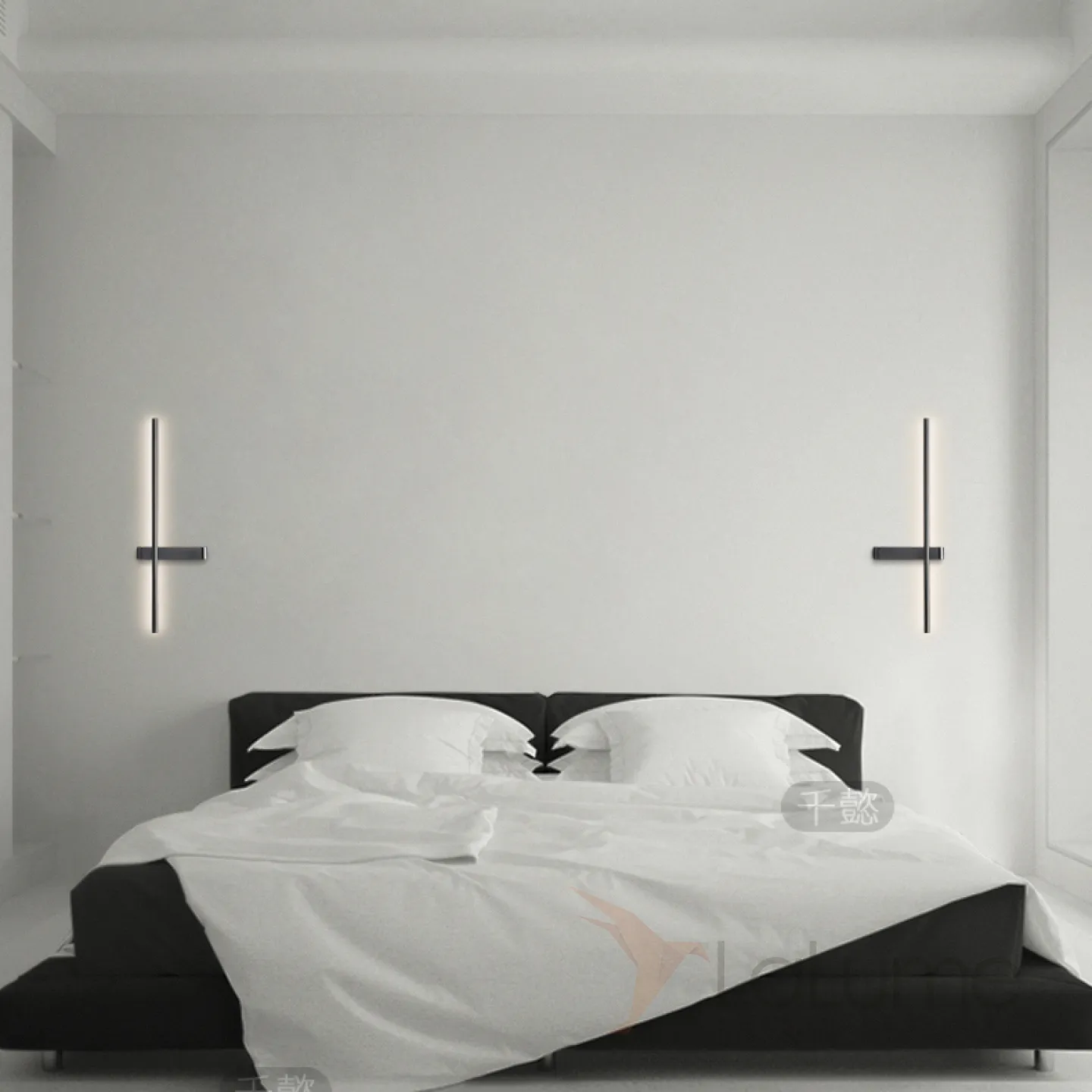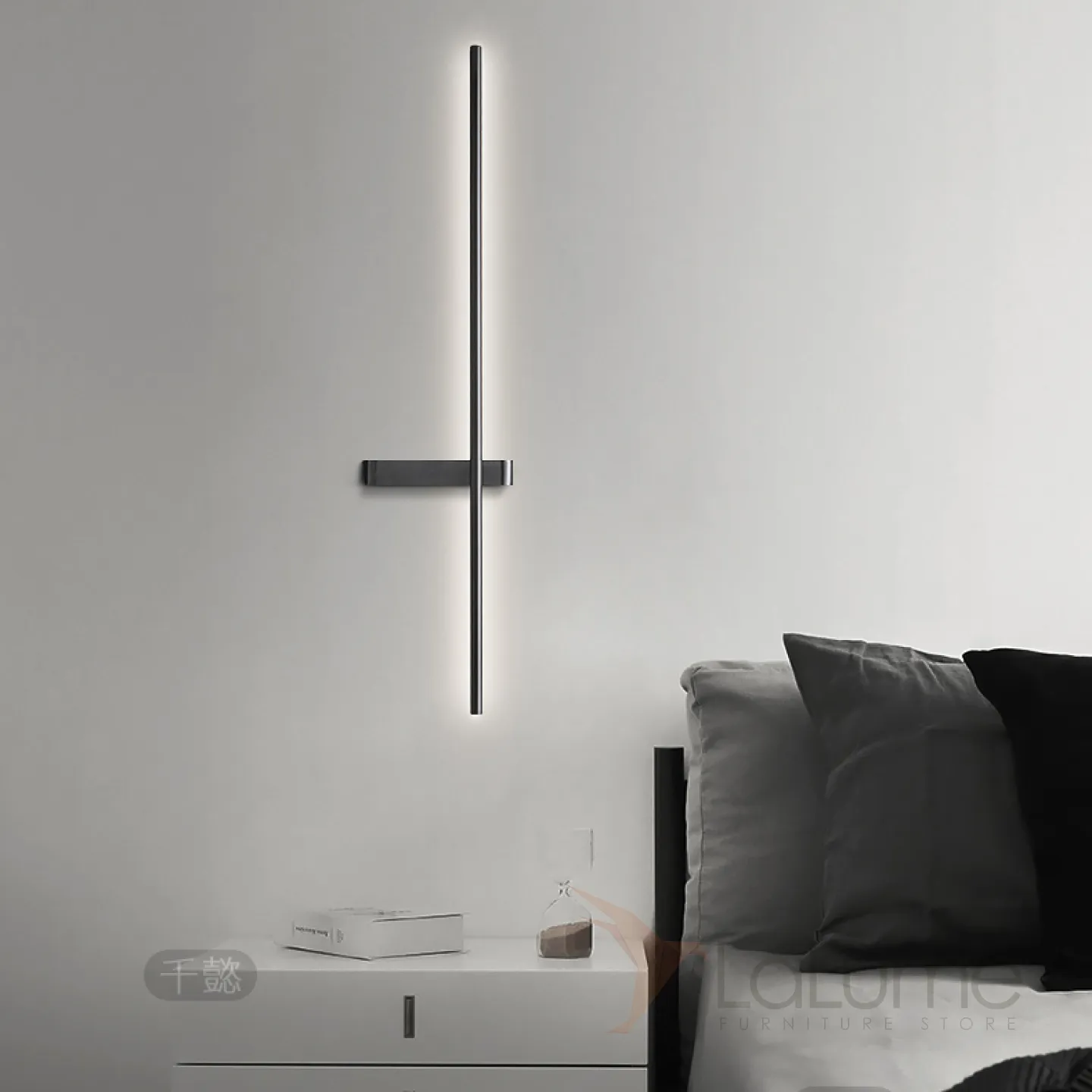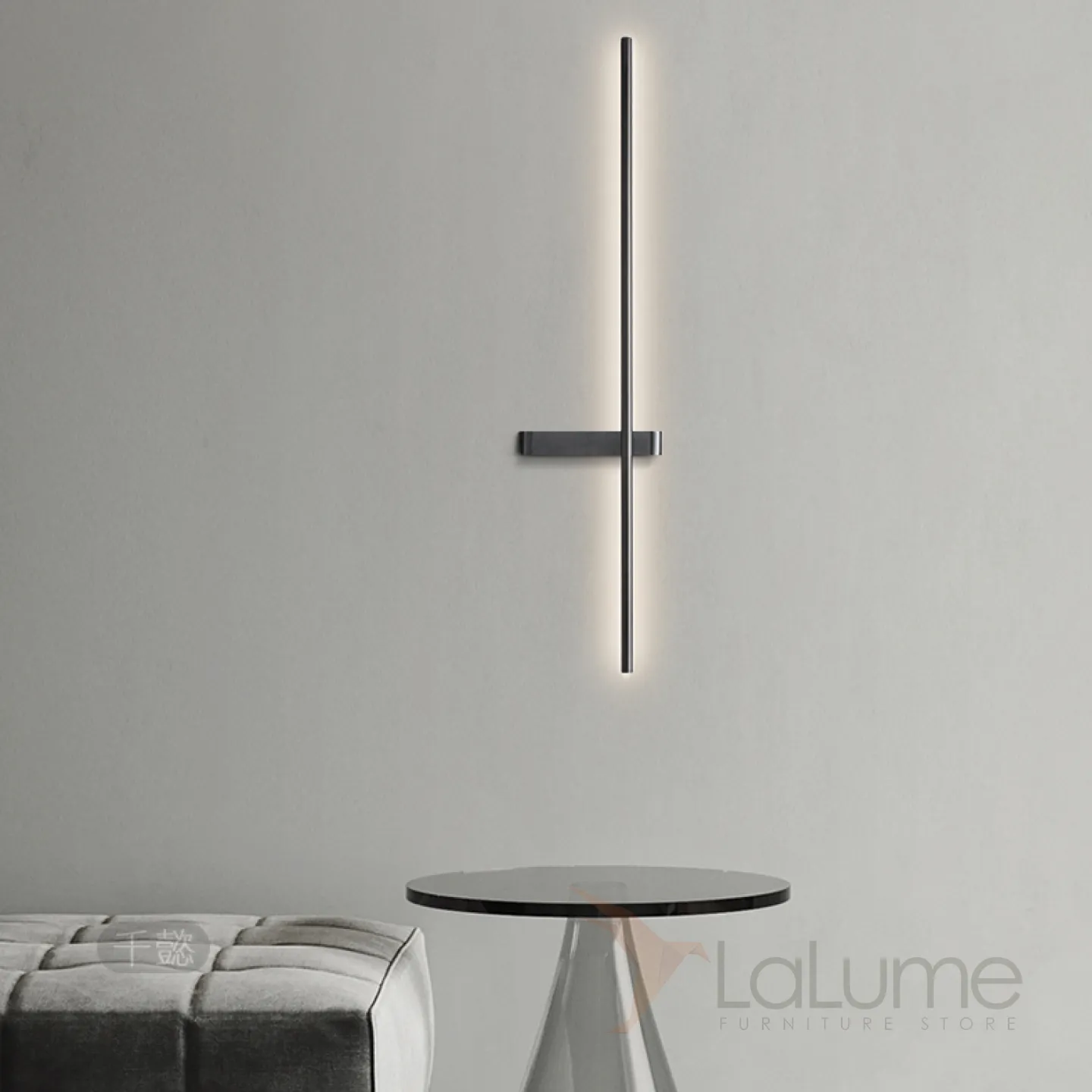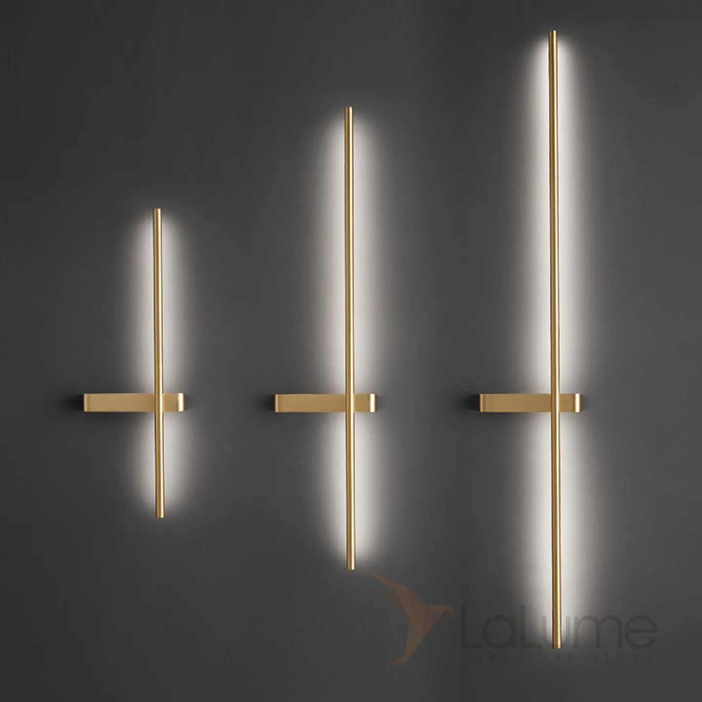 Серия парных настенных светильников в виде светящегося стержня из настоящей и черненой латуни GIA PAIR H60 Left Black