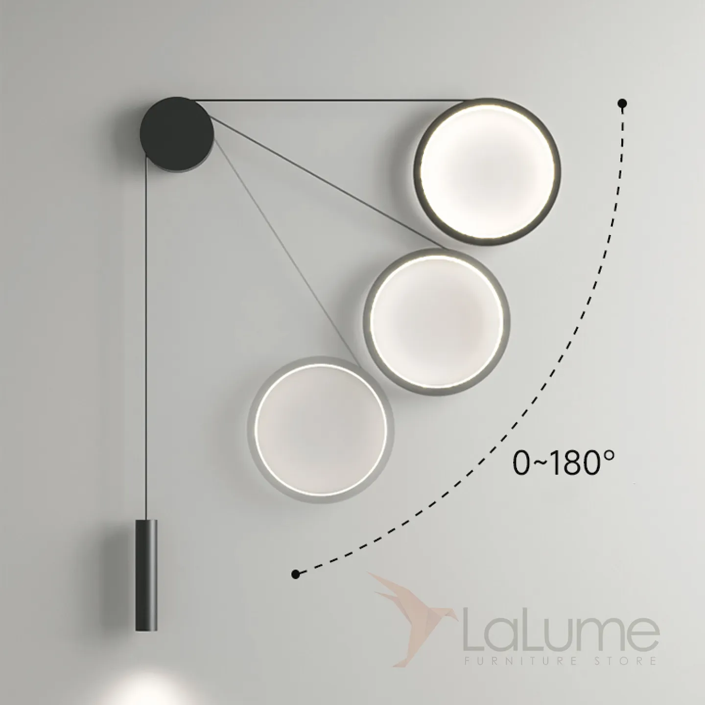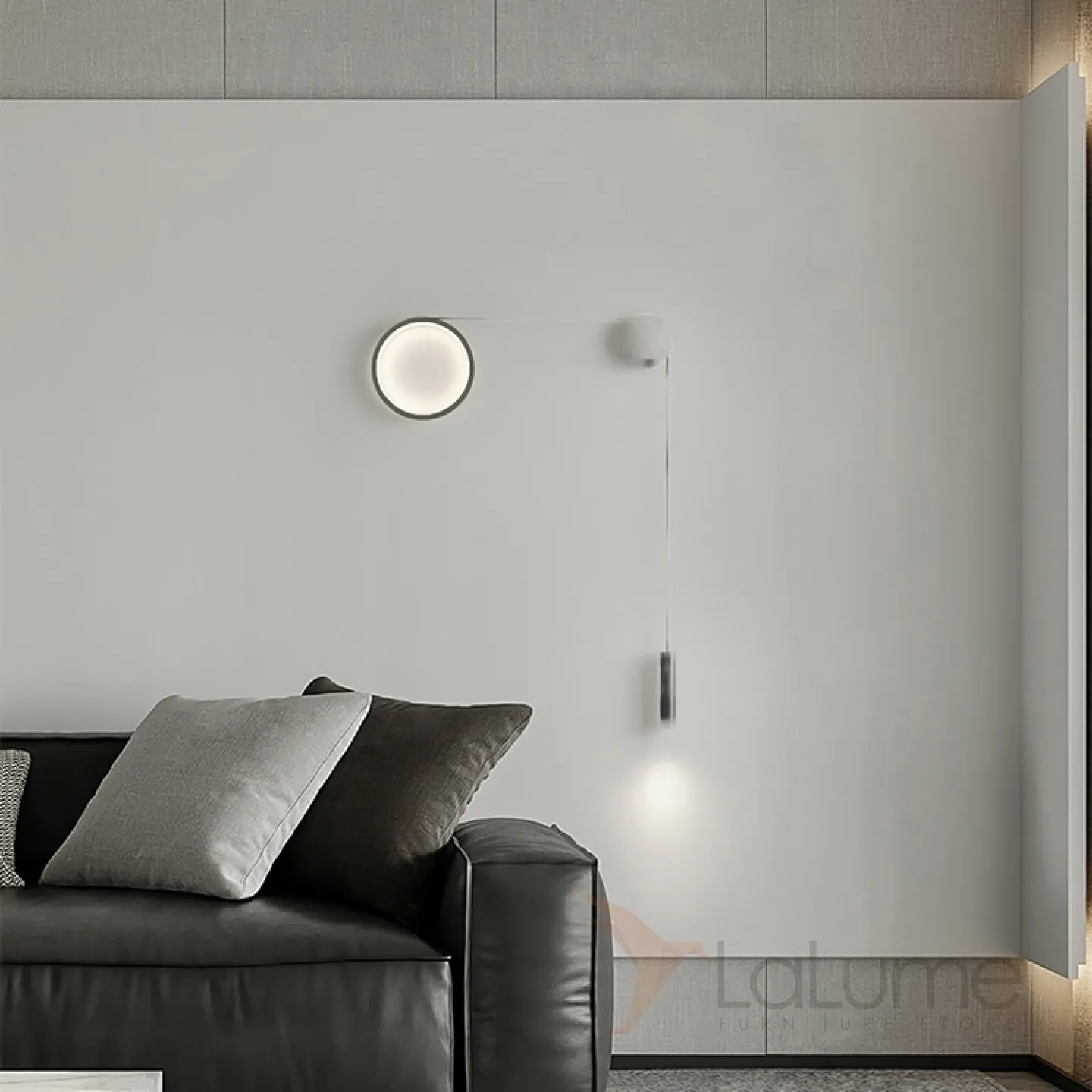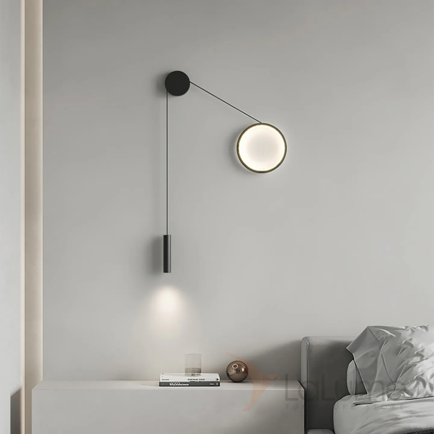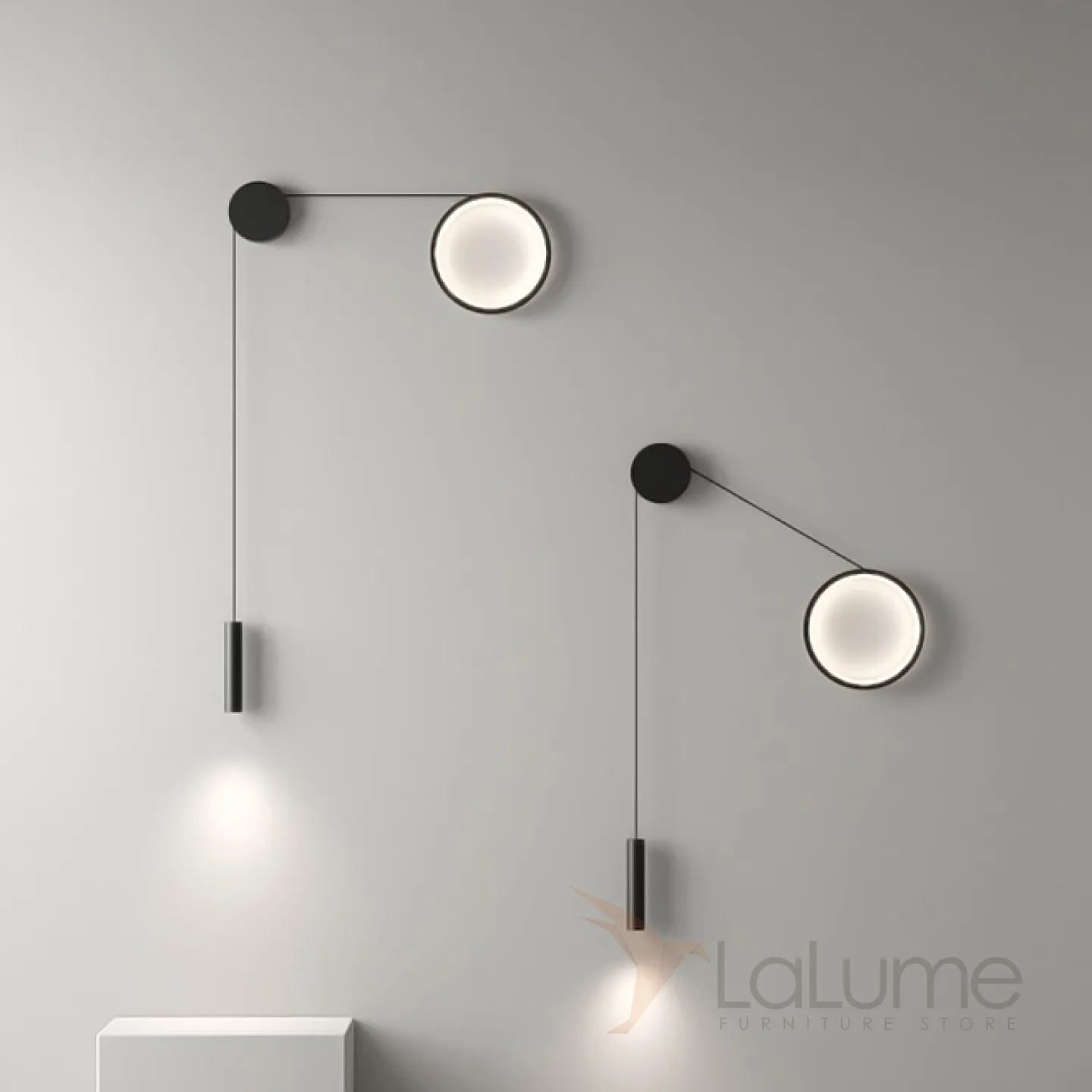 Парные светодиодные бра в виде комбинации светящегося кольца и спота на натяжном тросе HOOK Right