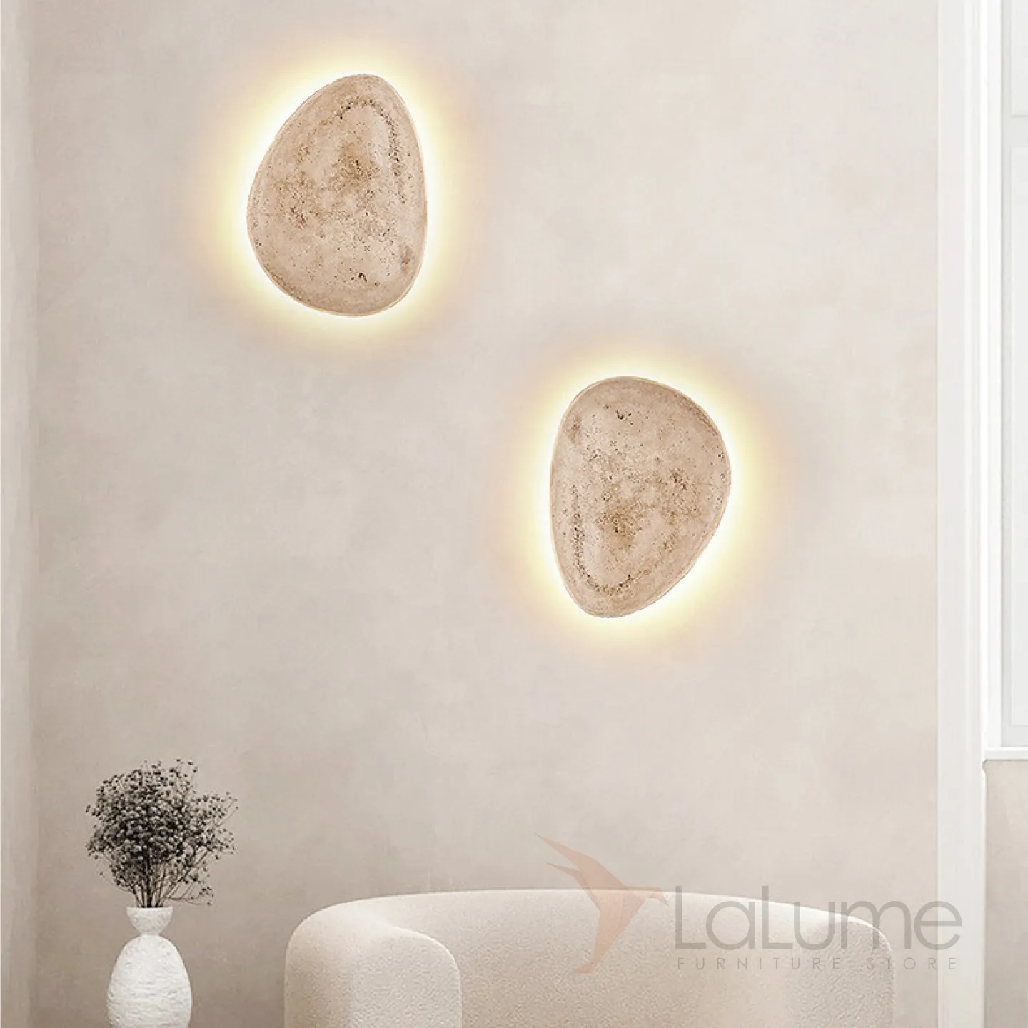 Настенный светодиодный светильник светильник с плоским корпусом из натурального камня травертина BLAS С выключателем цепочкой