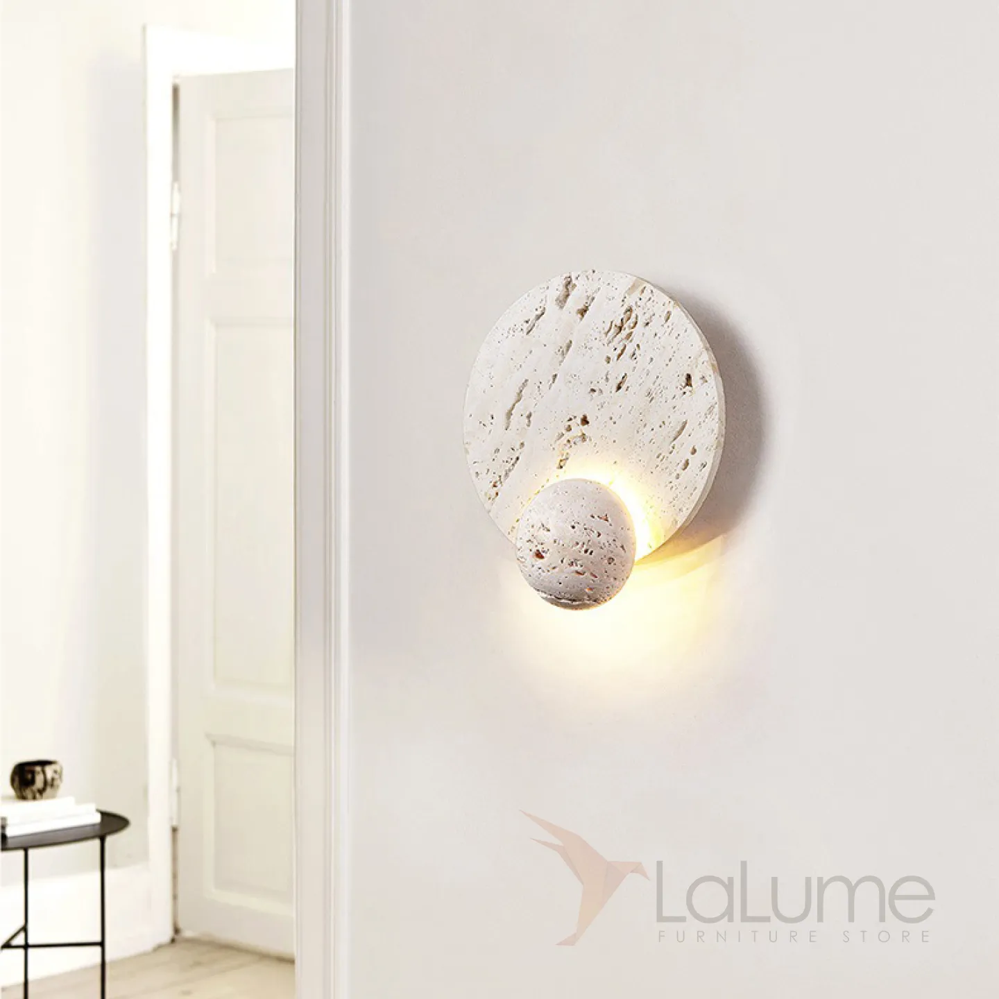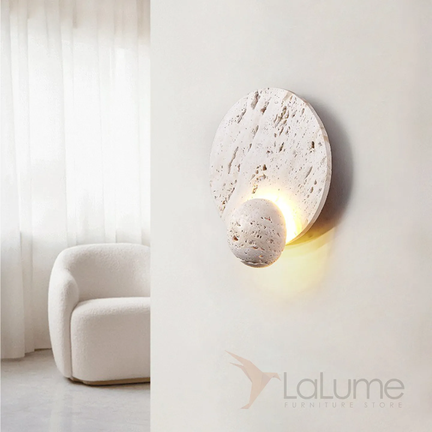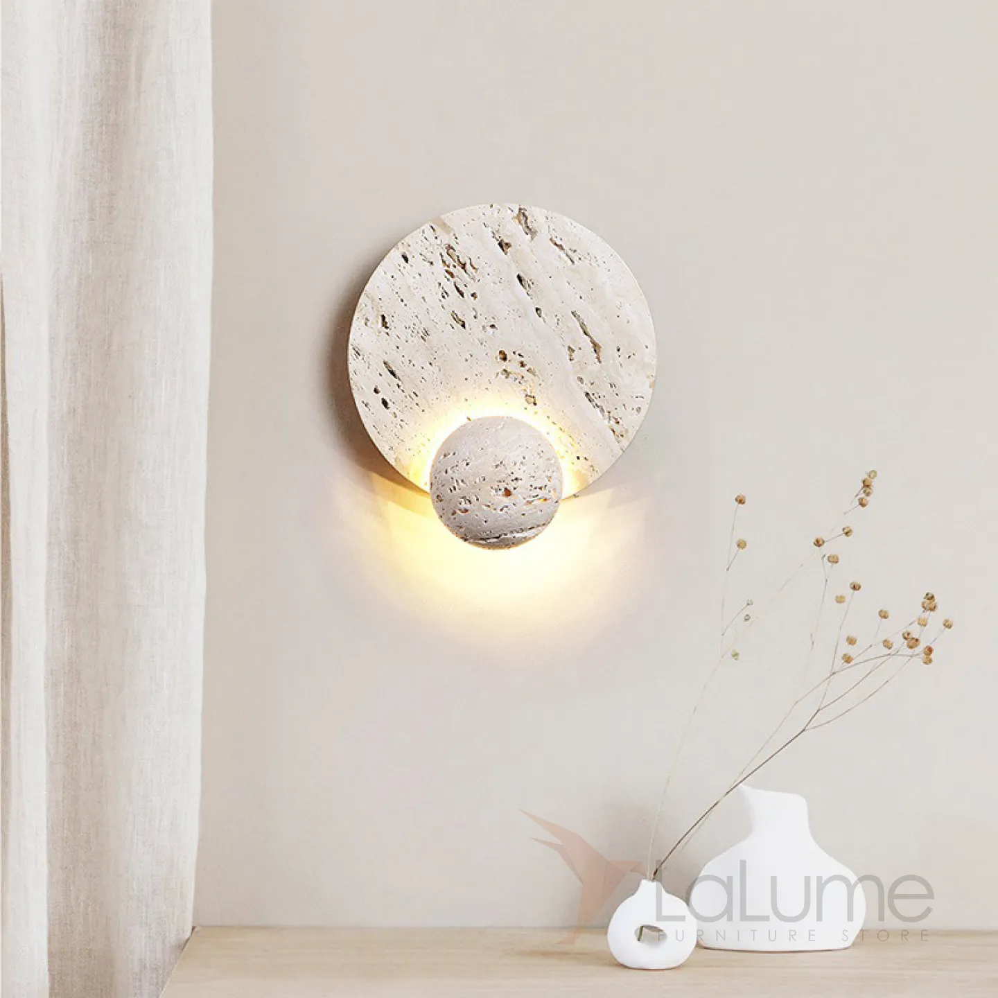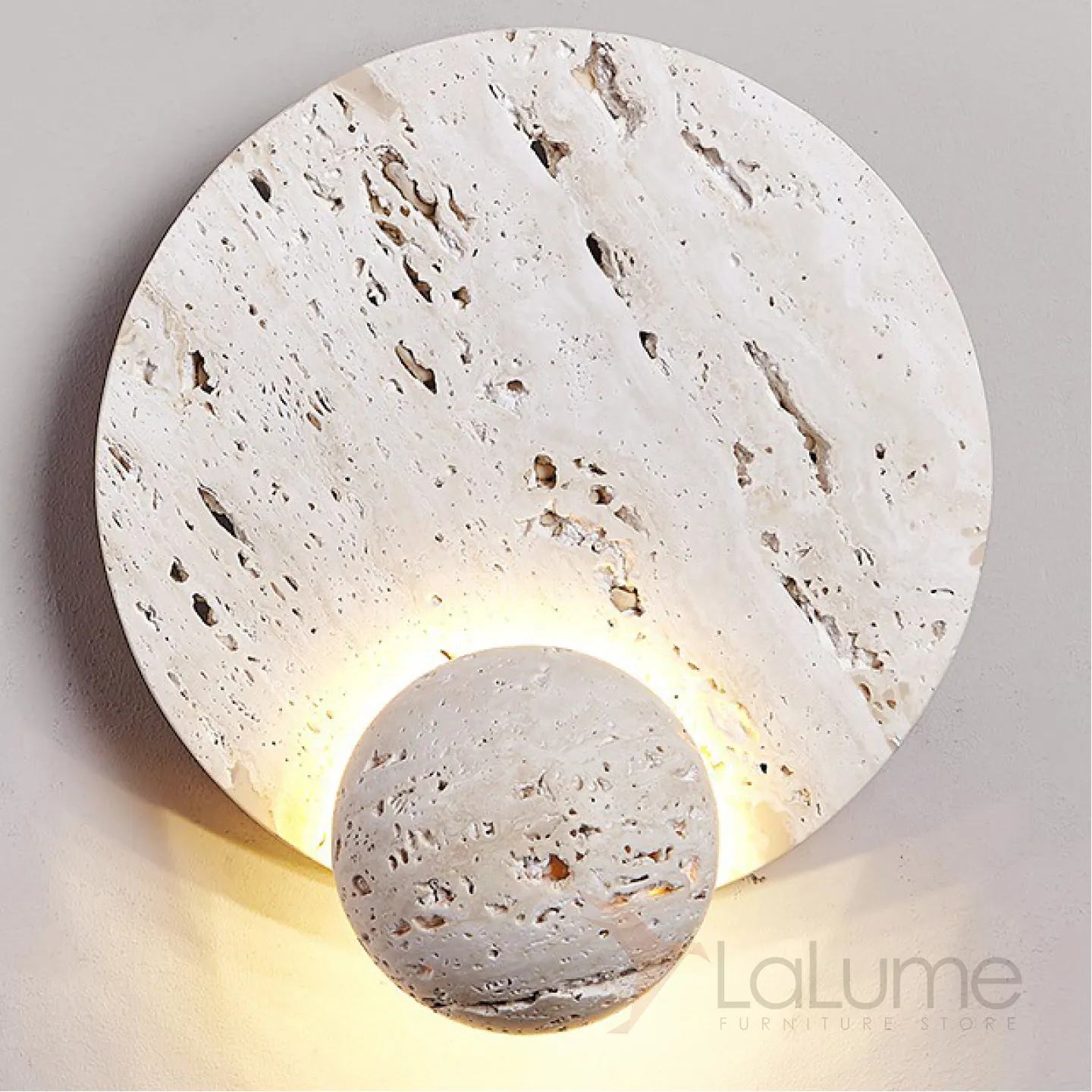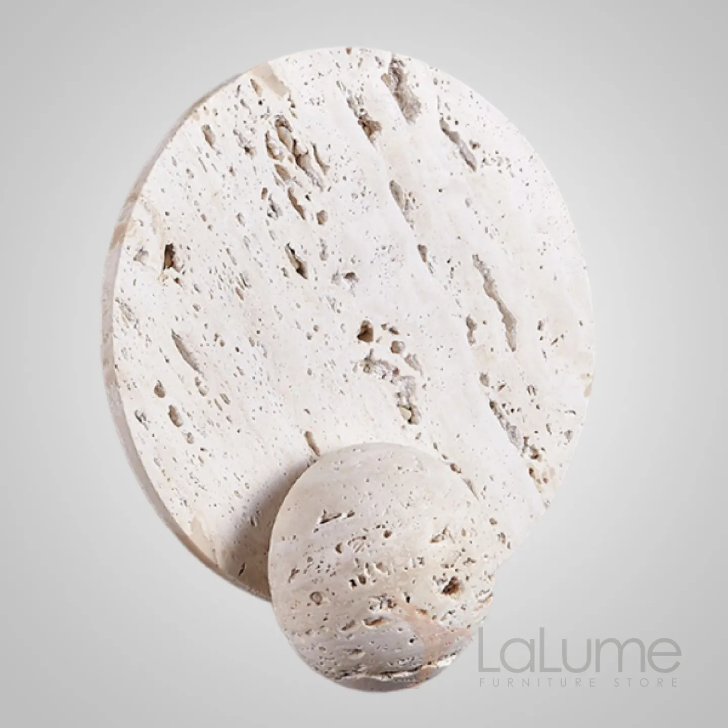 Настенный светодиодный светильник в виде комбинации двух дисков из белого камня травертин PHANUEL