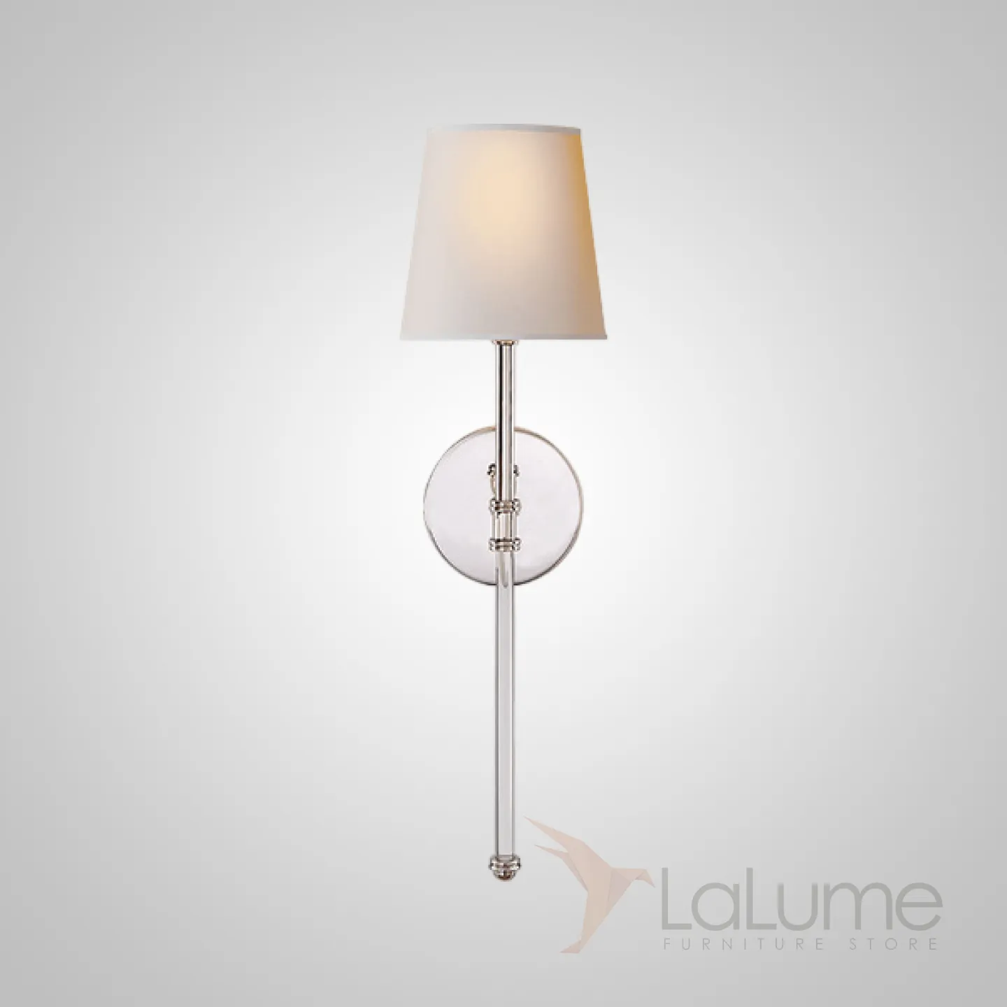 Настенный светильник с коническим текстильным абажуром на сборной стойке из латуни и хрусталя DEMIAN Chrome