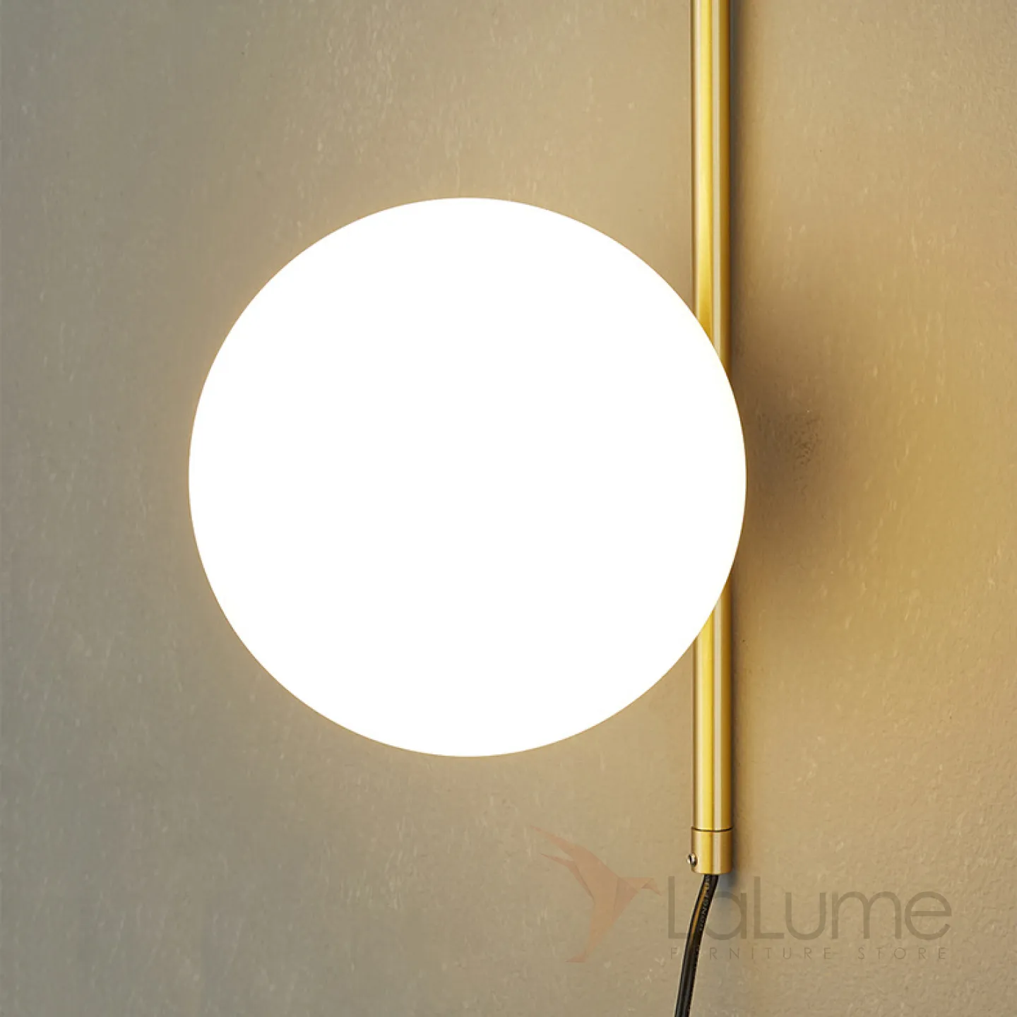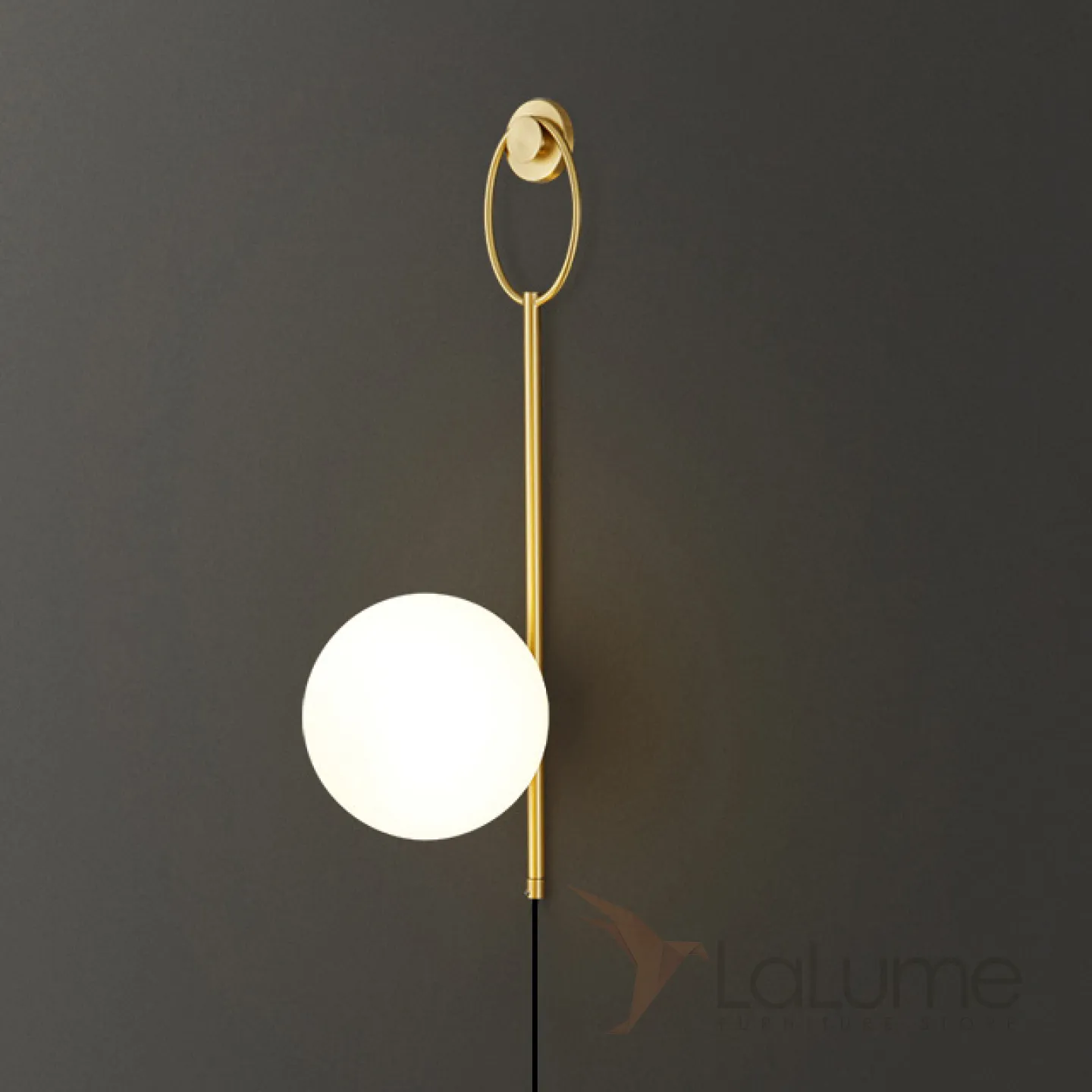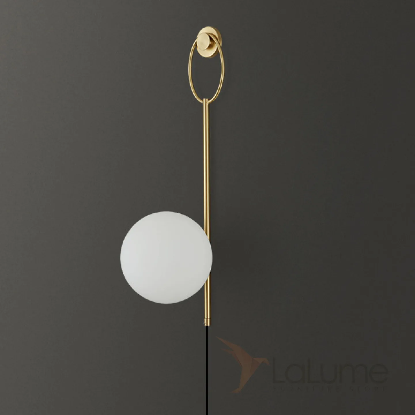 Настенный светильник со стеклянным шарообразным плафоном на трубчатом корпусе с кольцевым креплением SOLON