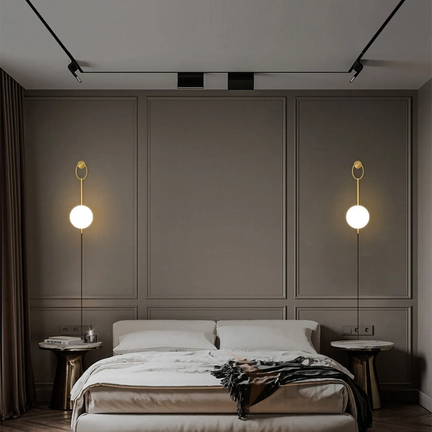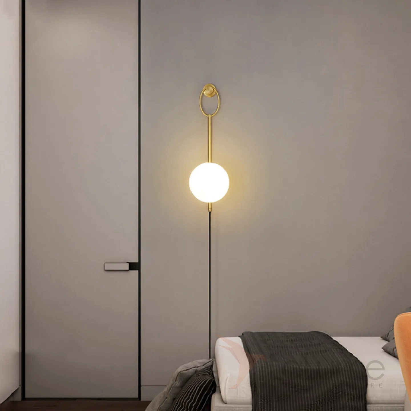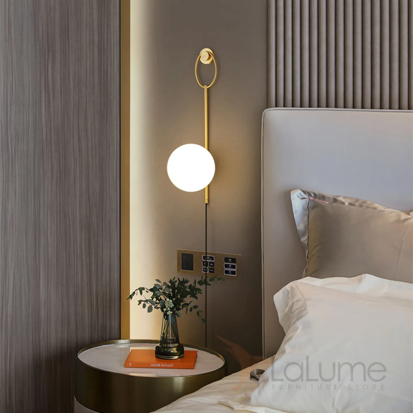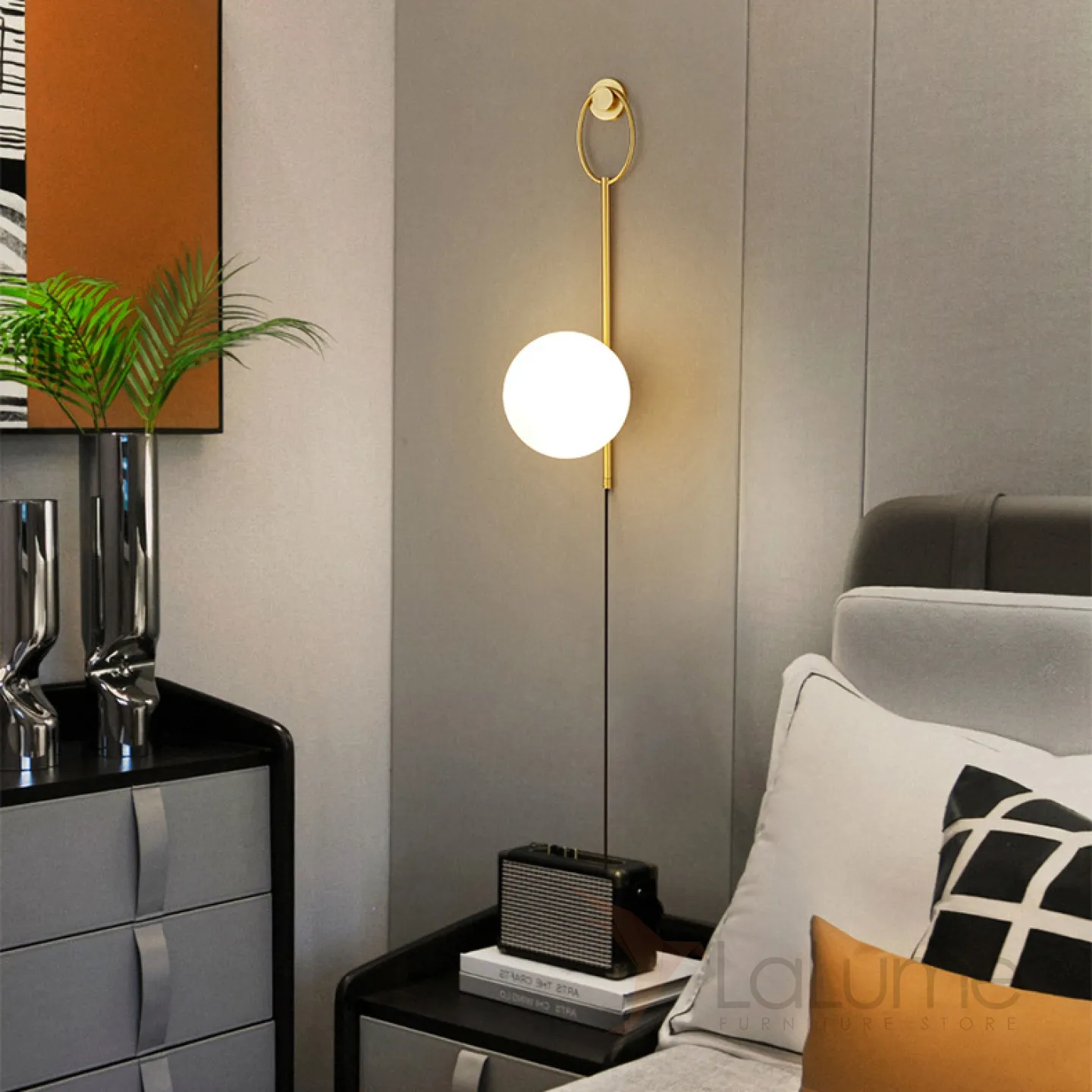 Настенный светильник со стеклянным шарообразным плафоном на трубчатом корпусе с кольцевым креплением SOLON