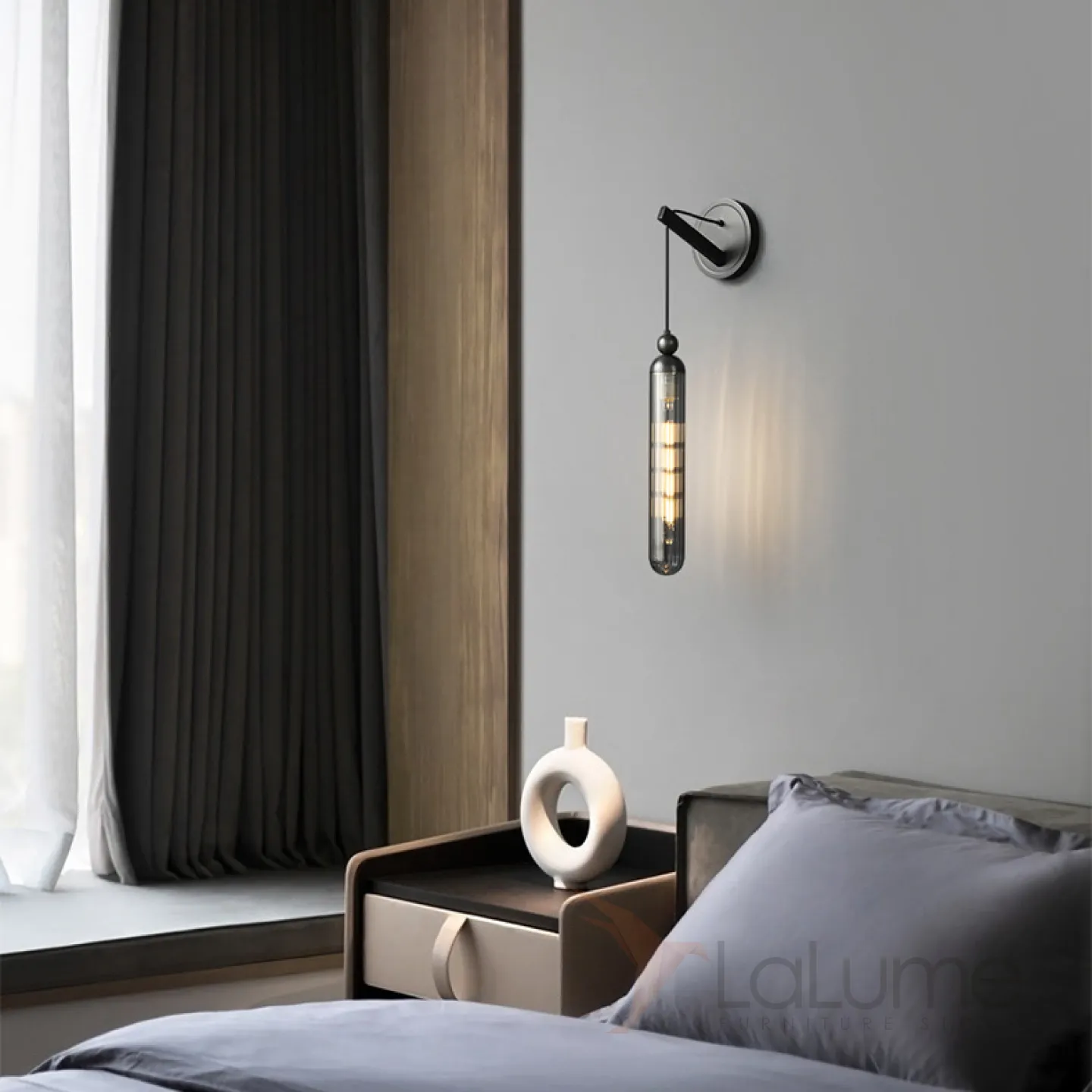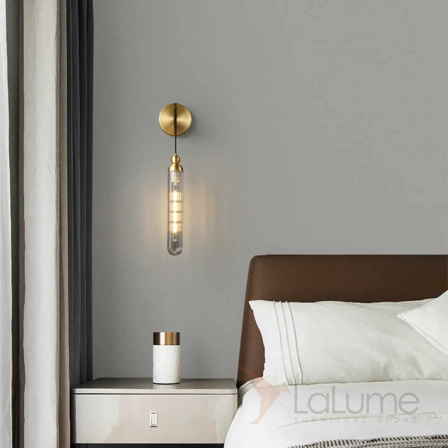 Серия настенных светильников с цилиндрическим рассеивателем из рельефного стекла в латунном корпусе с клипом LEINO WALL Brass