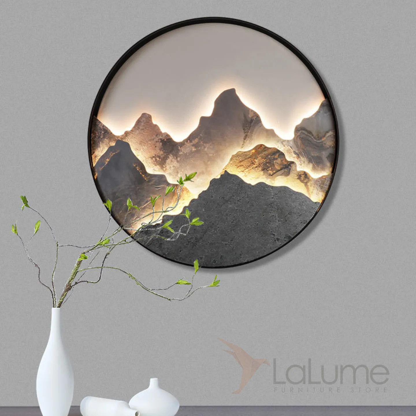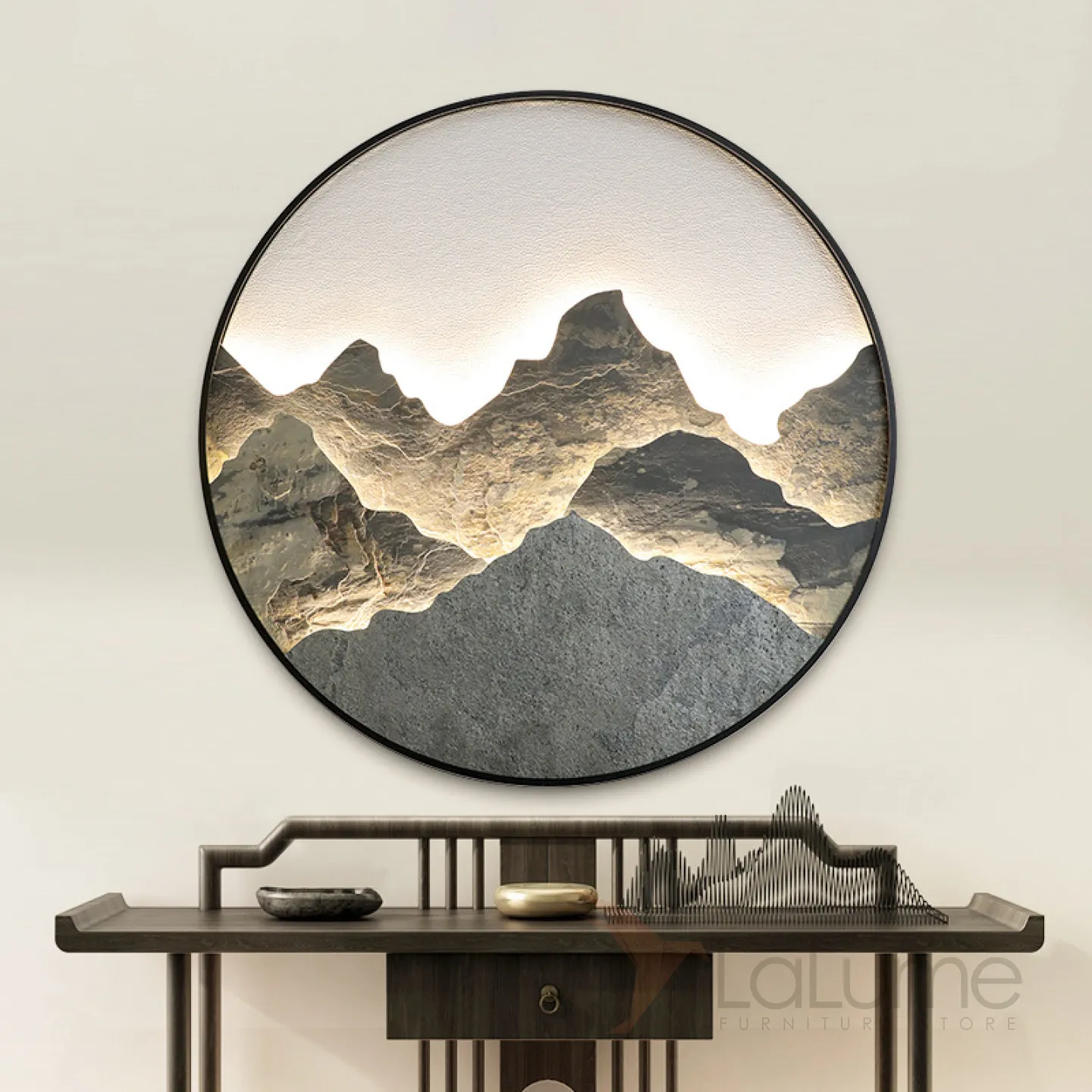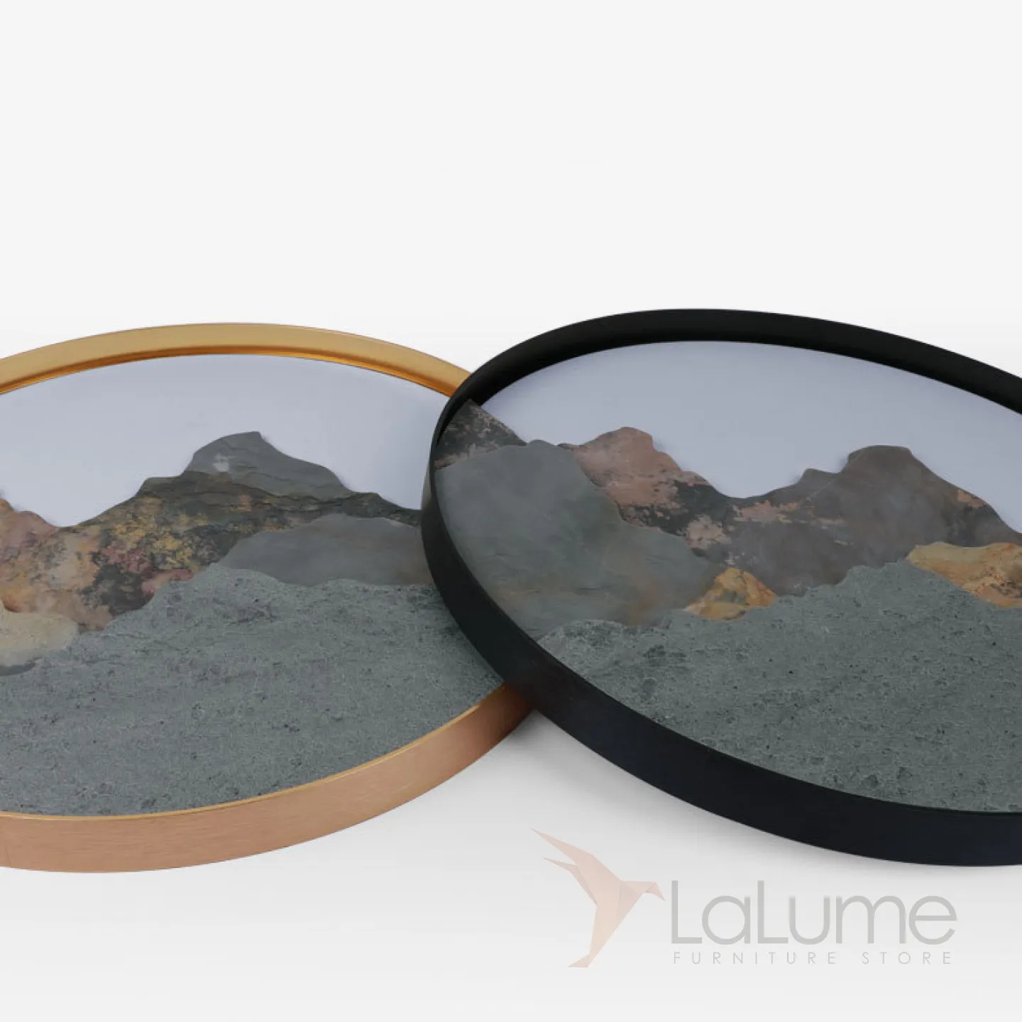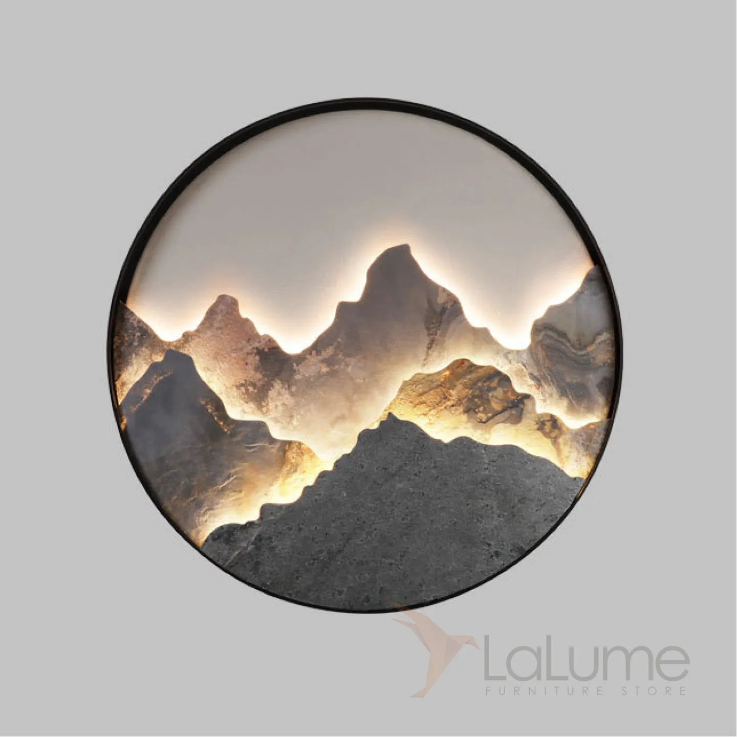 Серия настенных светодиодных светильников с каменным рельефом гор в металлической кольцевой оправе DAWN Brass