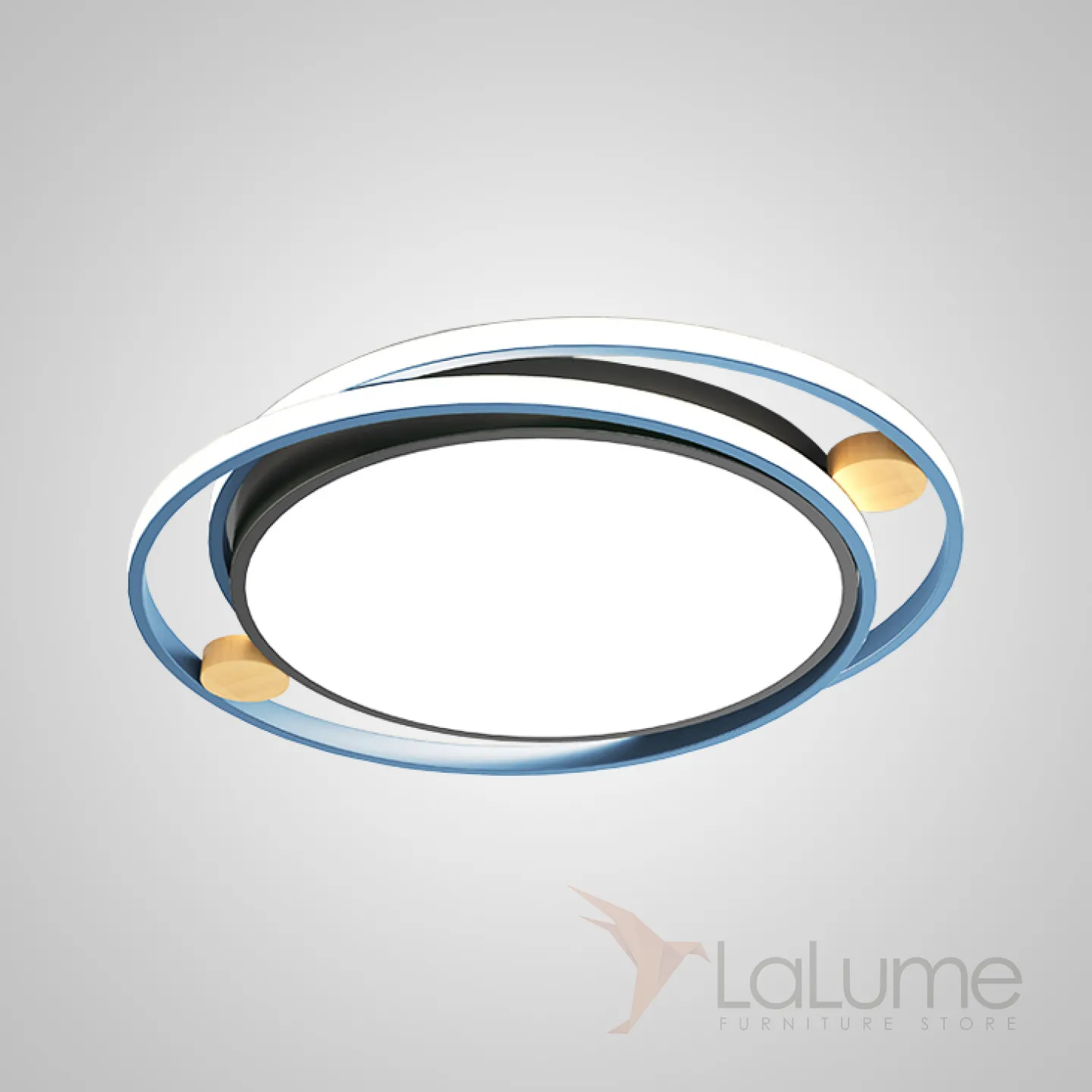 Серия потолочных светодиодных светильников со светящимися кольцами и декором из светлого дерева NILMAR L45 Blue