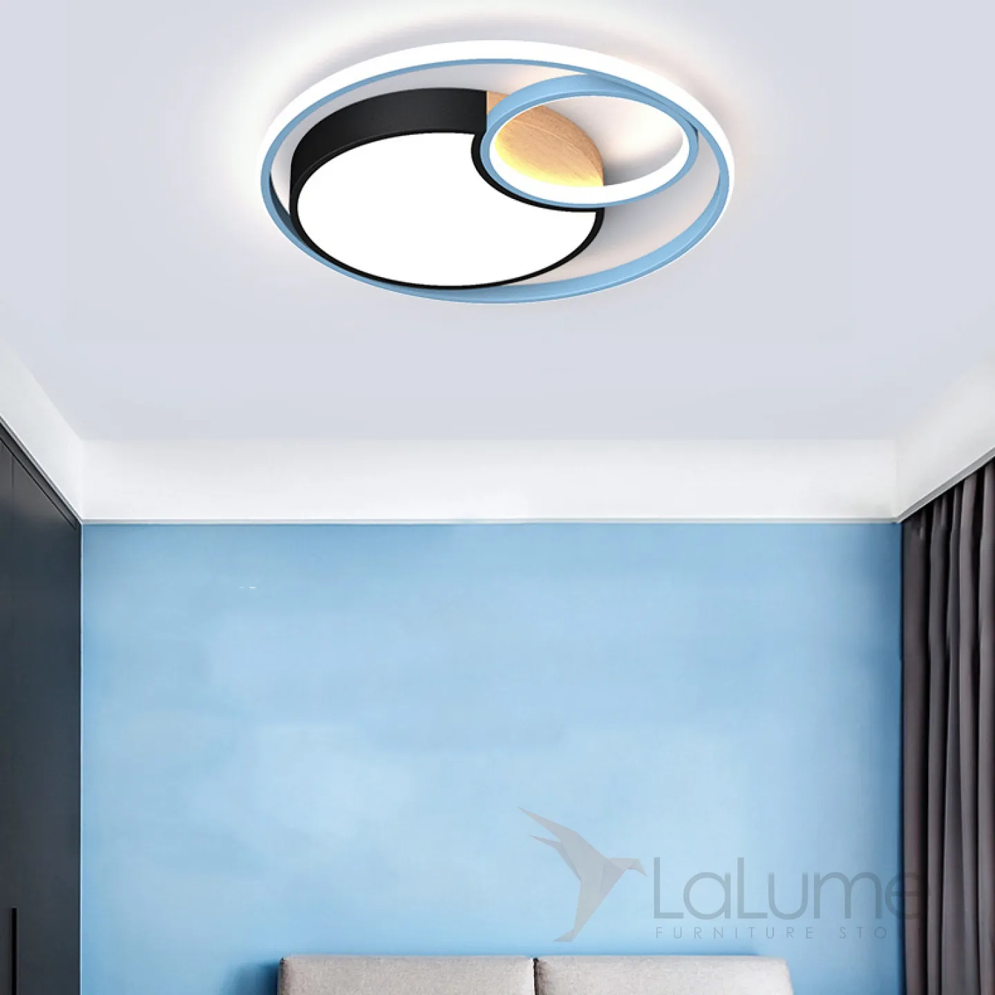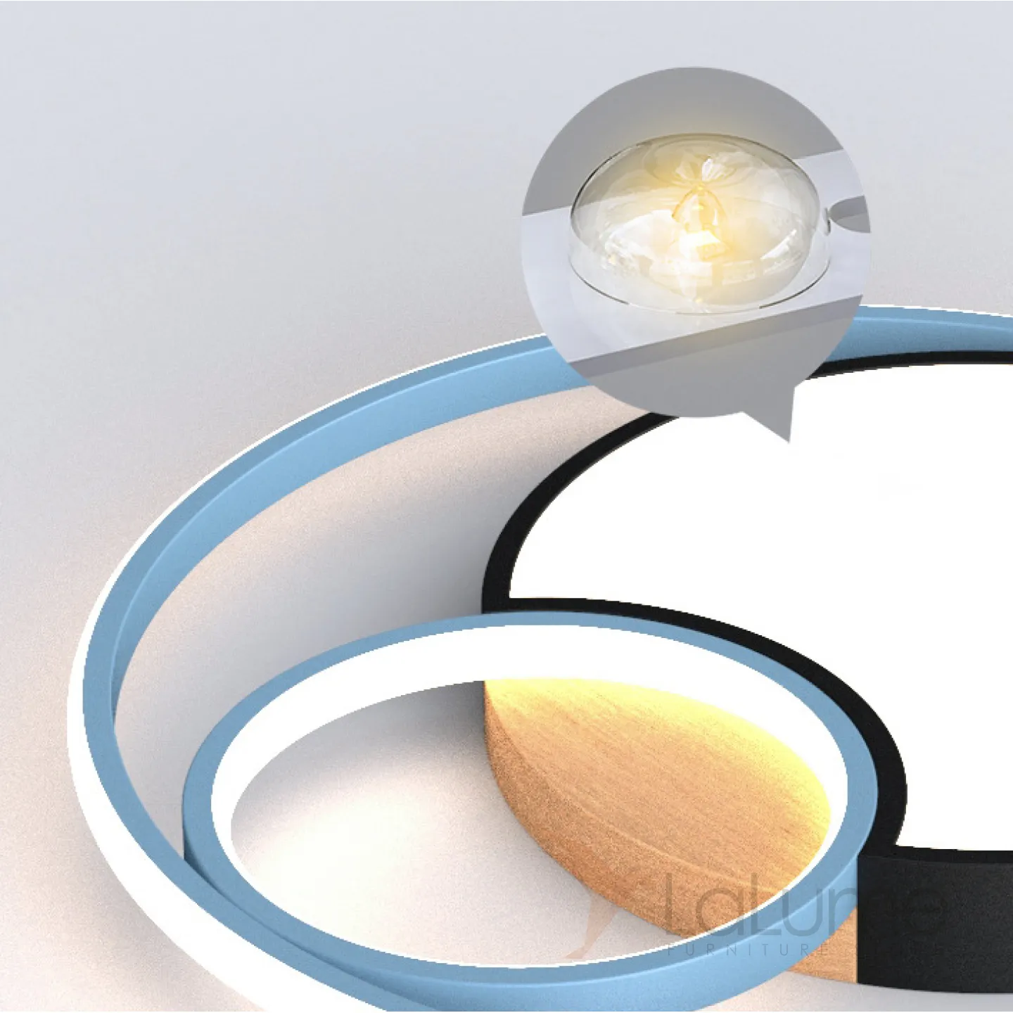 Серия потолочных светодиодных светильников в виде светящихся дисков с декором из светлого дерева LAUST D40 Grey