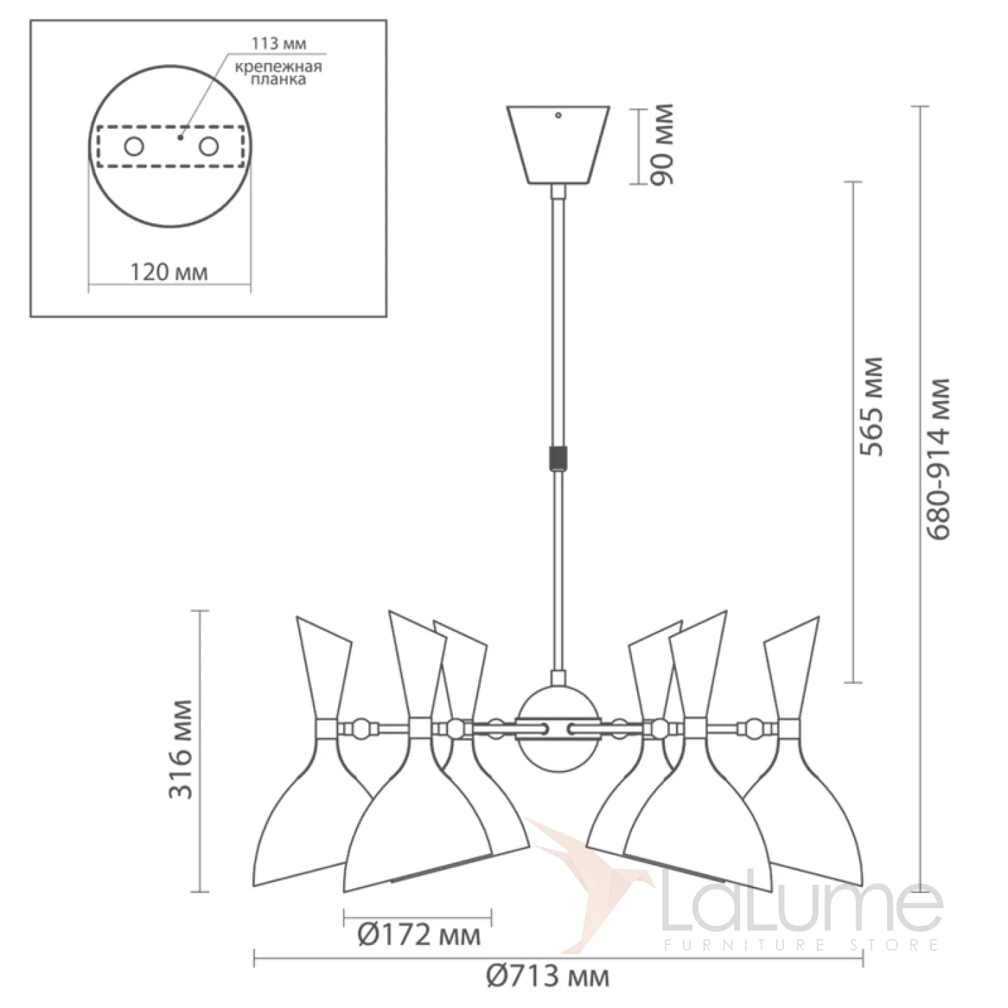 Интернет-Магазин LaLume доставит Ваш заказ по Москве, Санкт-Петербургу и всей России. Купить представленную модель из раздела «Люстры» можно по цене указанной в карточке. При больших заказов действуют манящие скидки. Даже если товара нет в наличии, мы можем его поставить в течении 30 дней в большом количестве! Так же наша компания является производителем большинства продукции и можем изготовить светильник по вашему дизайн проекту, по чертежам за короткий срок.