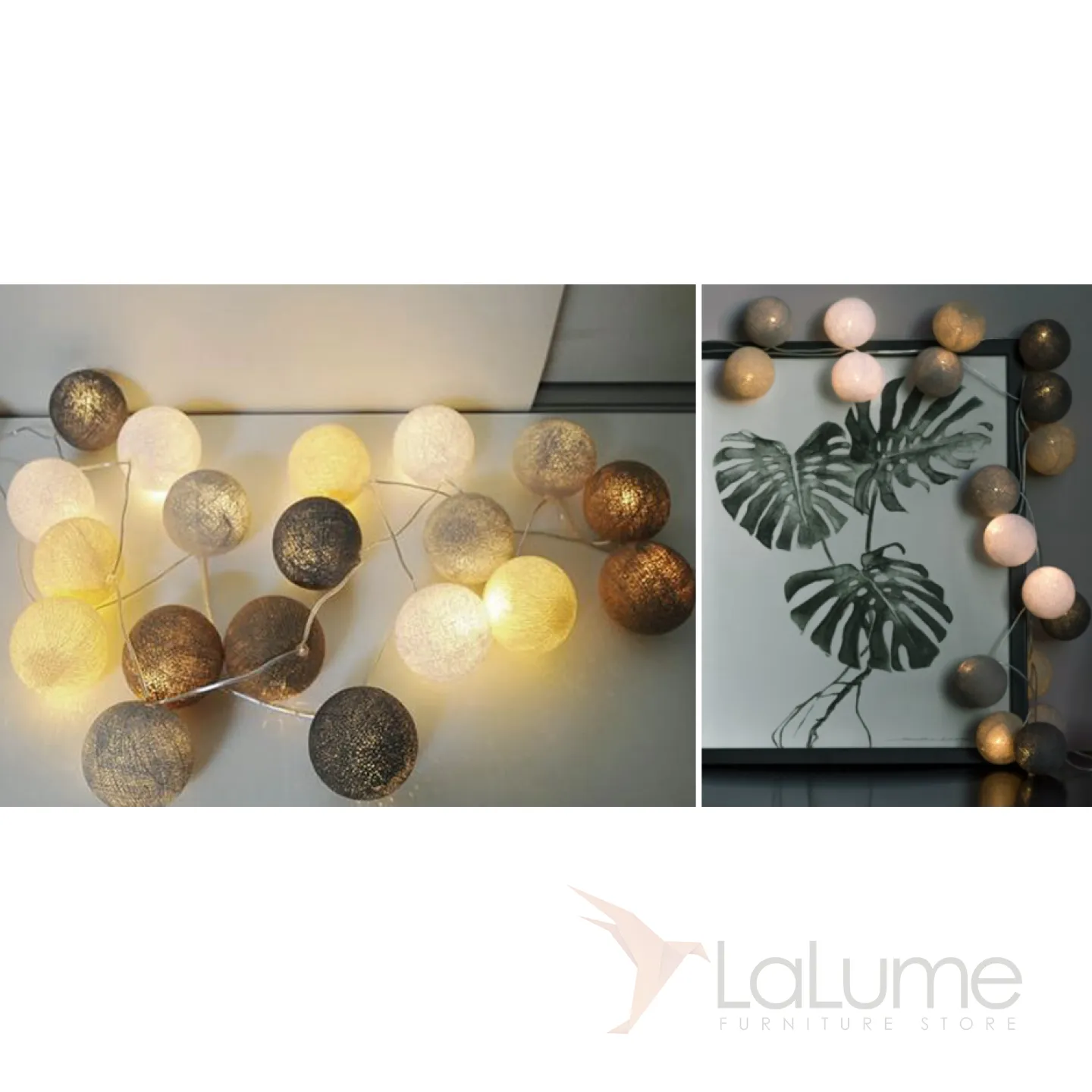 Гирлянда хлопковые фонарики Сotton Ball Sand-Grey