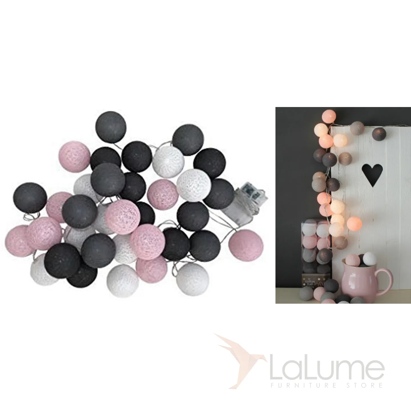 Гирлянда хлопковые фонарики Сotton Ball Pink-Grey