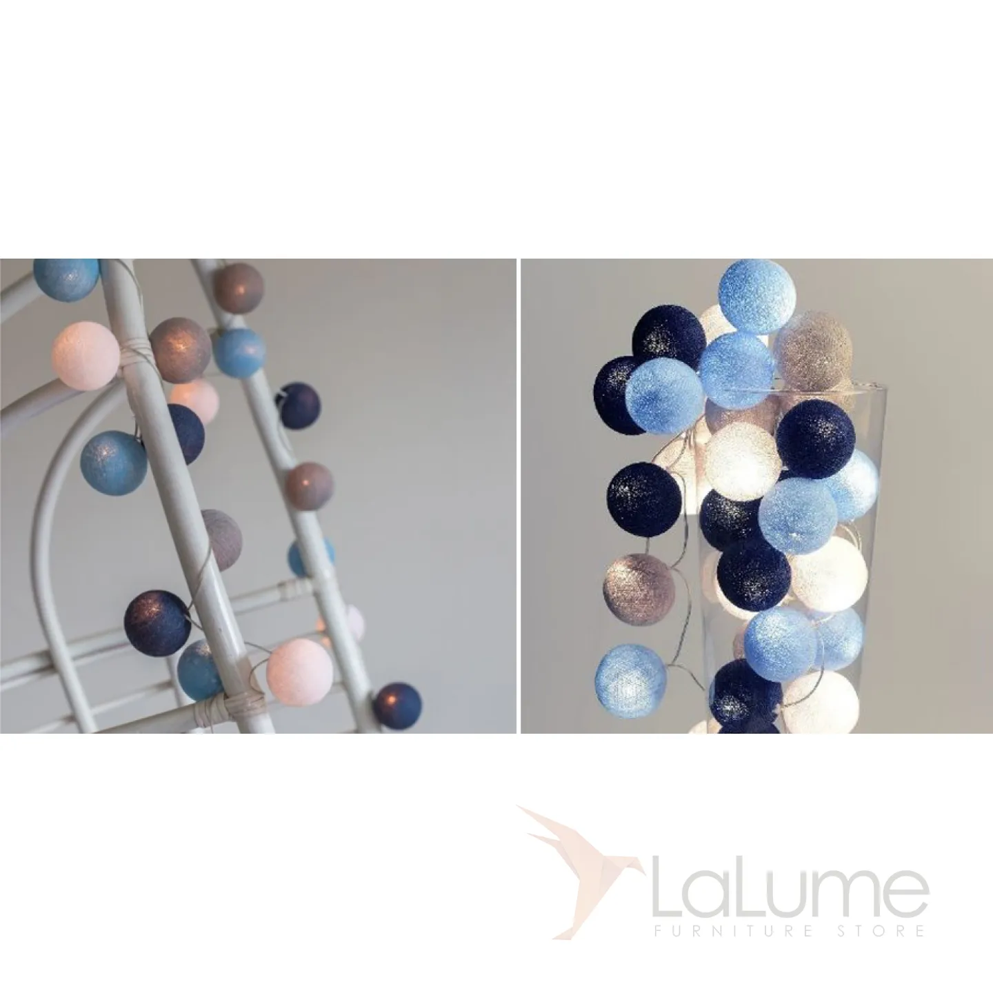 Гирлянда хлопковые фонарики Сotton Ball Sailor Blue