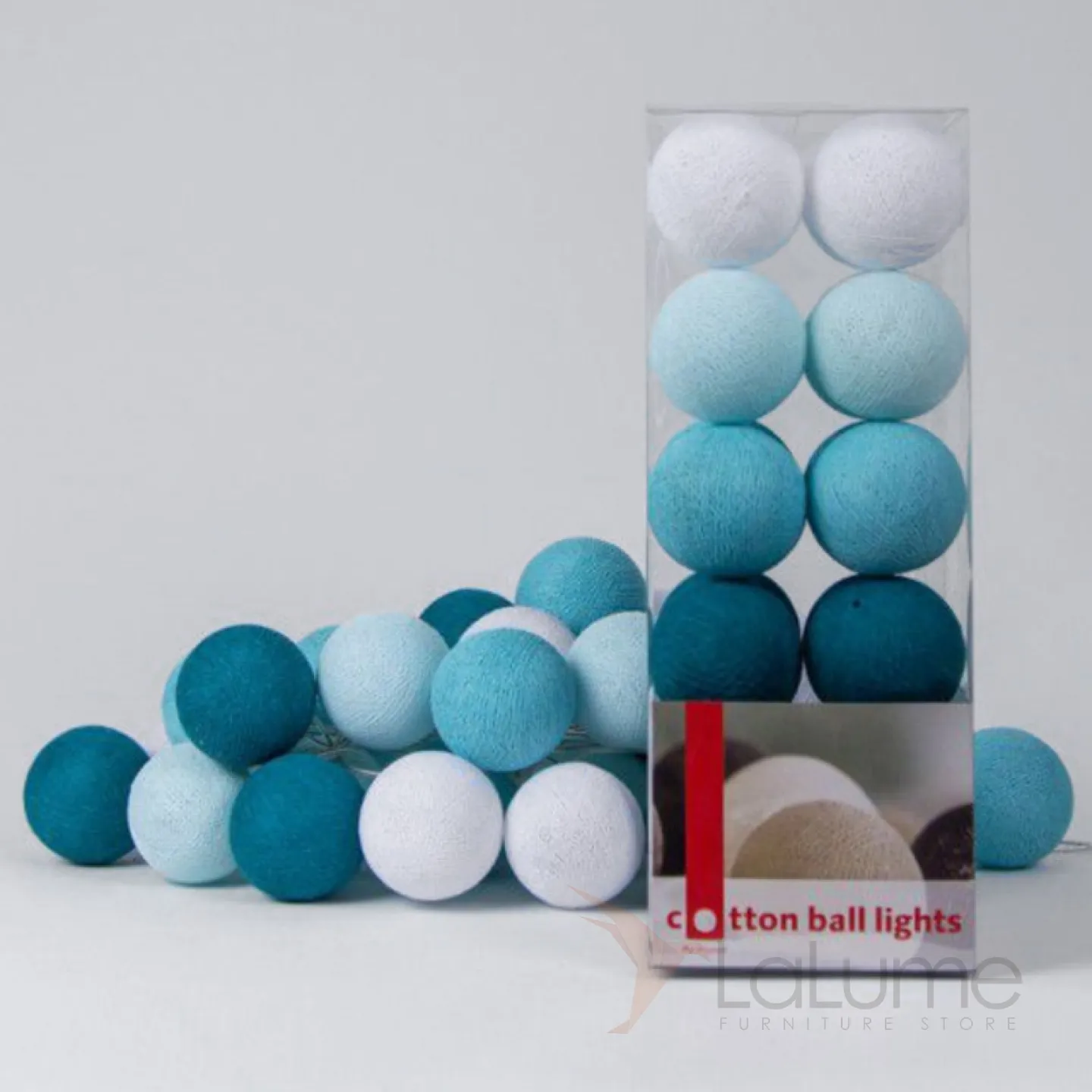 Гирлянда хлопковые фонарики Сotton Ball Aqua
