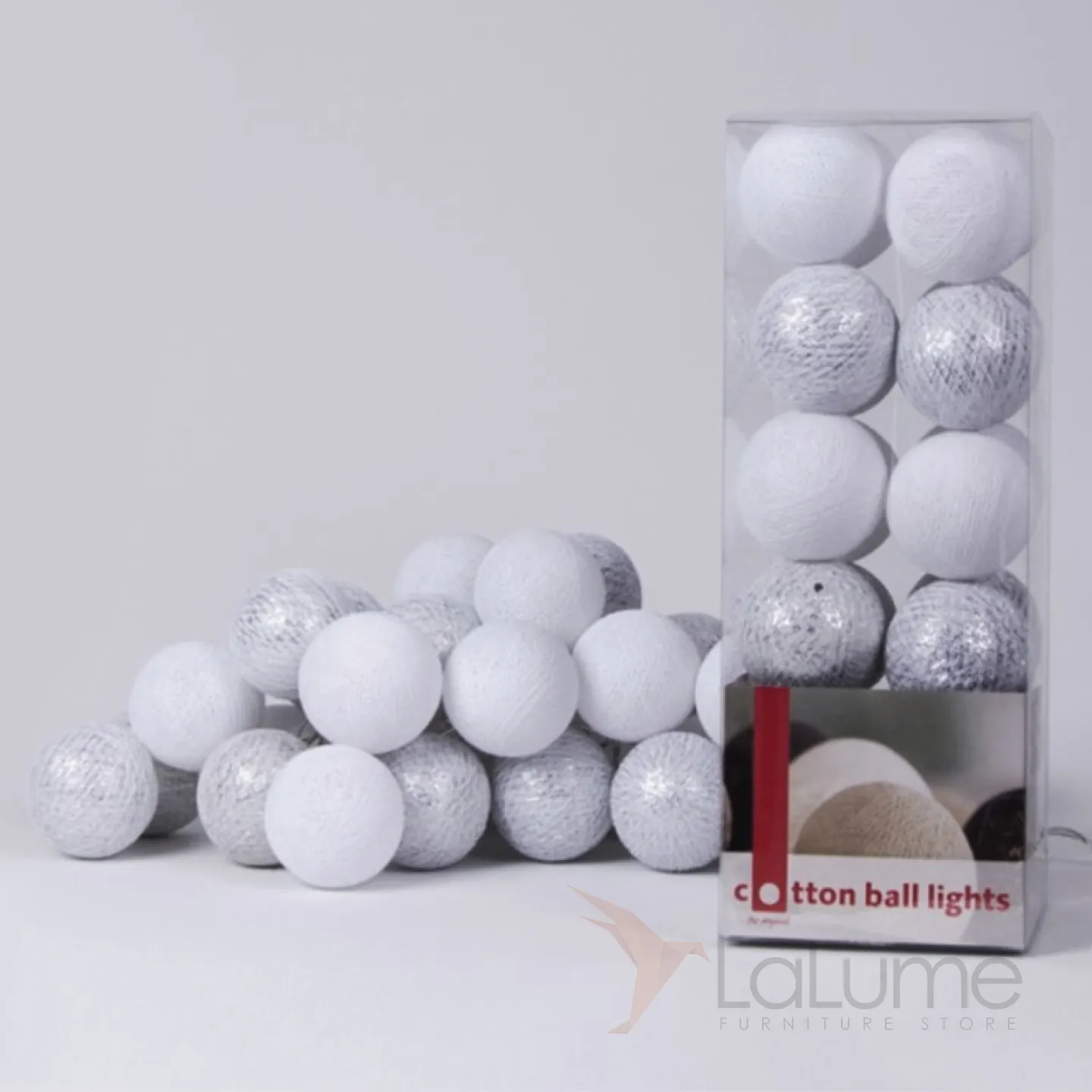 Гирлянда хлопковые фонарики Сotton Ball White-Silver