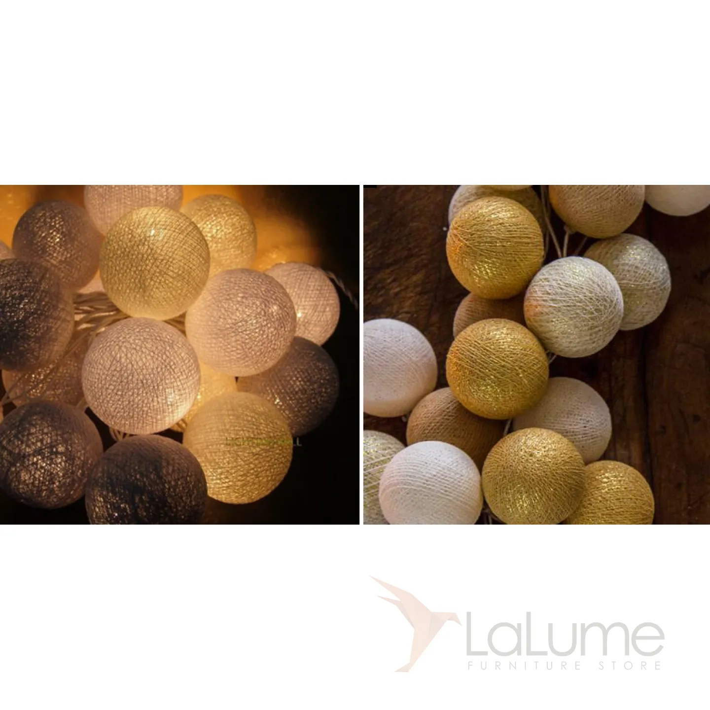 Гирлянда хлопковые фонарики Сotton Ball Gold Mix