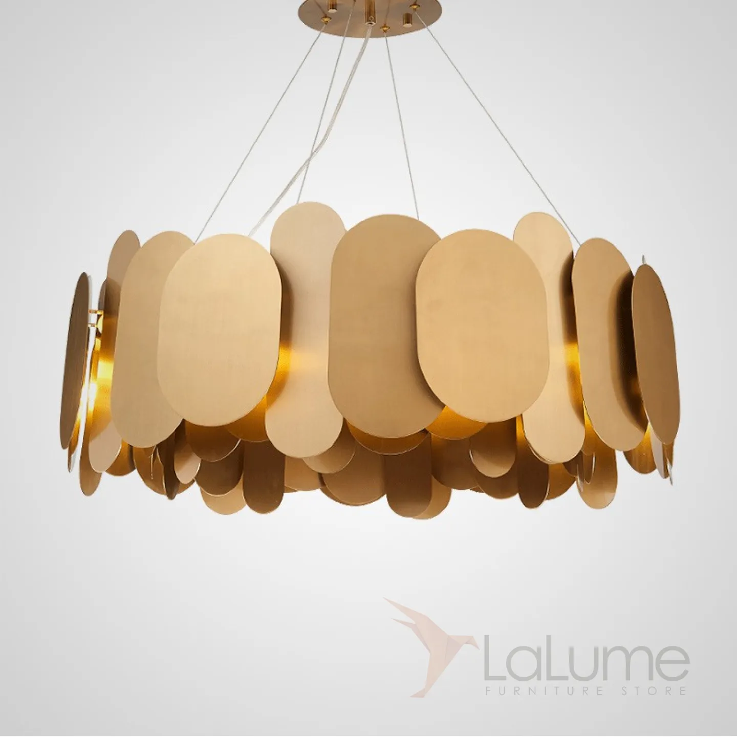 Люстра с пластинами цвета благородной латуни на кольцевом каркасе. Статус, уют, стиль и функциональность — настоящий ТОП нашей коллекции в этом стиле!