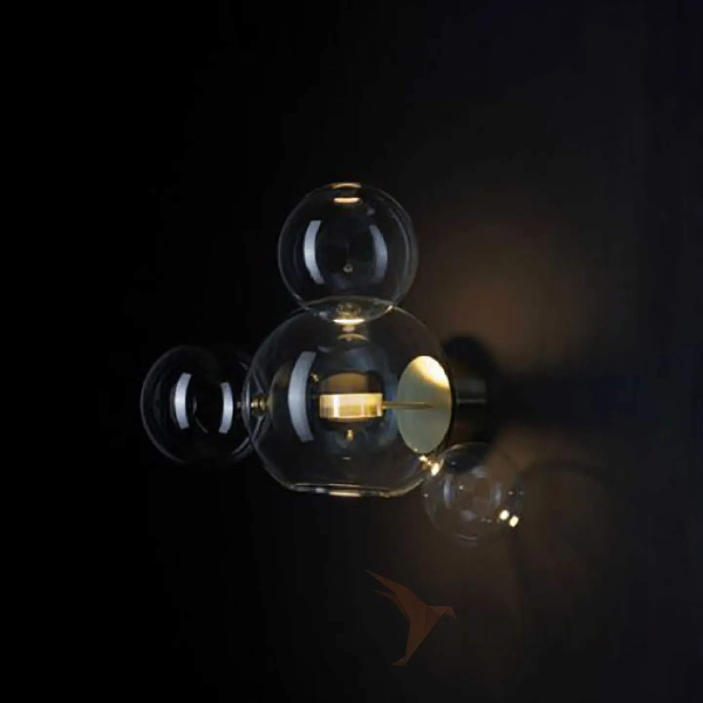 - Bolle Wall 04 Bubbles представляет собой удивительную композицию из четырех прозрачных сфер, скрепленных между собой. Стараясь подчеркнуть нематериальность света, дизайнеры попытались уловить момент «слипания» мыльных пузырей перед их взрывом.