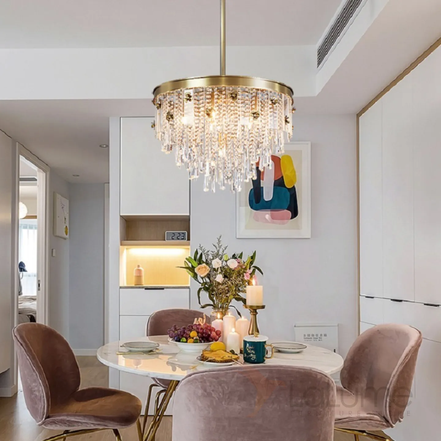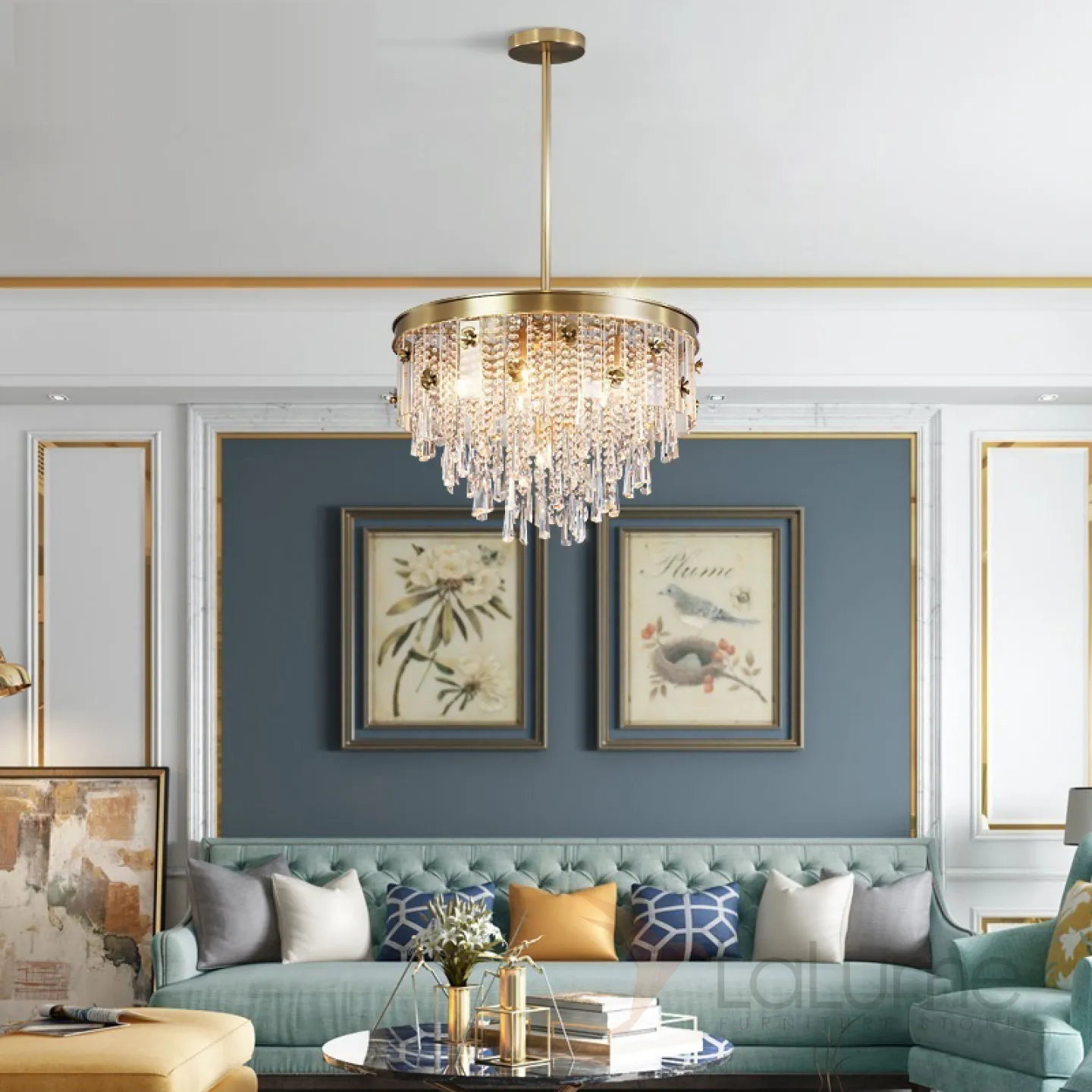 Люстра в стиле постмодерн с подвесками в виде стеклянных кристаллов BOUND