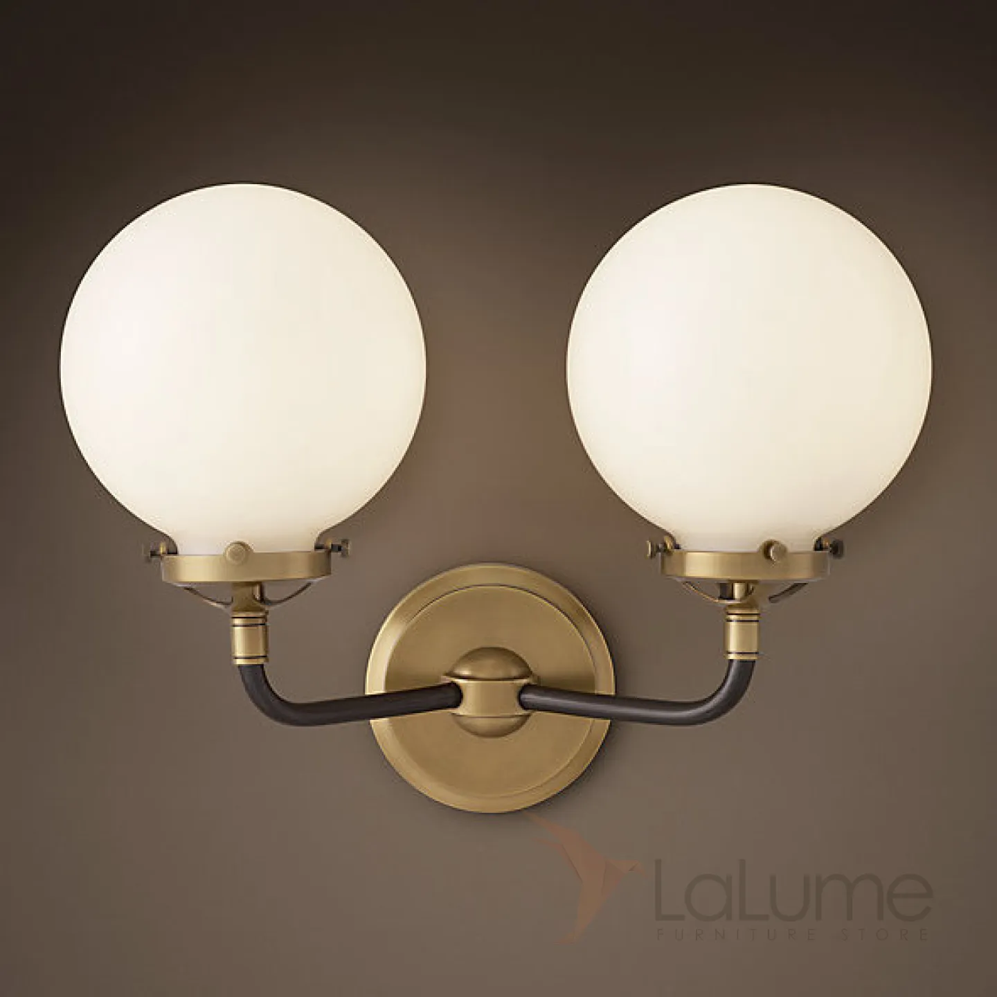 Бра Bistro Globe Clear Glass Double Sconce Brass Milk от LaLume