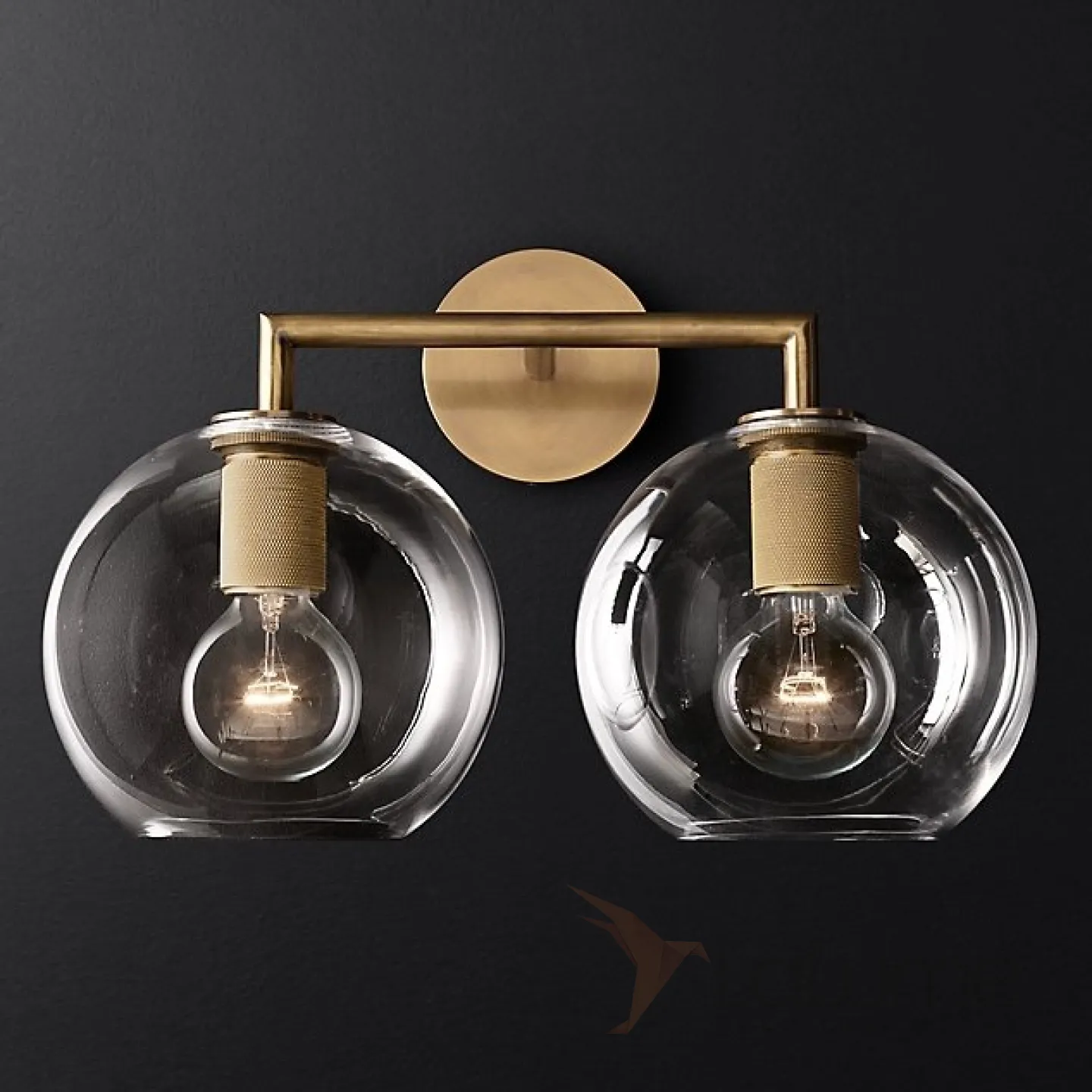 Бра RH Utilitaire Globe Shade Double Sconce Brass от ImperiumLoft