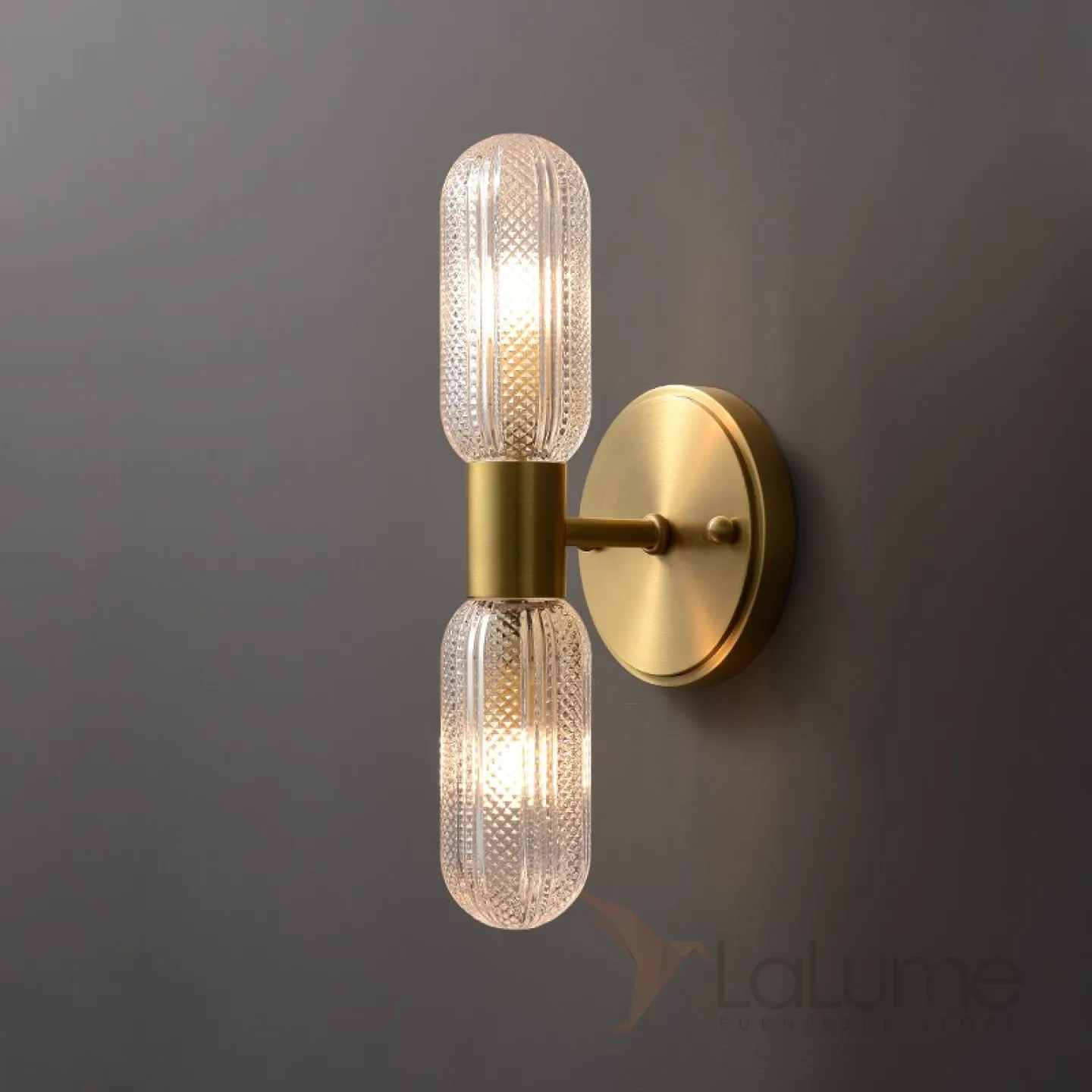 Бра с двумя ребристыми плафонами из стекла на одном металлическом рожке SELIA