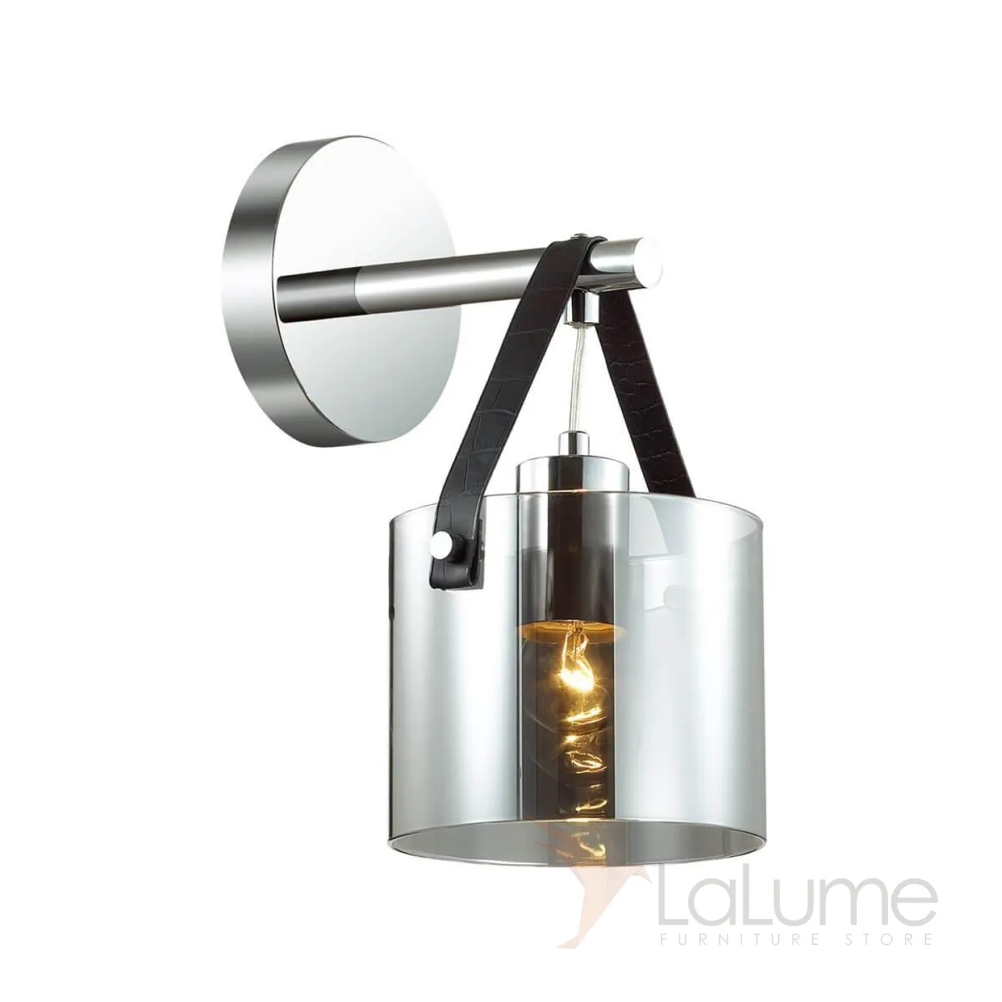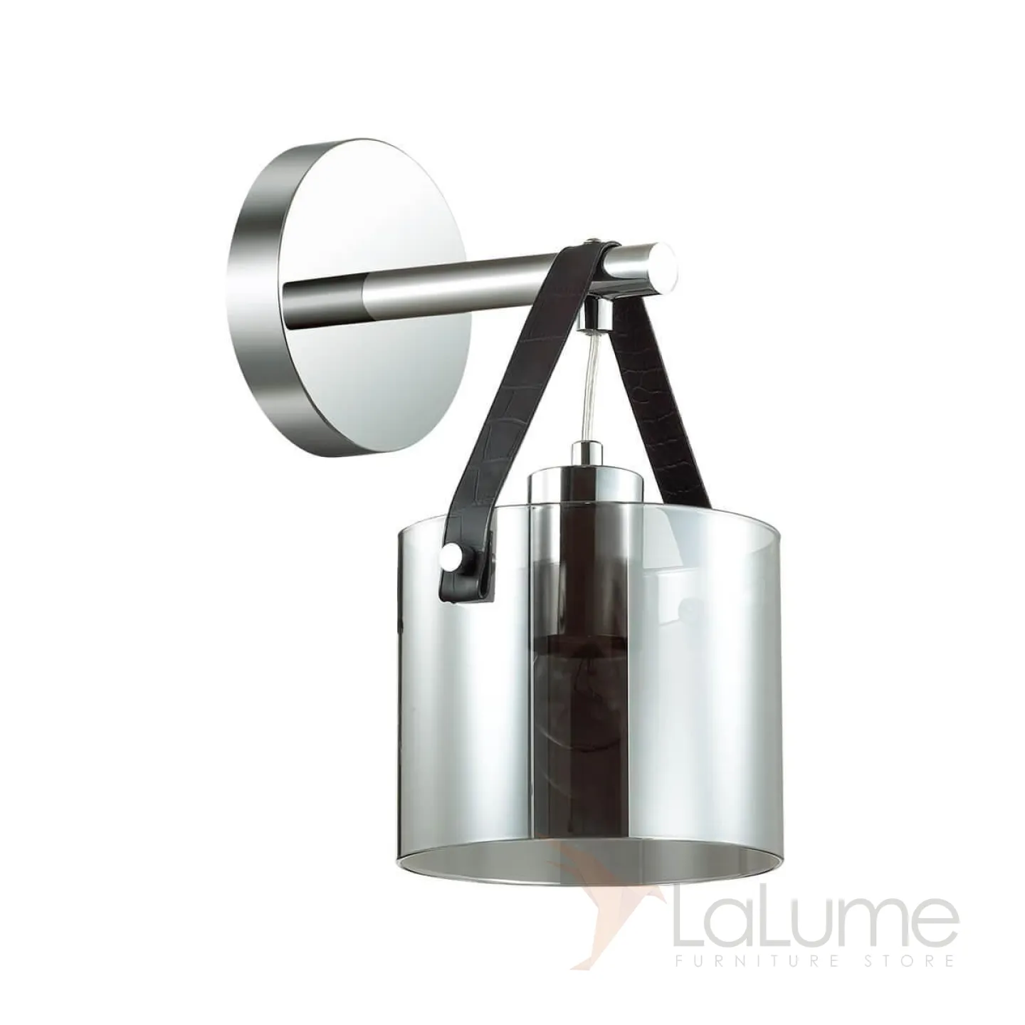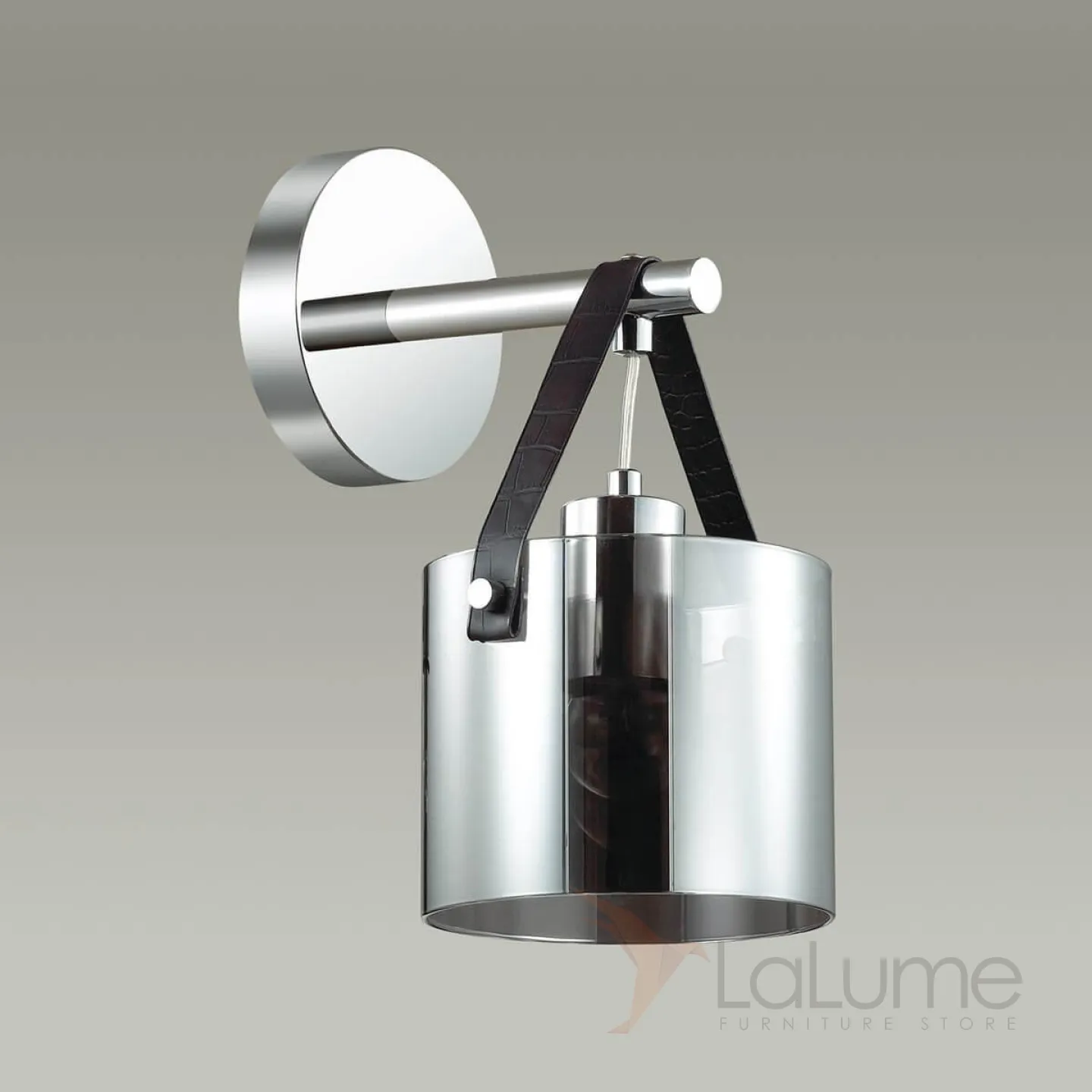 Бра со стеклянным дымчатым плафоном и кожаным ремешком GERBERT WALL