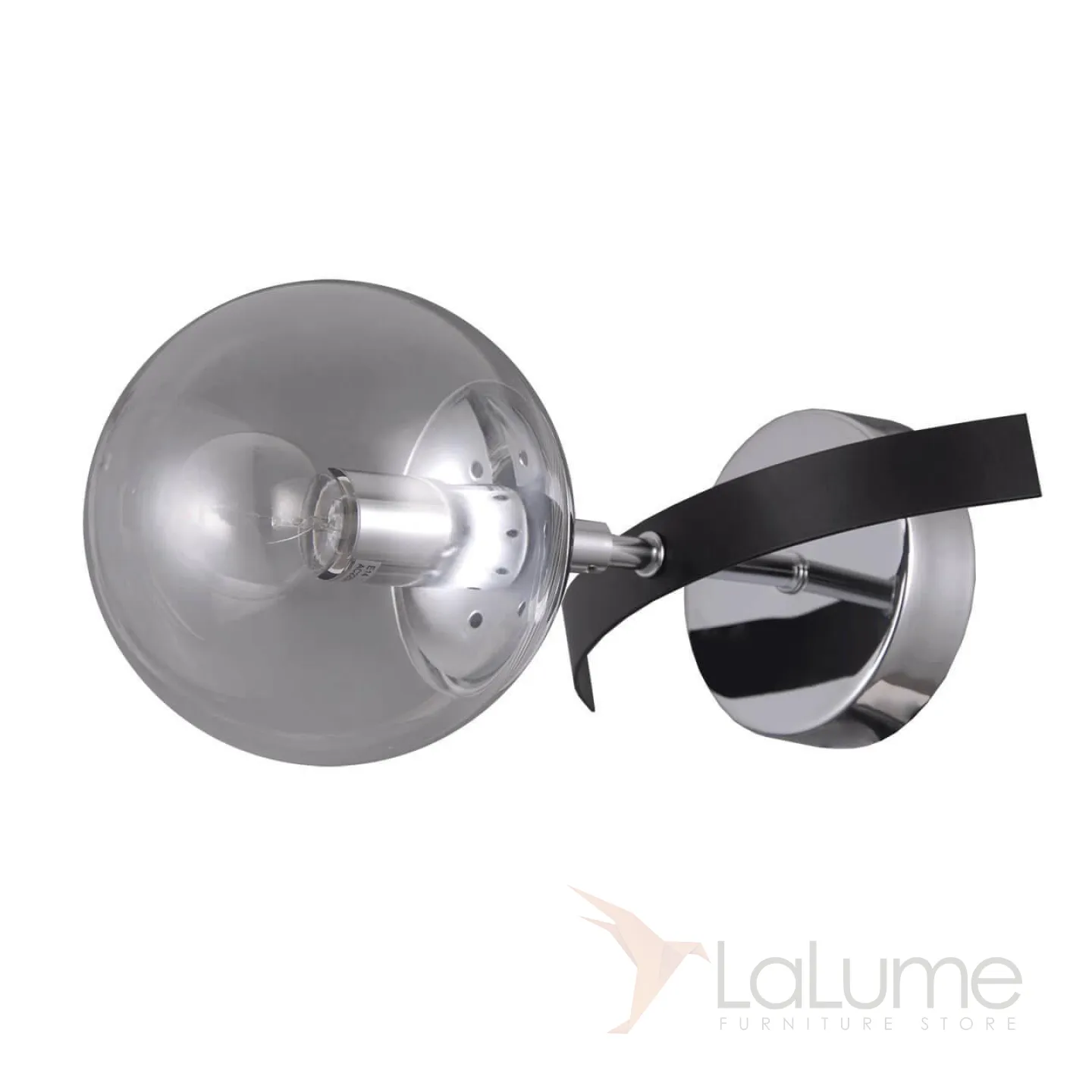 Бра со стеклянным шарообразным плафоном и металлической черной пластиной под ним MINDA WALL