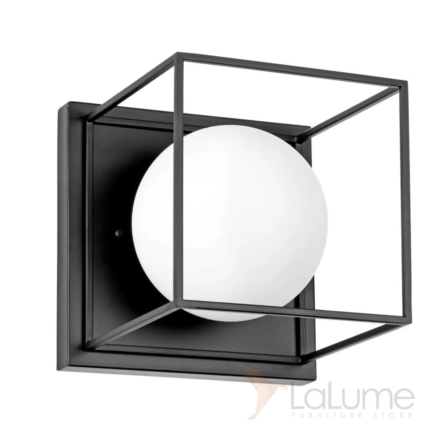Бра со стеклянным шарообразным плафоном на каркасе в форме контурного куба ELINA WALL