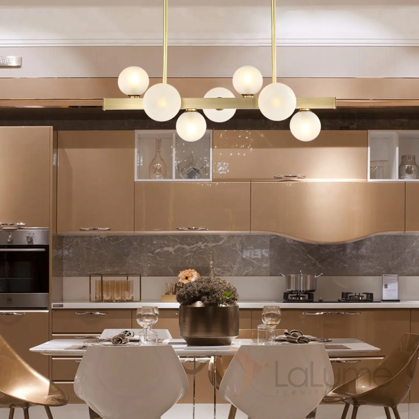 Люстра со стеклянными плафонами.
