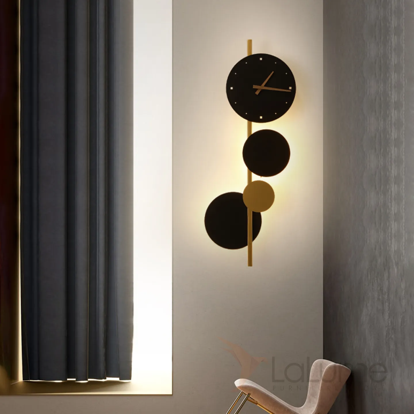 Деревянный настенный светильник в виде композиции и кругов с часовым механизмом TIME WOOD