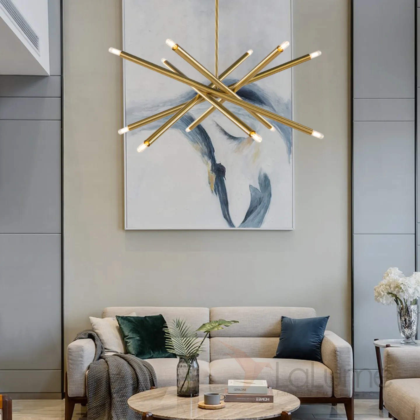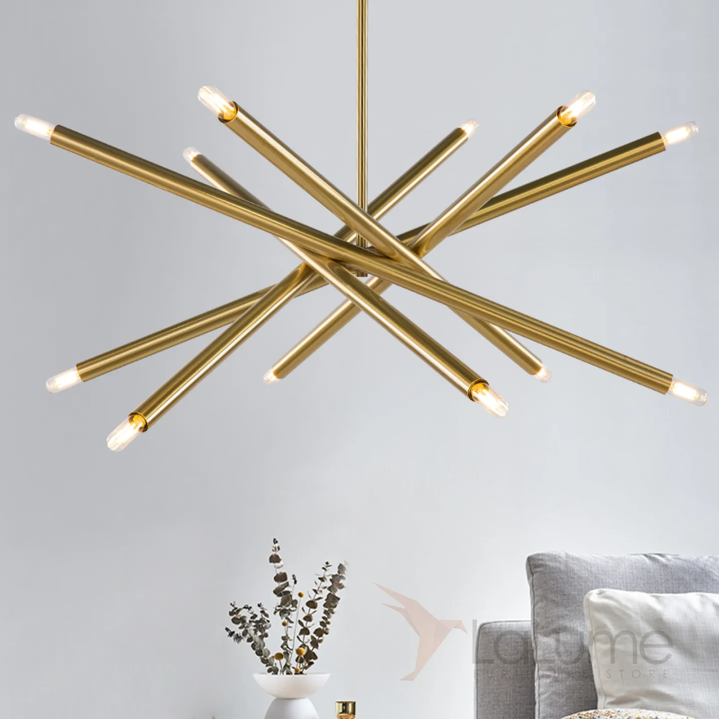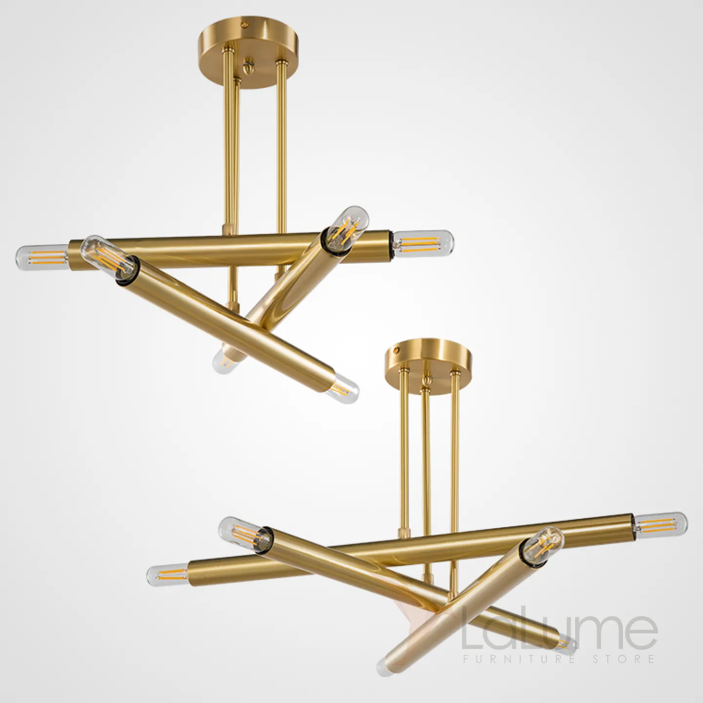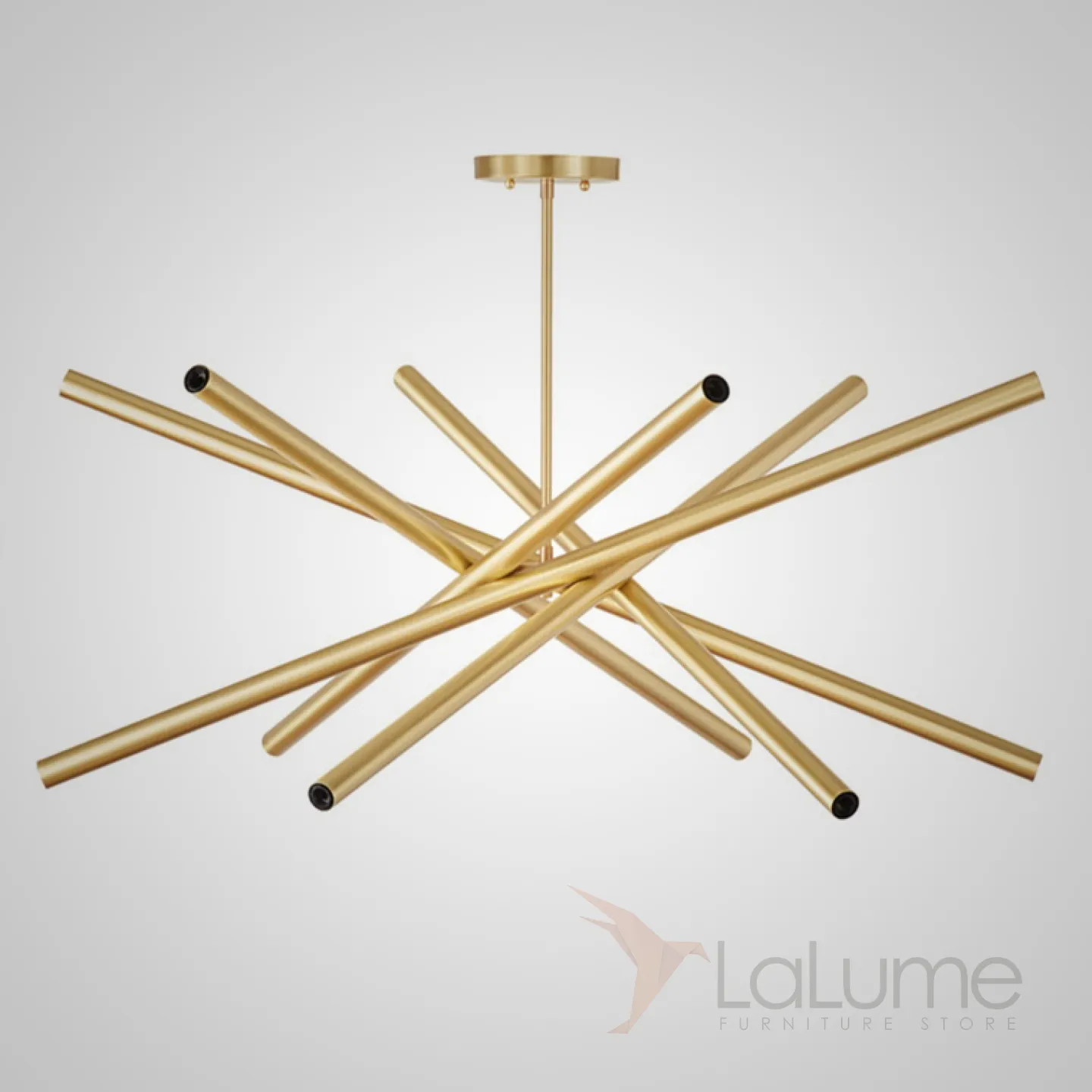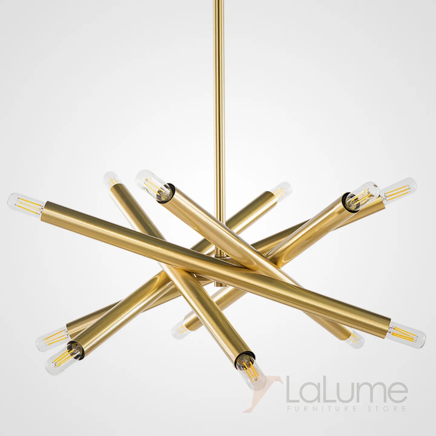 Люстра Spike с уникальным трубчатым асимметричным дизайном каркаса, заканчивающимся источниками света с обоих концов.