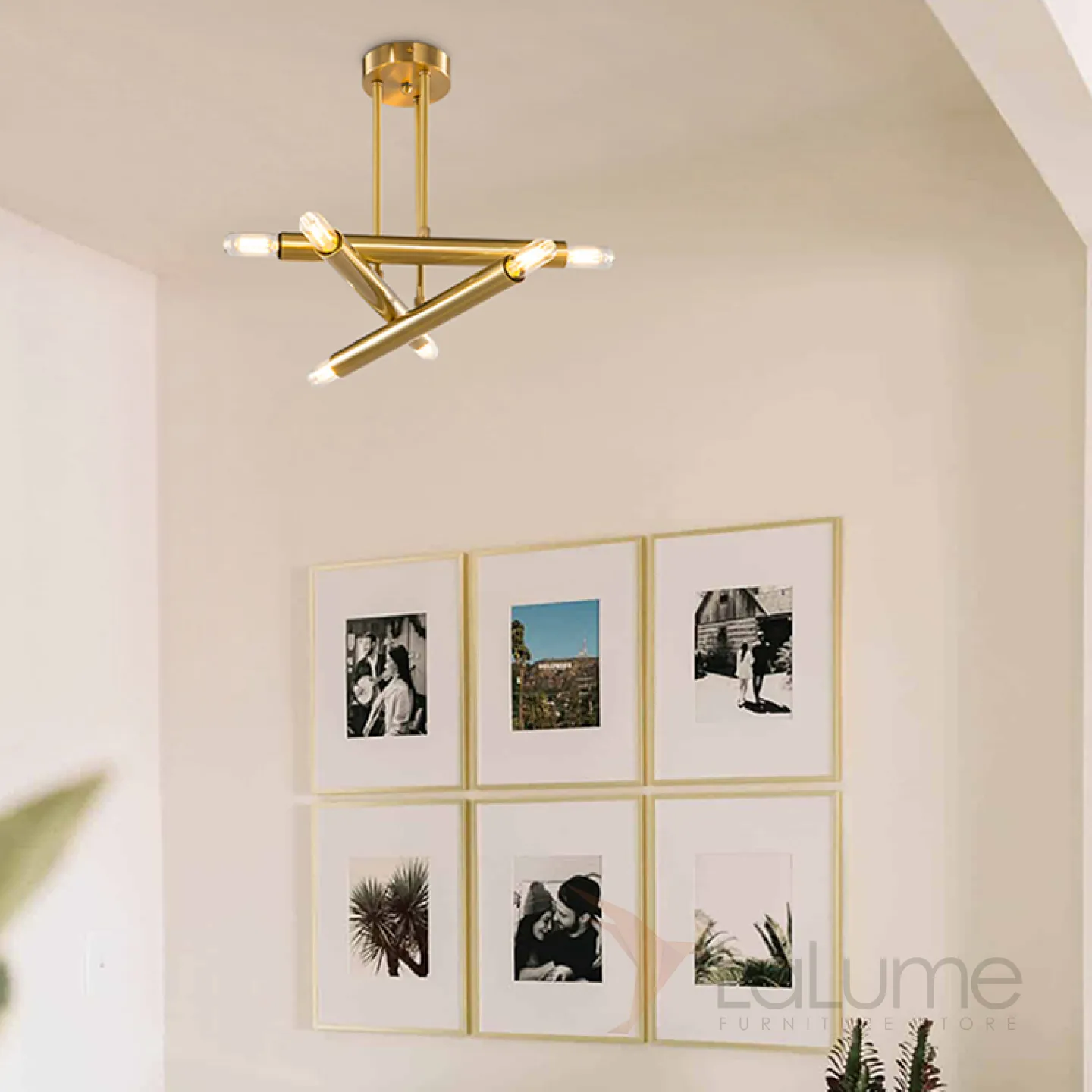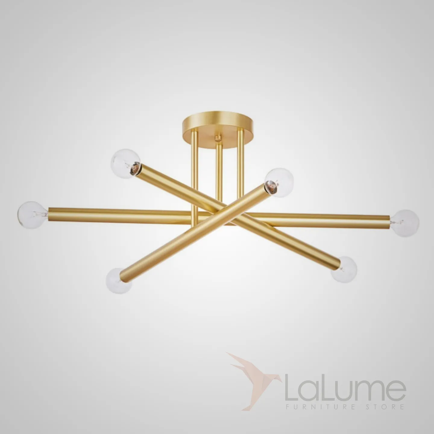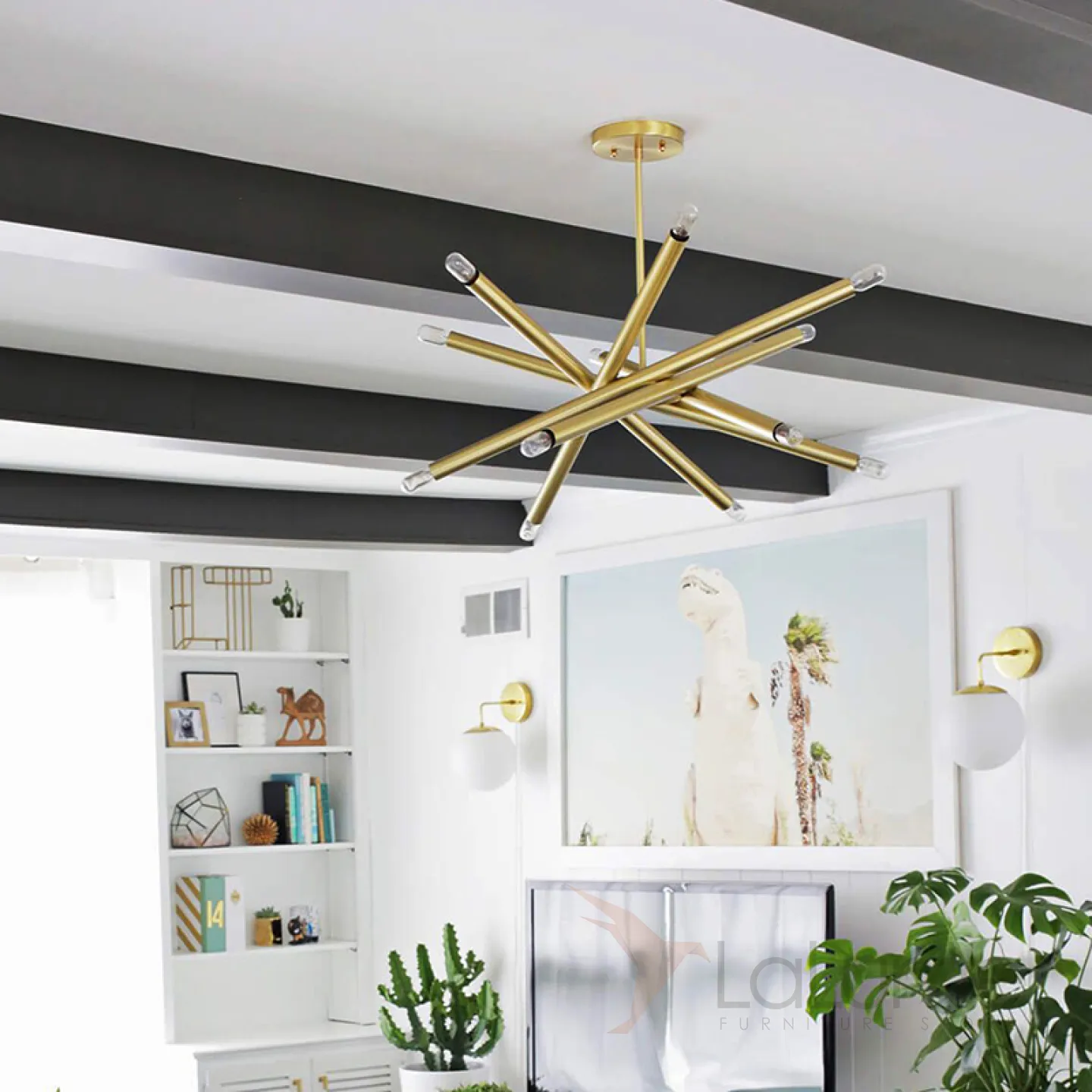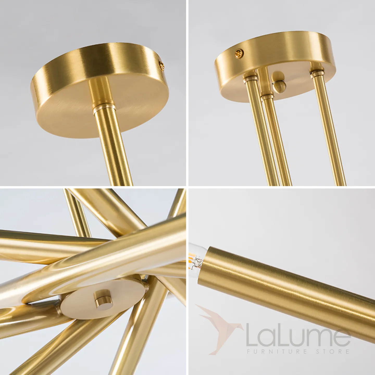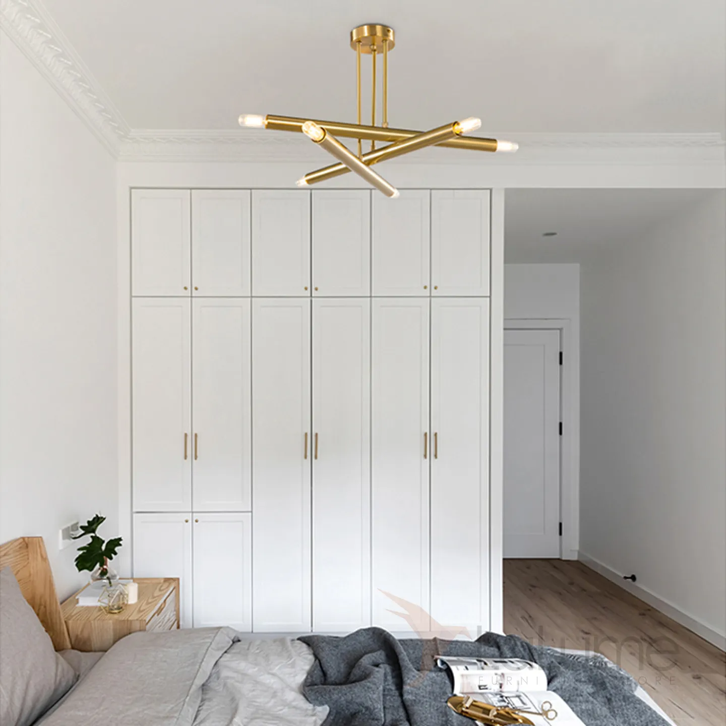 Люстра Spike с уникальным трубчатым асимметричным дизайном каркаса, заканчивающимся источниками света с обоих концов.