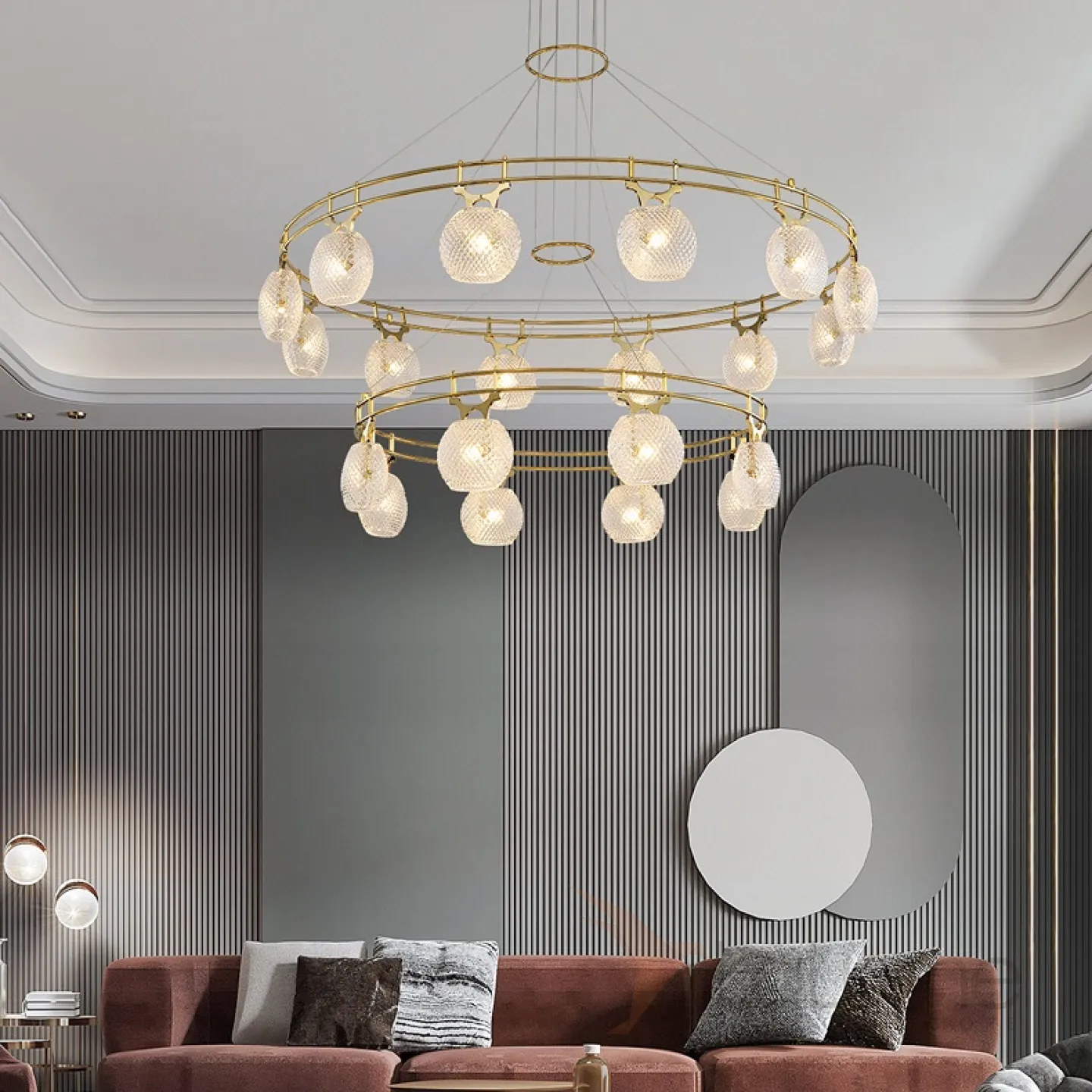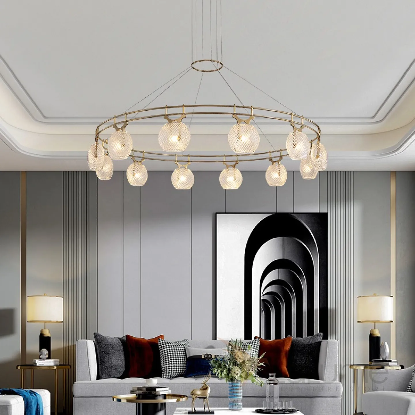 Кольцевая люстра с плафонами из рифленого стекла DORIS