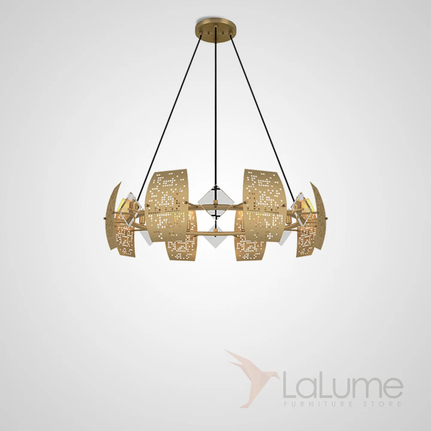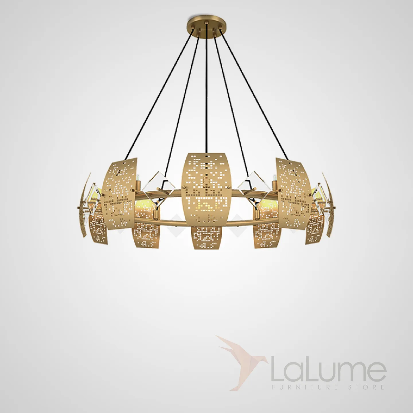 Серия кольцевых люстр с перфорацией и элементами из стекла DROPLET