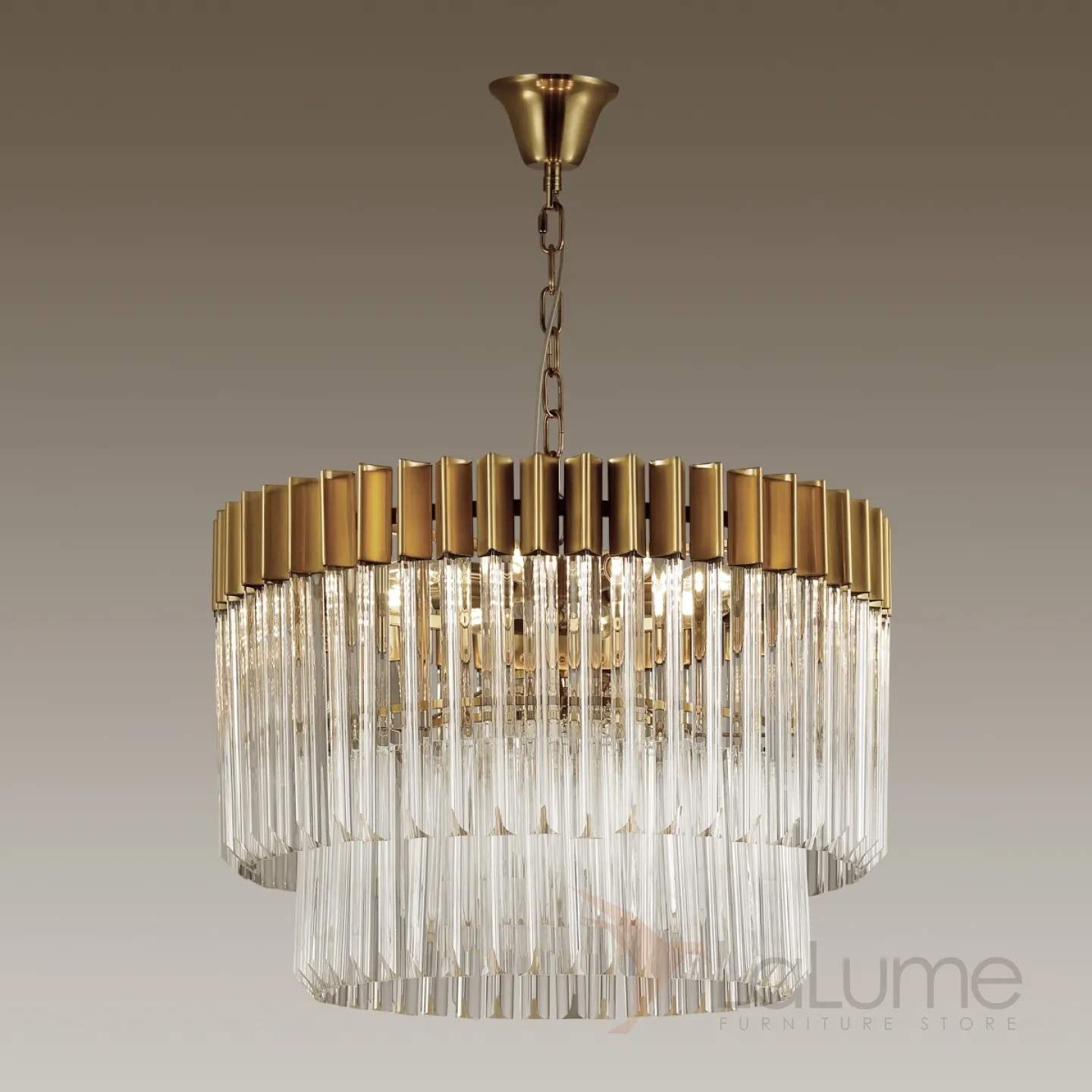 Двухъярусная люстра с бронзовым ободом и стеклянными подвесками ELMAR