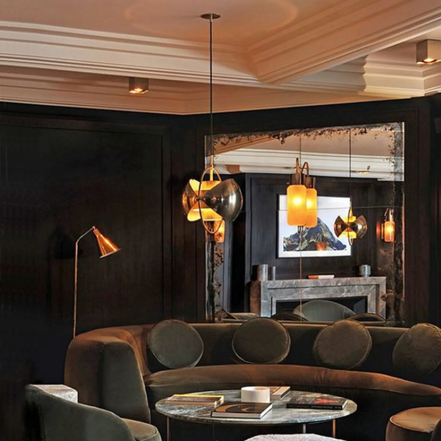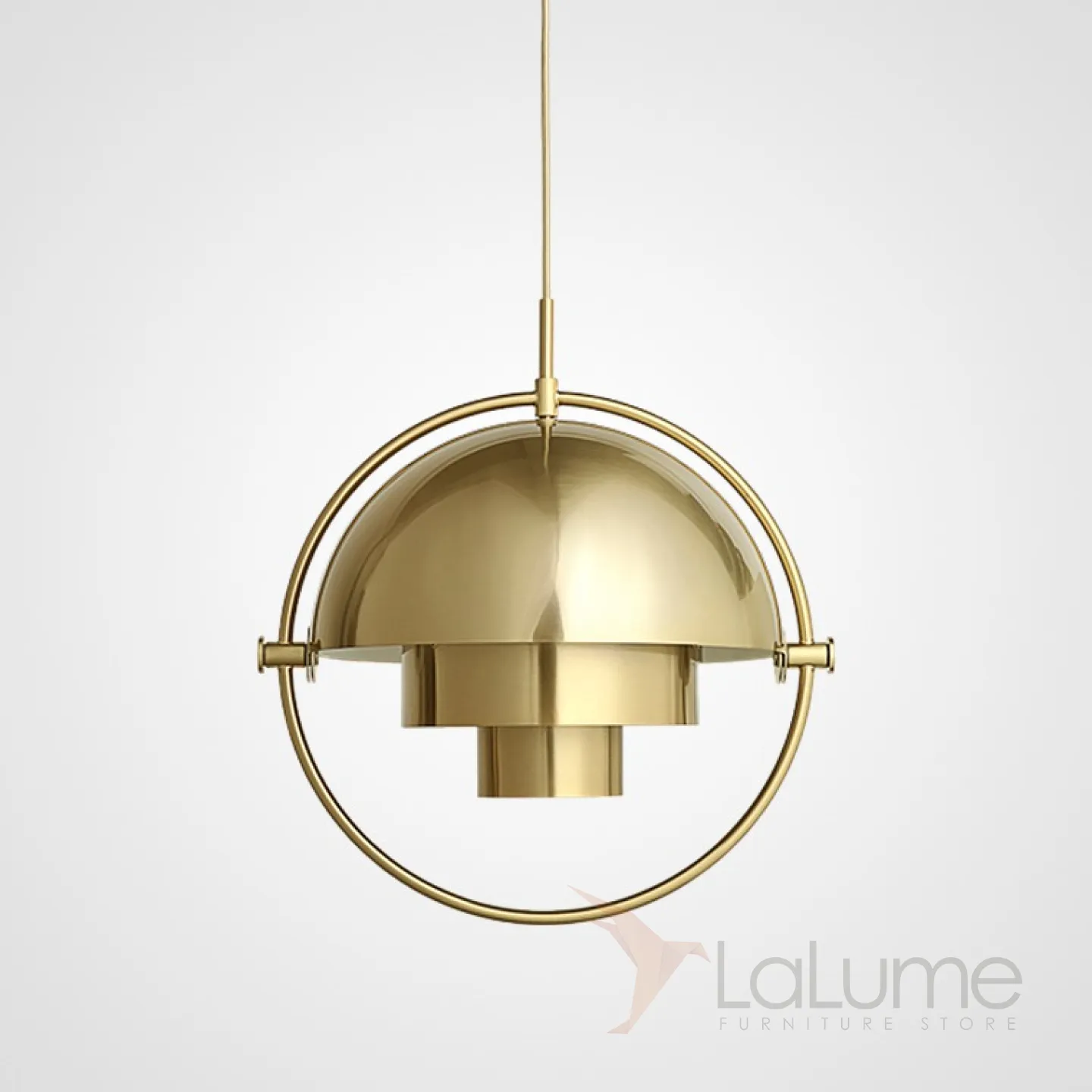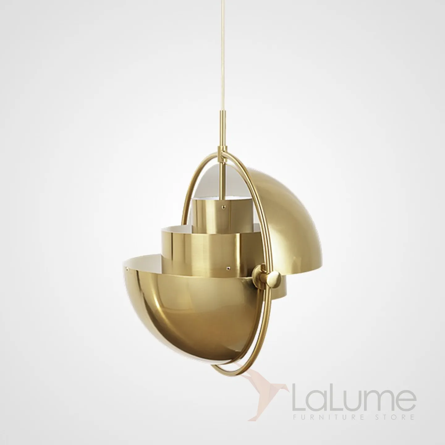 Дизайнерский светильник латунного цвета с интересным комбинированным абажуром.