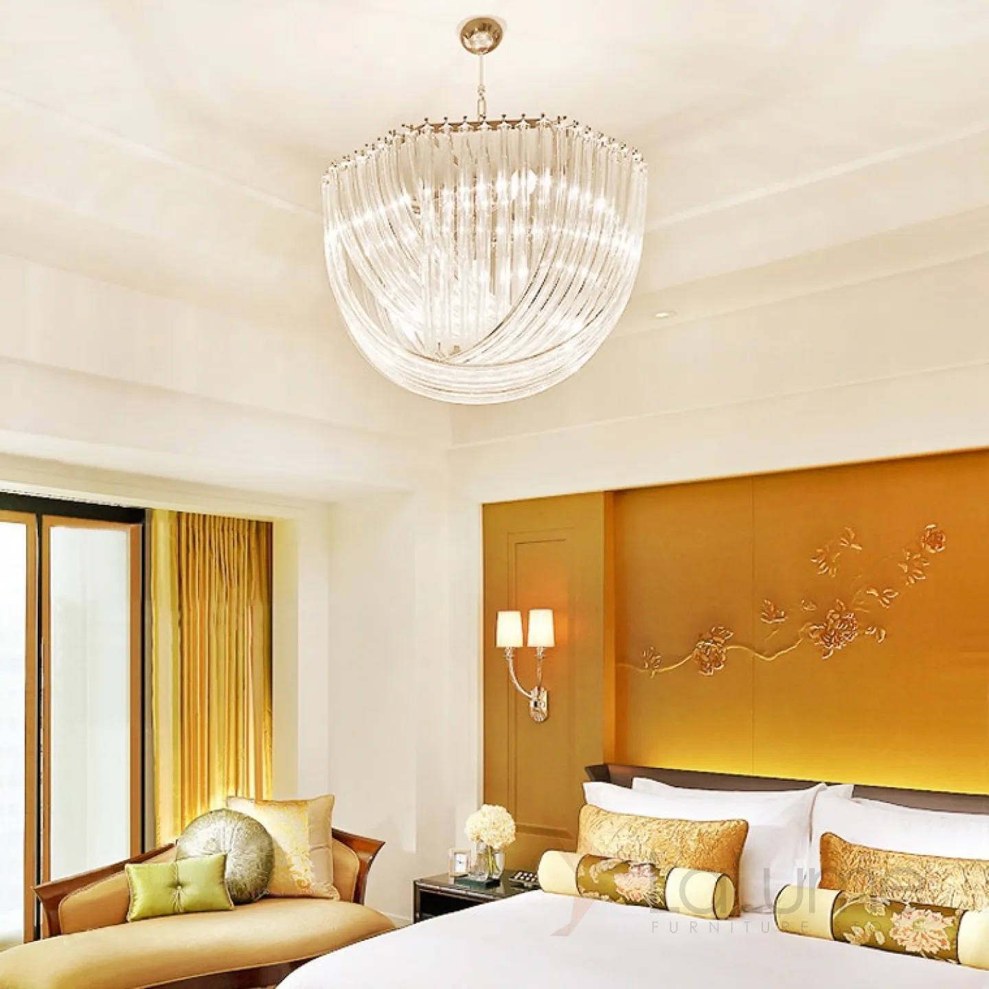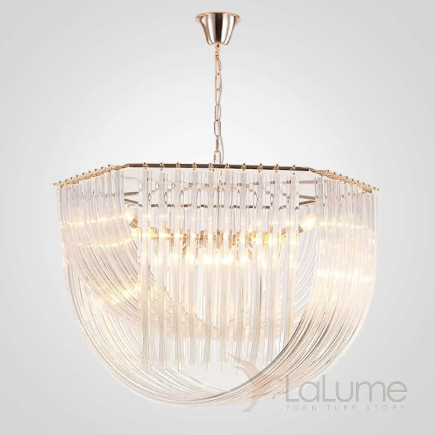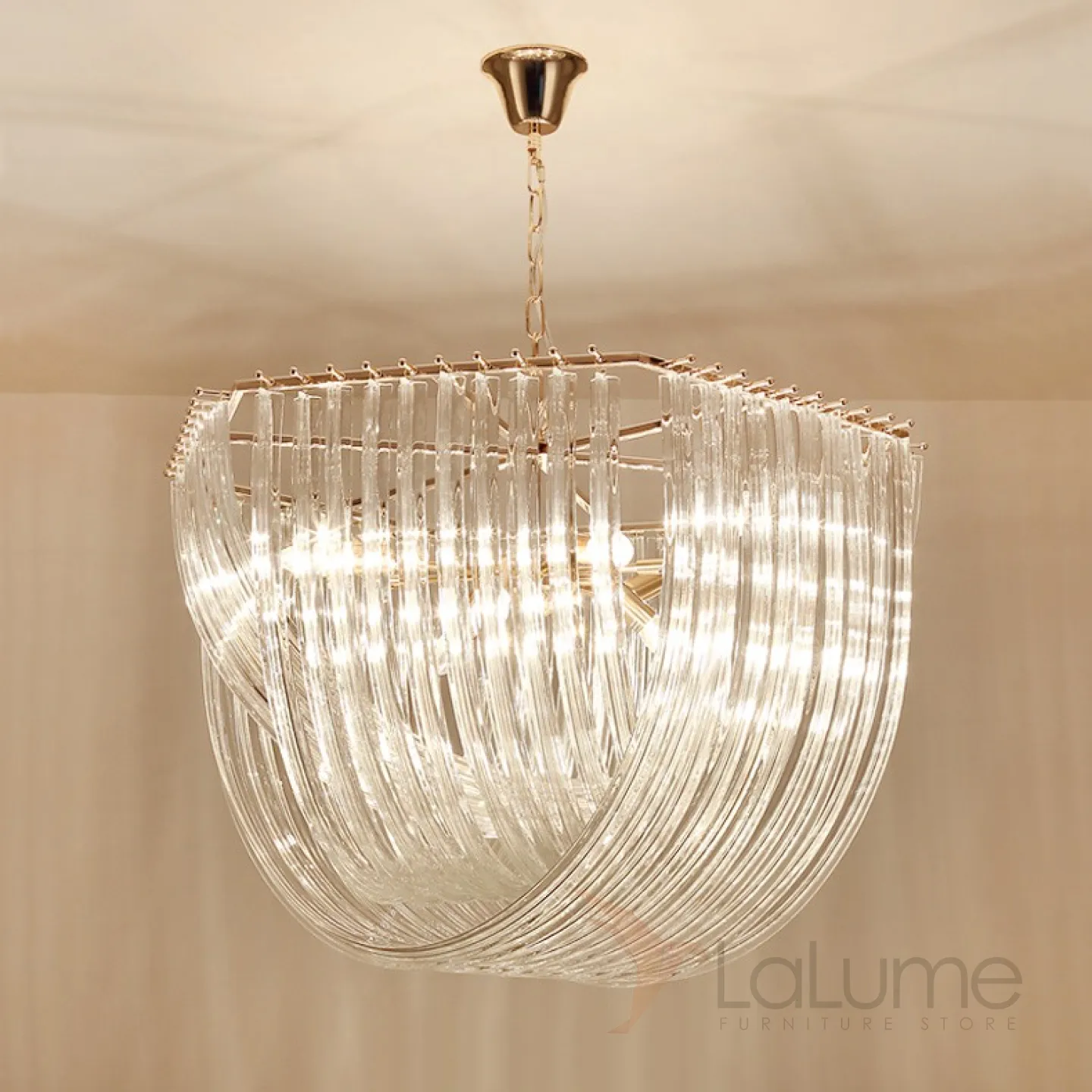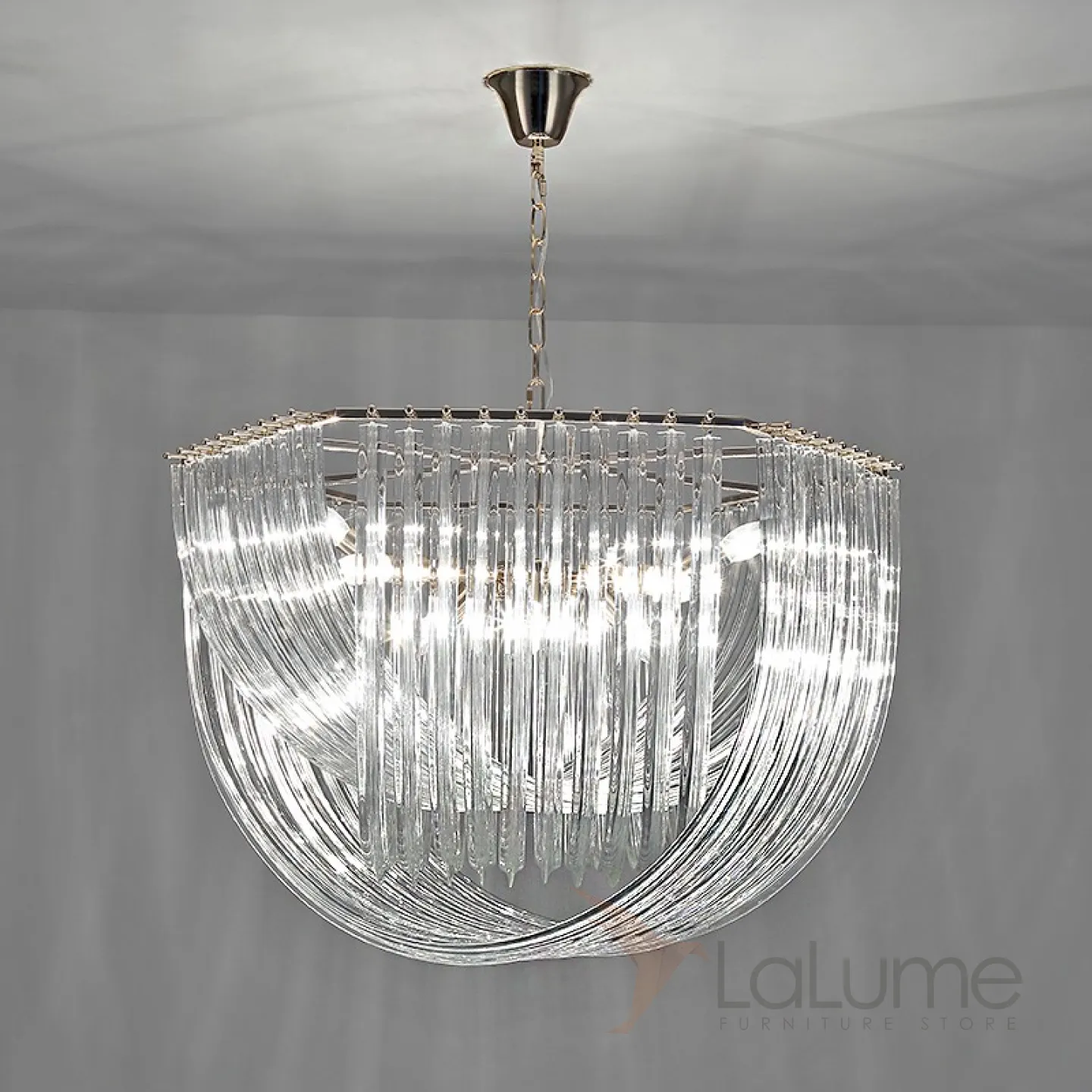 Люстра в стиле постмодерн с абажуром из фактурных стеклянных дуг различной длины. Динамичный каскад света, например, в вашей гостиной.