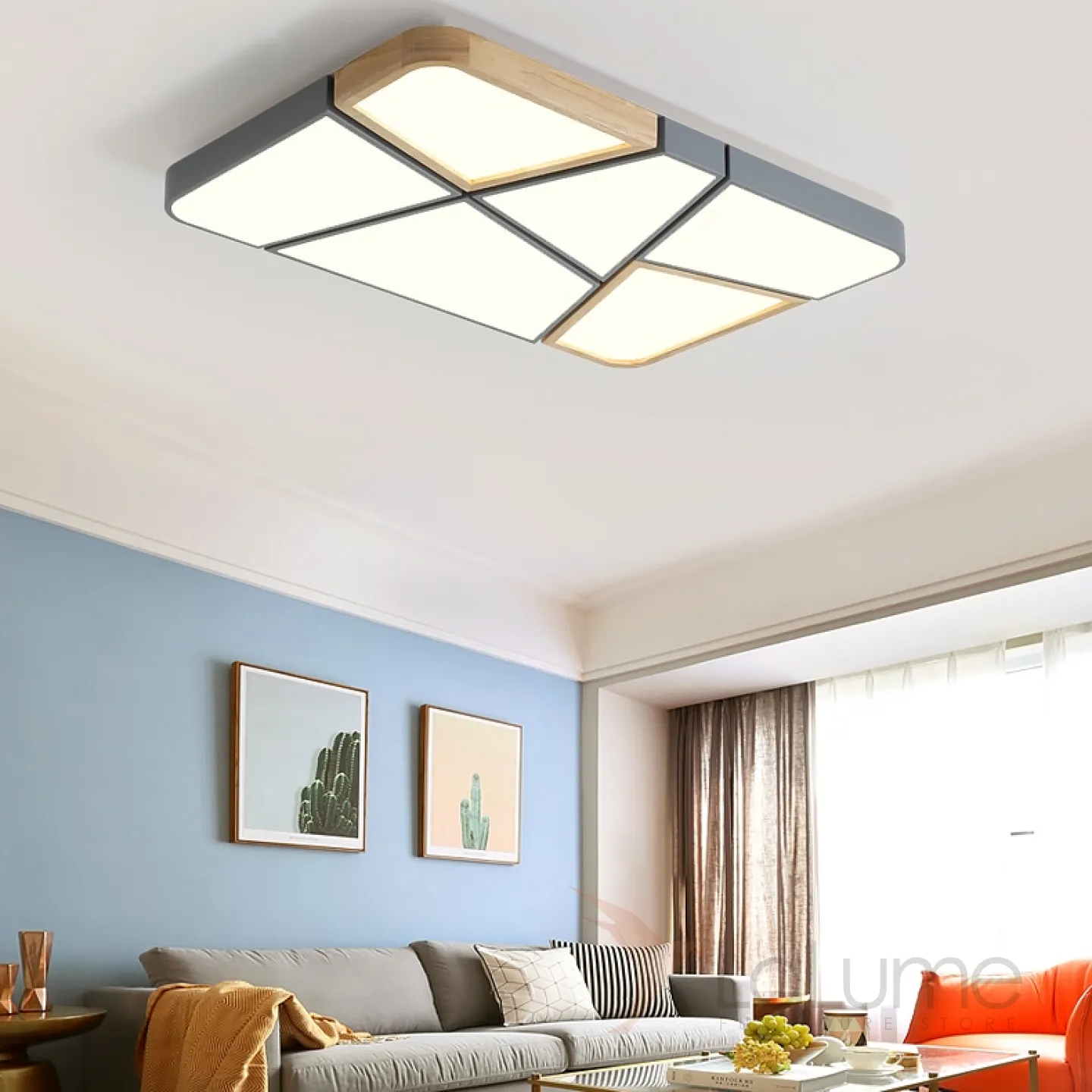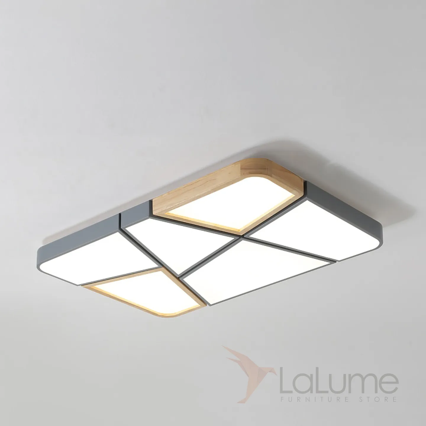 Прямоугольный потолочный светильник из асимметричных сегментов с деревянным декором FUST TWO