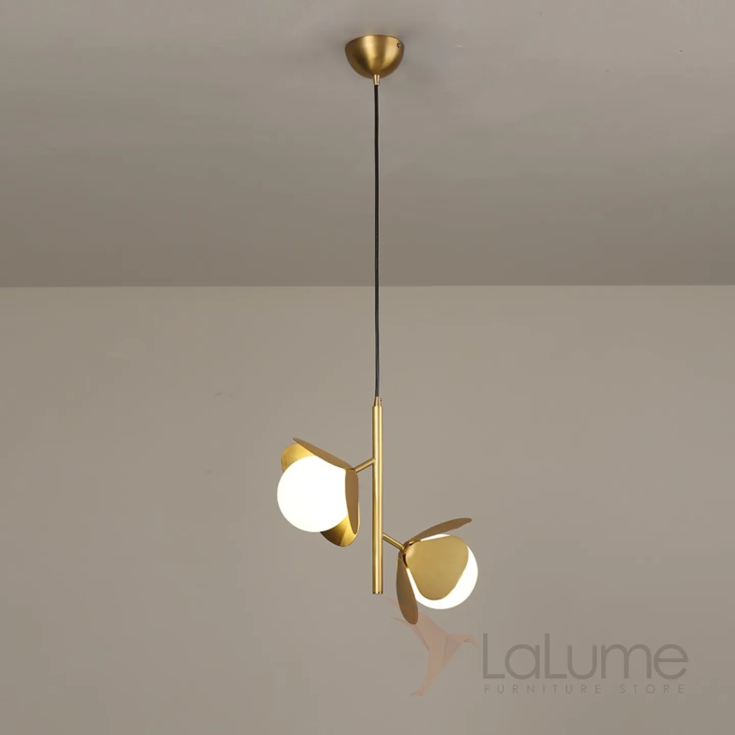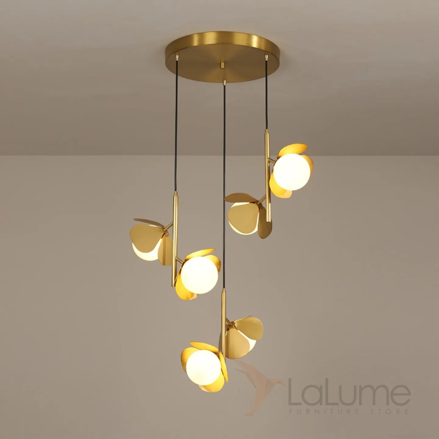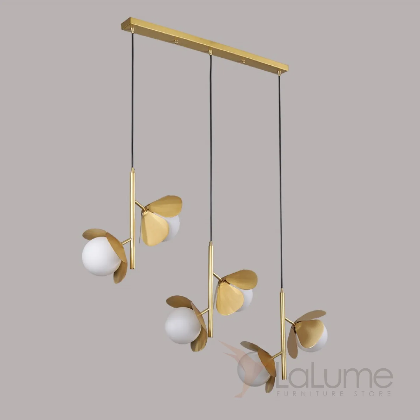 Готовая комбинация подвесных светильников с шарообразными стеклянными плафонами внутри металлического цветка JANITA MORE