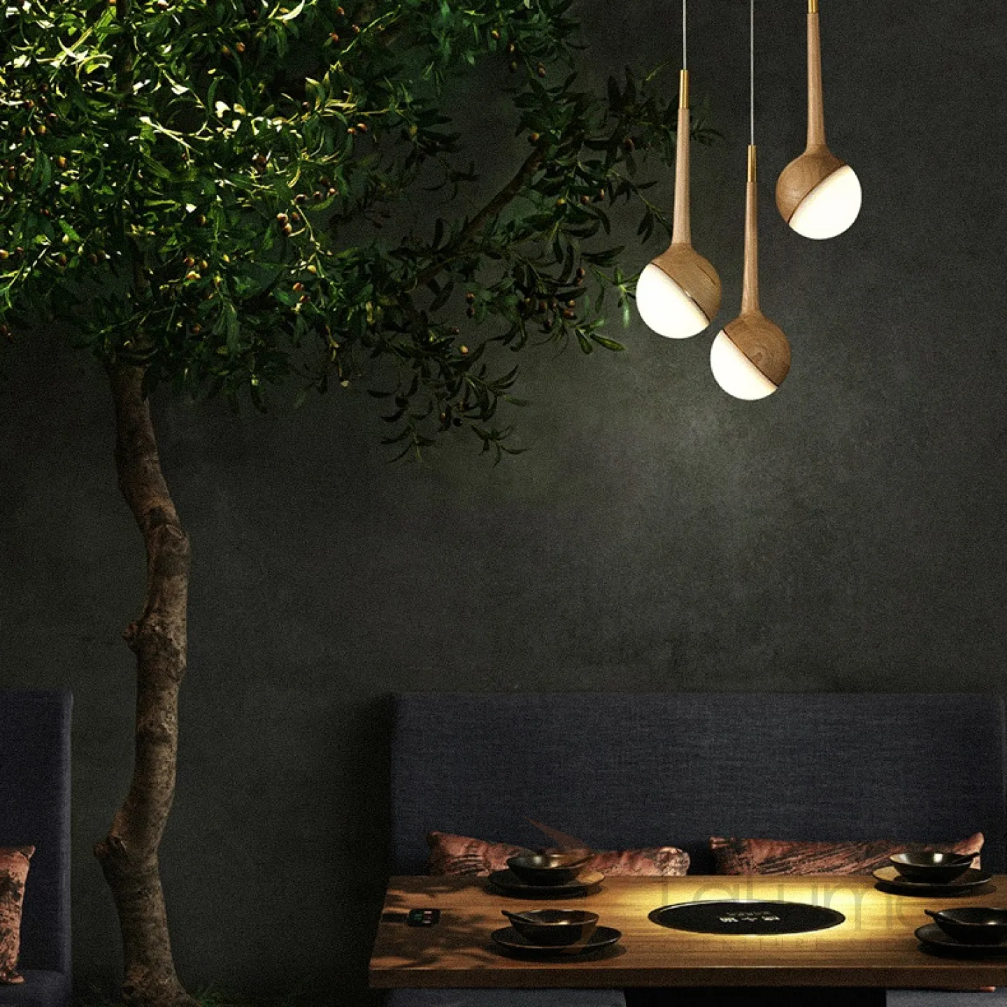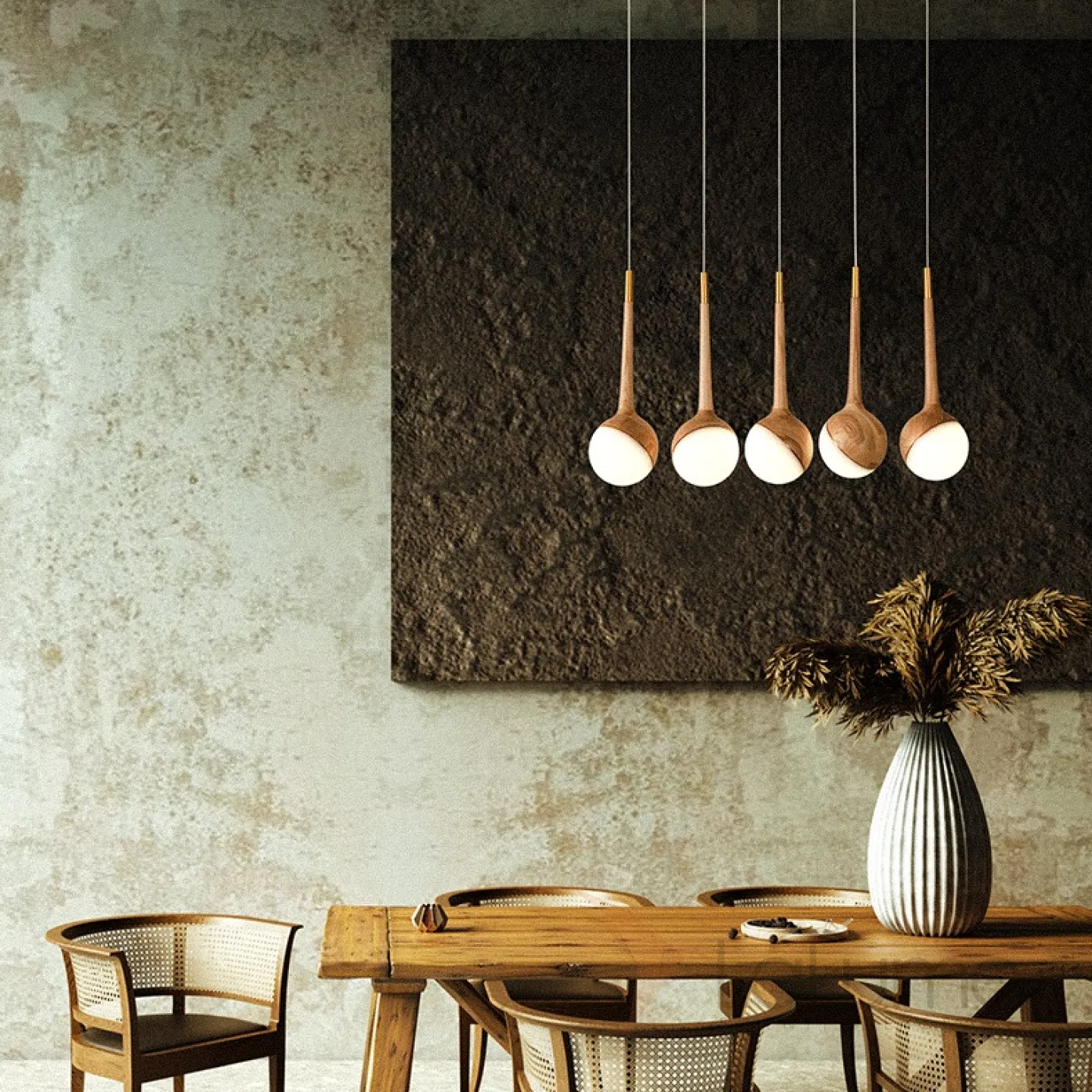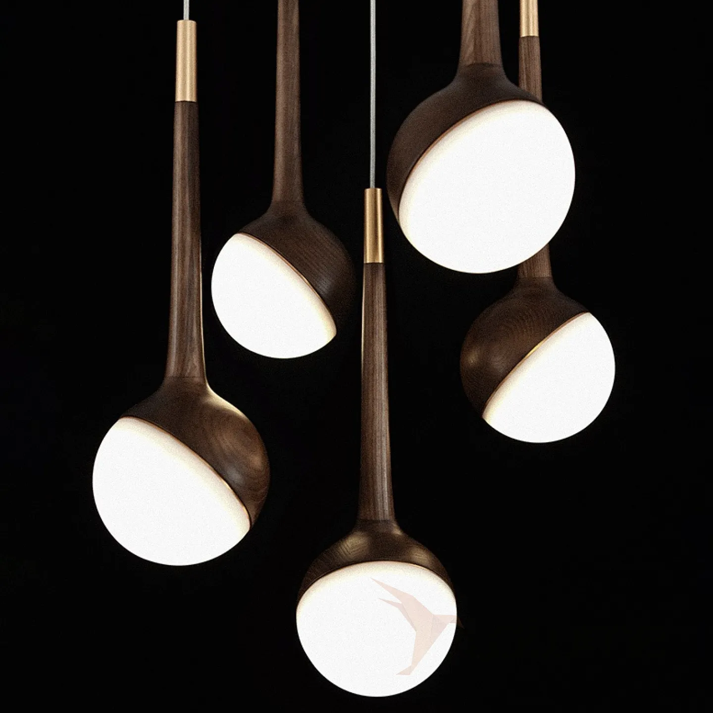 Готовая комбинация светодиодных светильников с шарообразными плафонами внутри деревянного каркаса AGNIS MORE