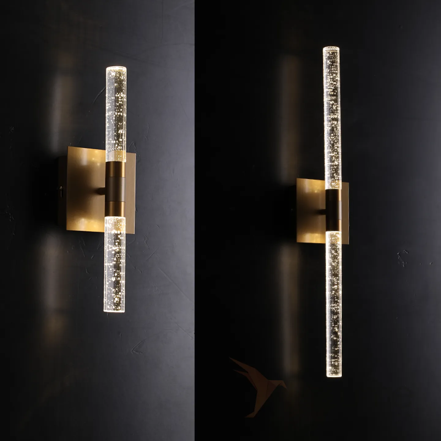 Современные настенные бра Crystal A способны заменить любой настенный декор и стать изюминкой вашего интерьера.Эти кристаллические пузырьки создают атмосферу волшебства. А если вам захочется сменить прямые линии на более игривы, просто поверните основание по диагонали и светильники заиграют по новому!