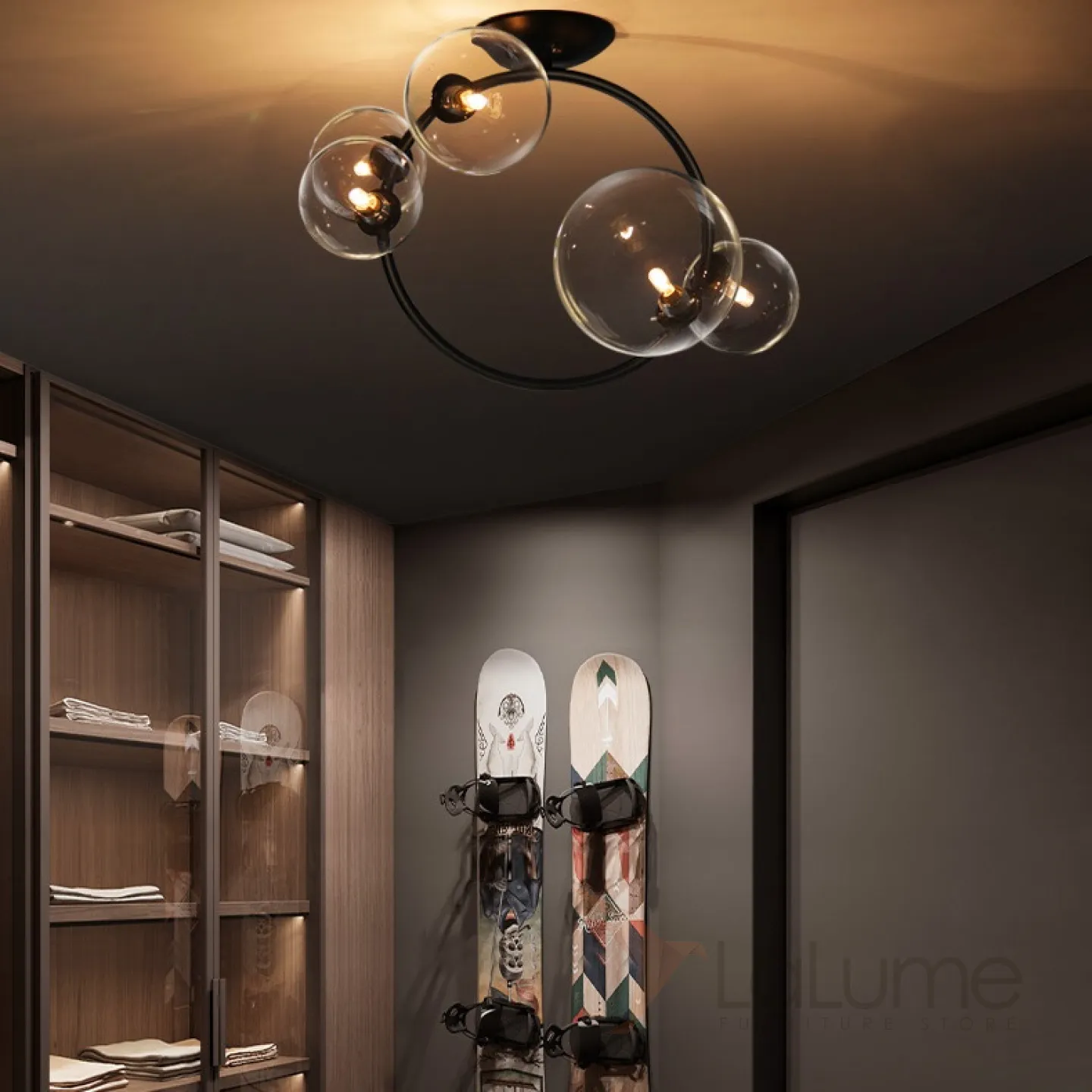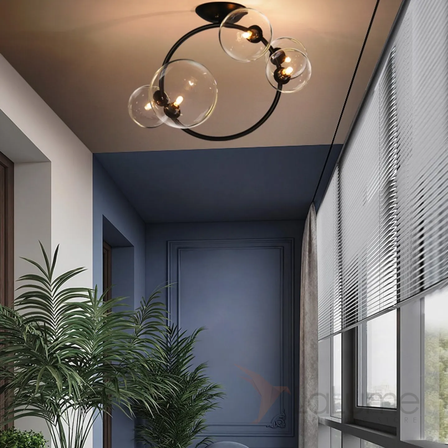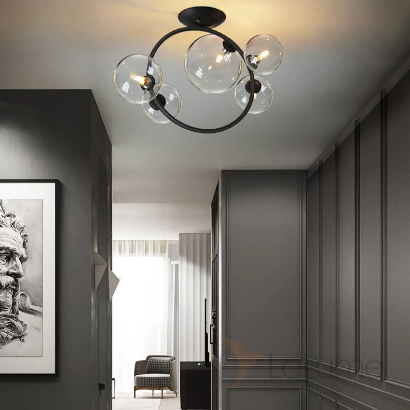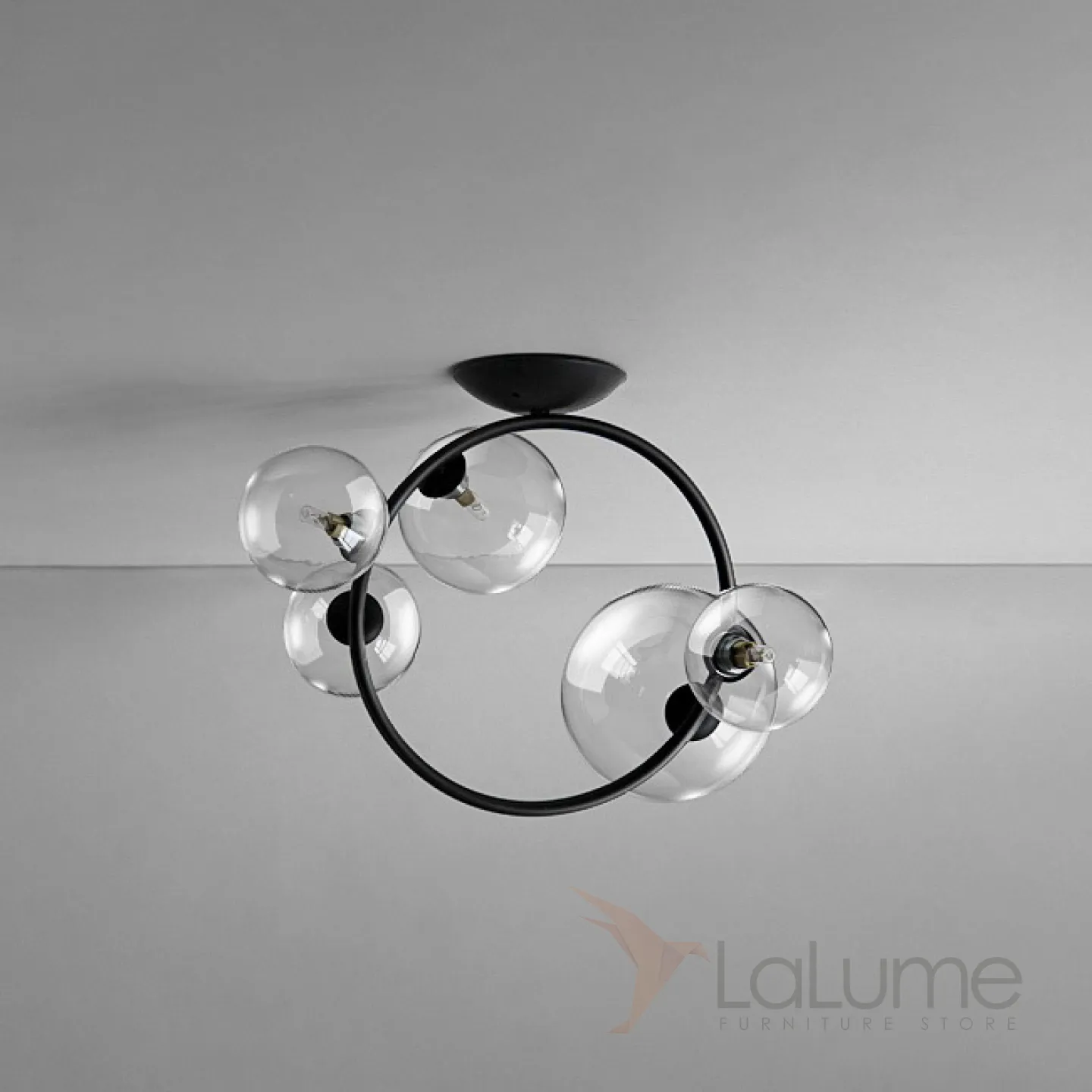Потолочная люстра с круглыми стеклянными плафонами разного размера на кольцевом каркасе IONA C