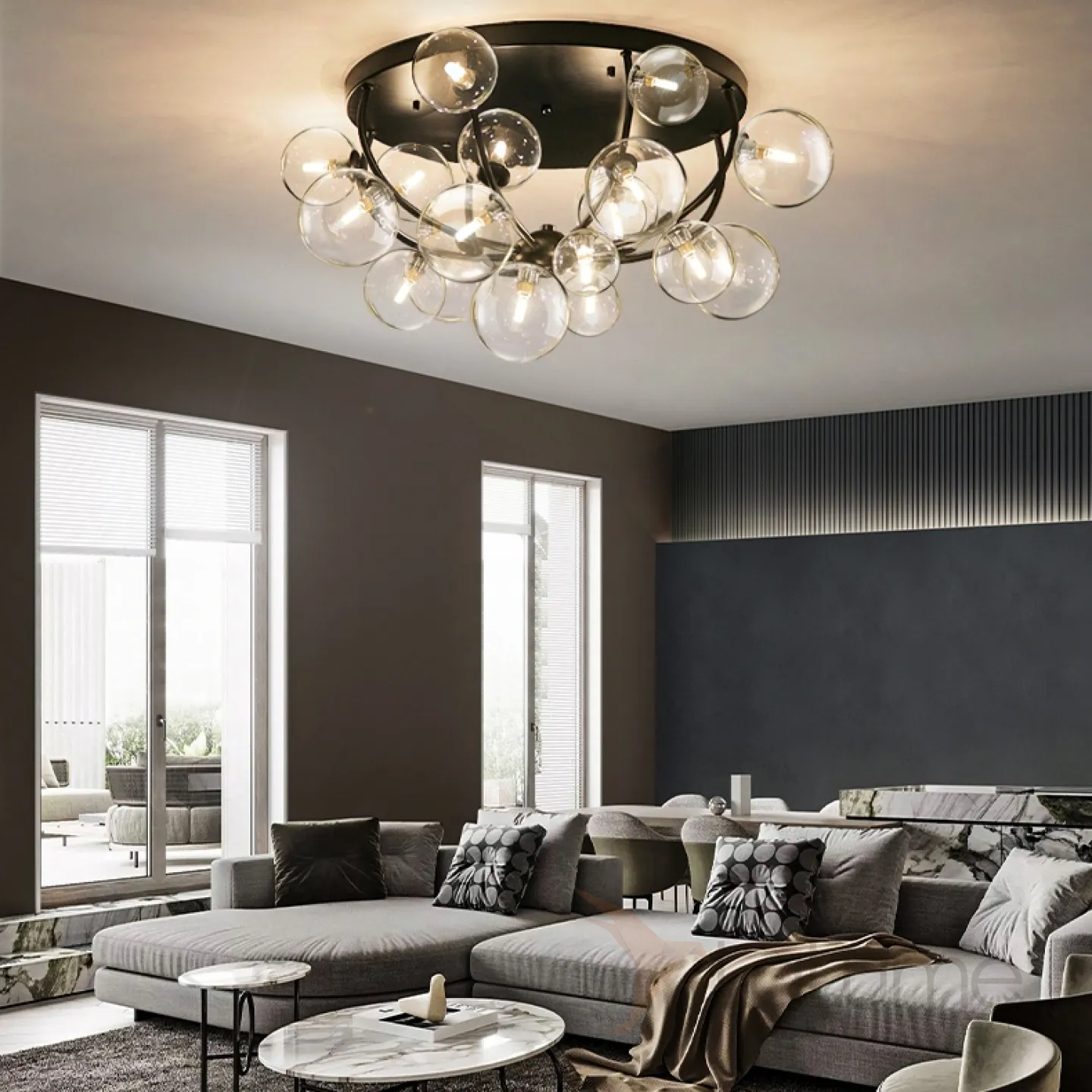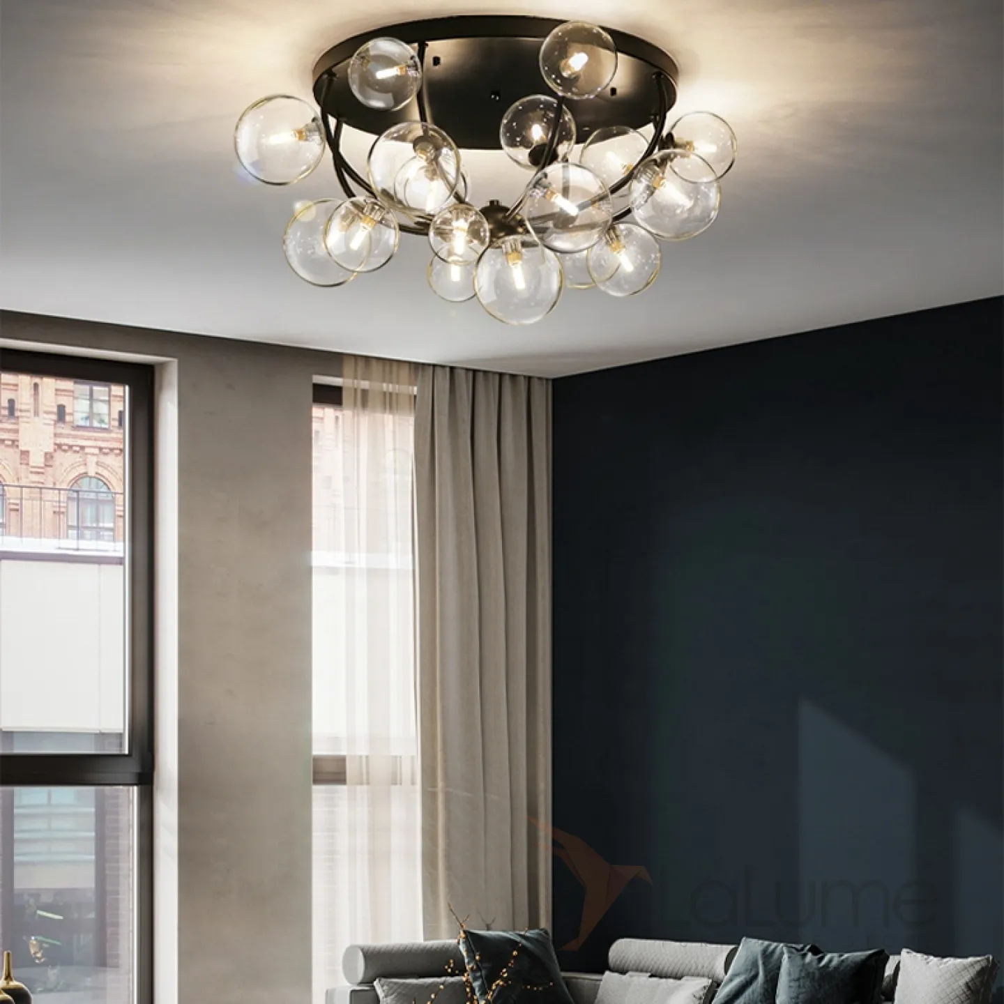 Потолочная люстра с круглыми стеклянными плафонами разного размера на радиально расположенных дугах IONA OCTO