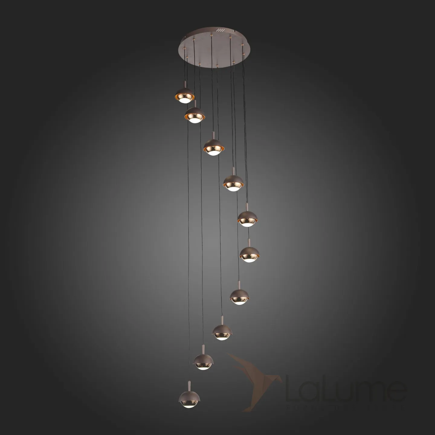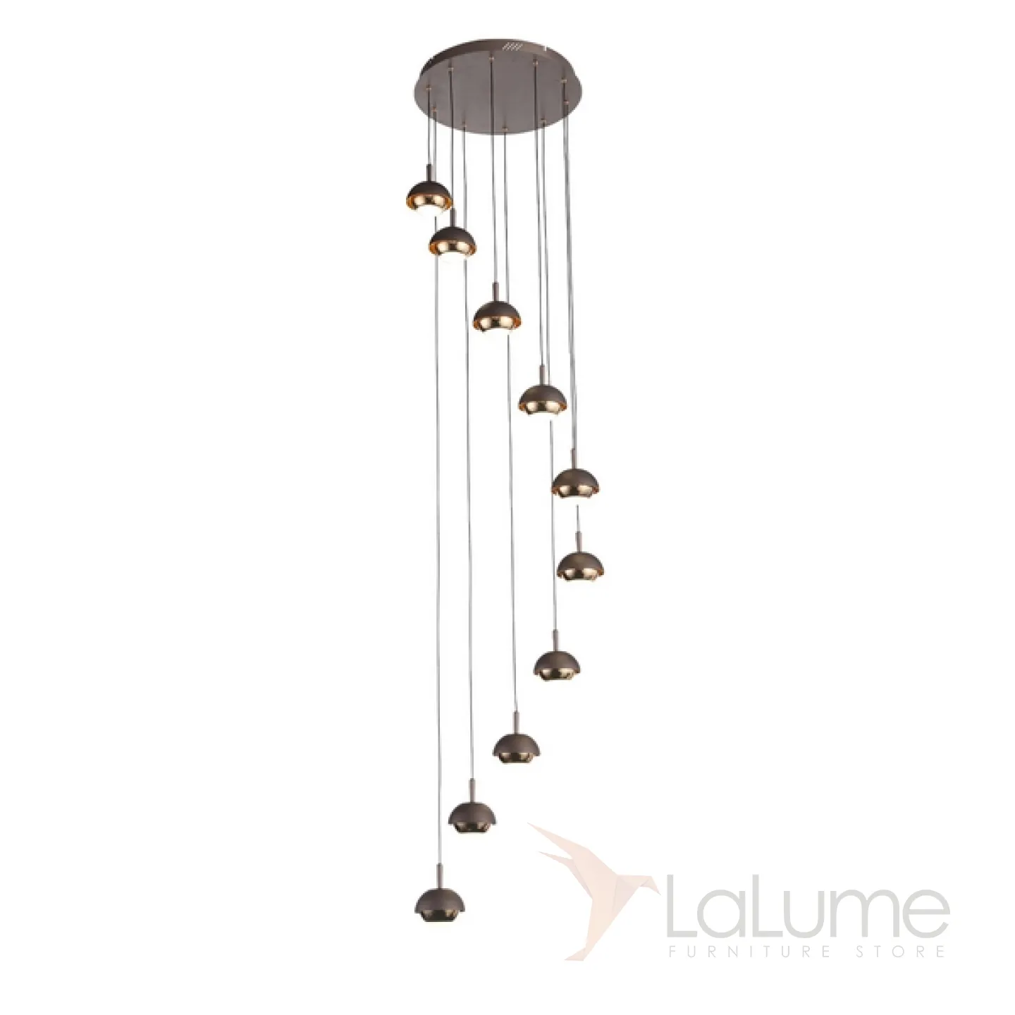 Каскадный светильник на 10 подвесов с матовыми плафонами коричневого цвета RUSSO MORE