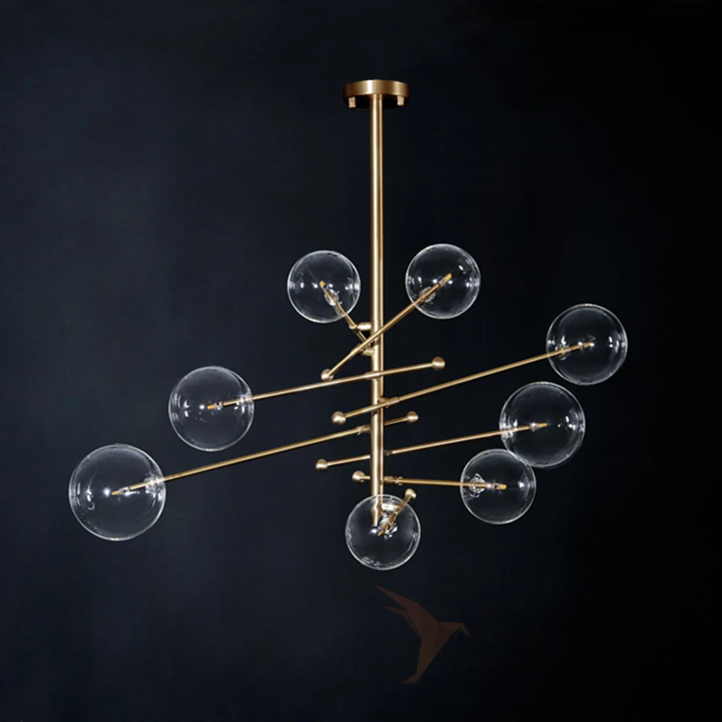 Дизайнерская люстра в стиле постмодерн со стеклянными шаровыми плафонами на подвижных штангах KATRIN