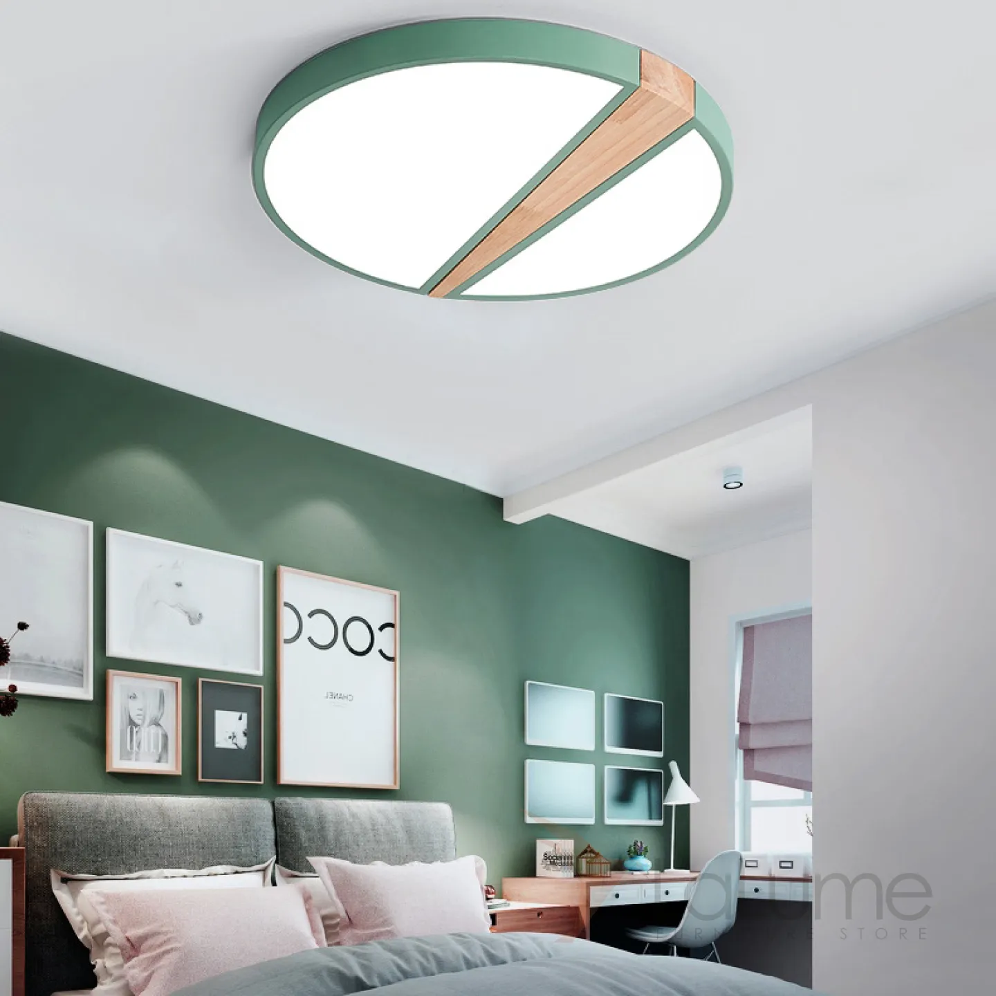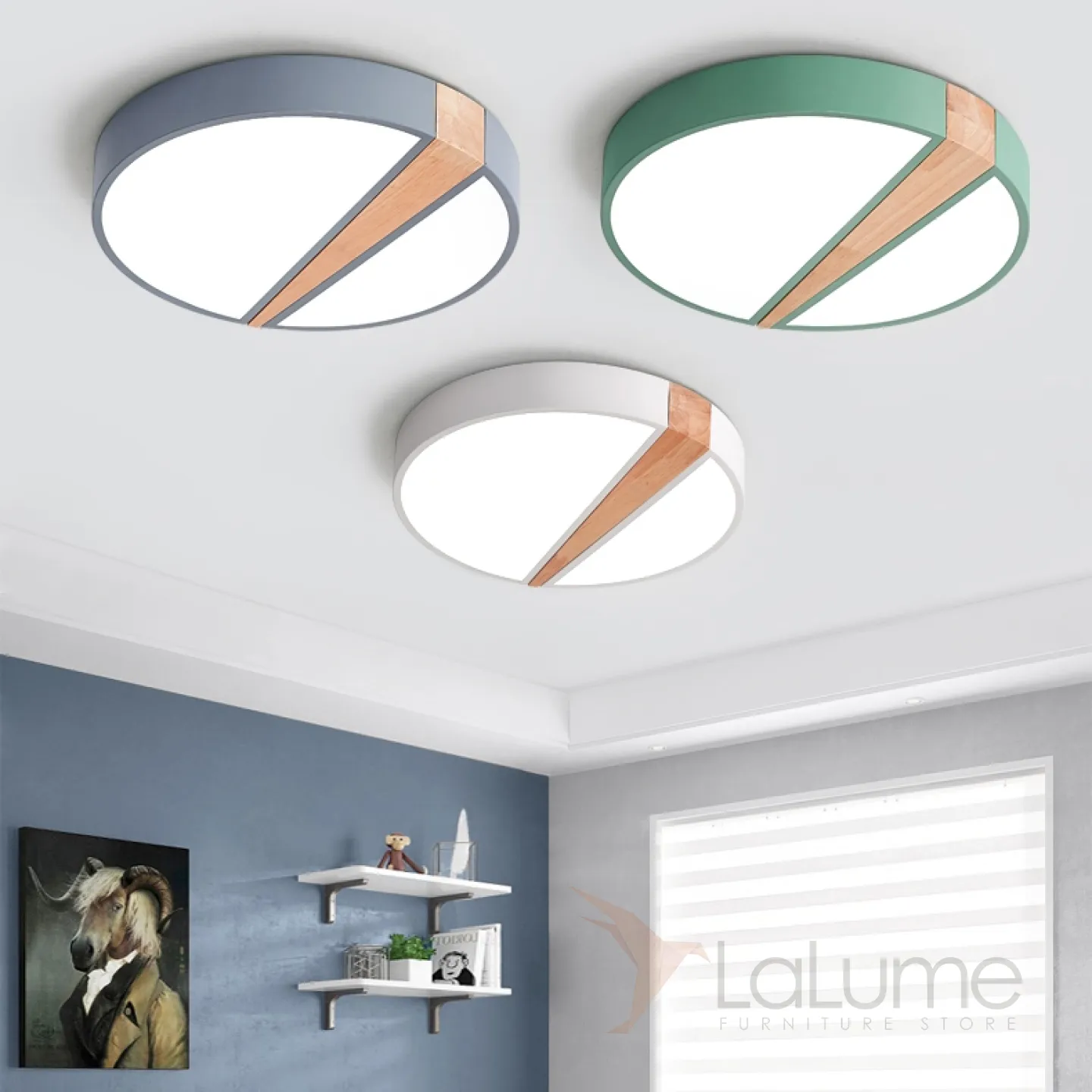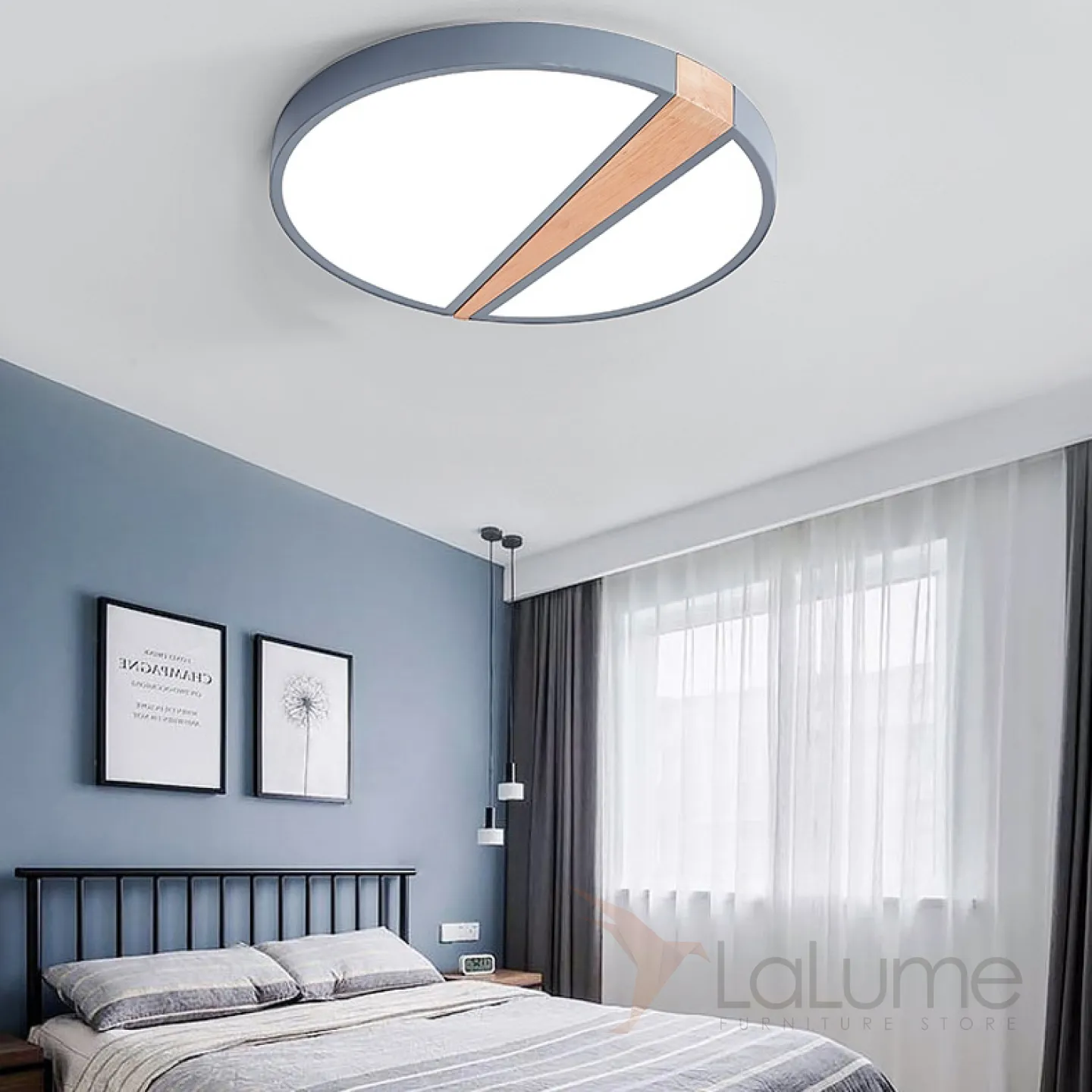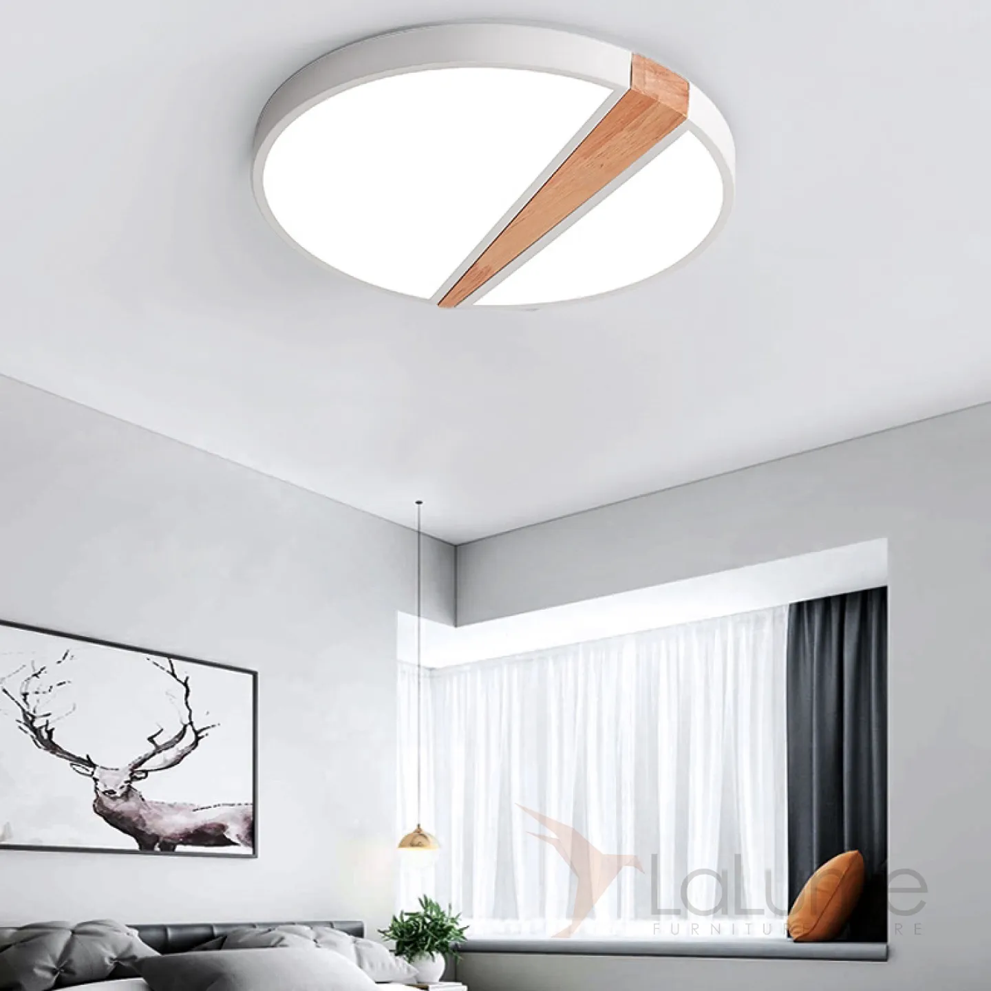 Потолочный светильник в скандинавском стиле с каркасом из металла и деревянным декором KETLIN