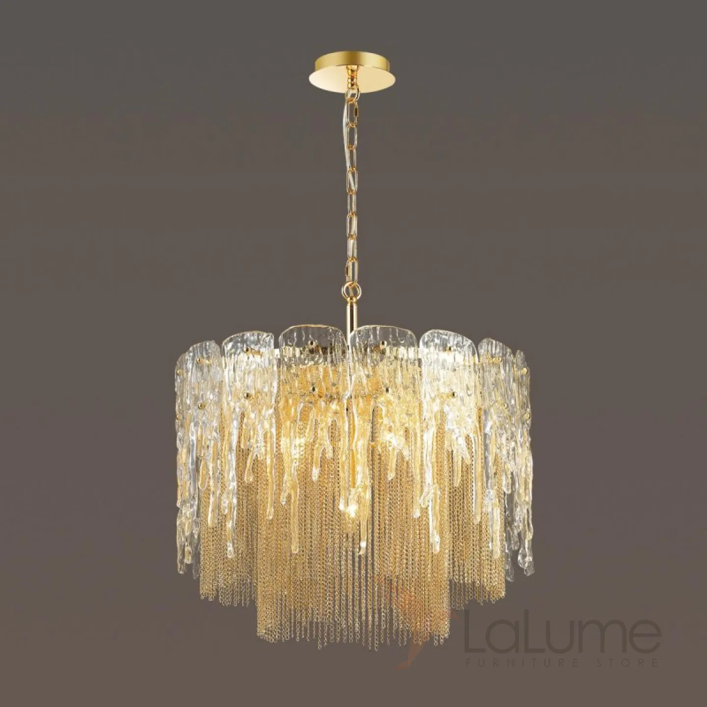 Люстра с декором из фигурного стекла и цепочек разной длины KINDI