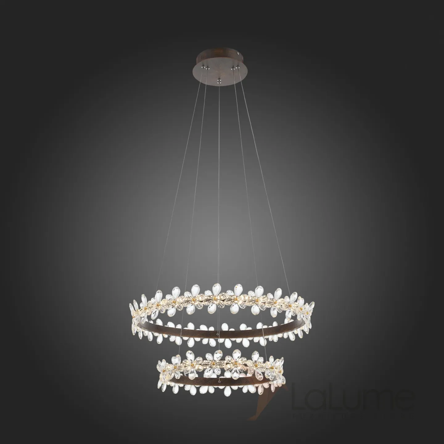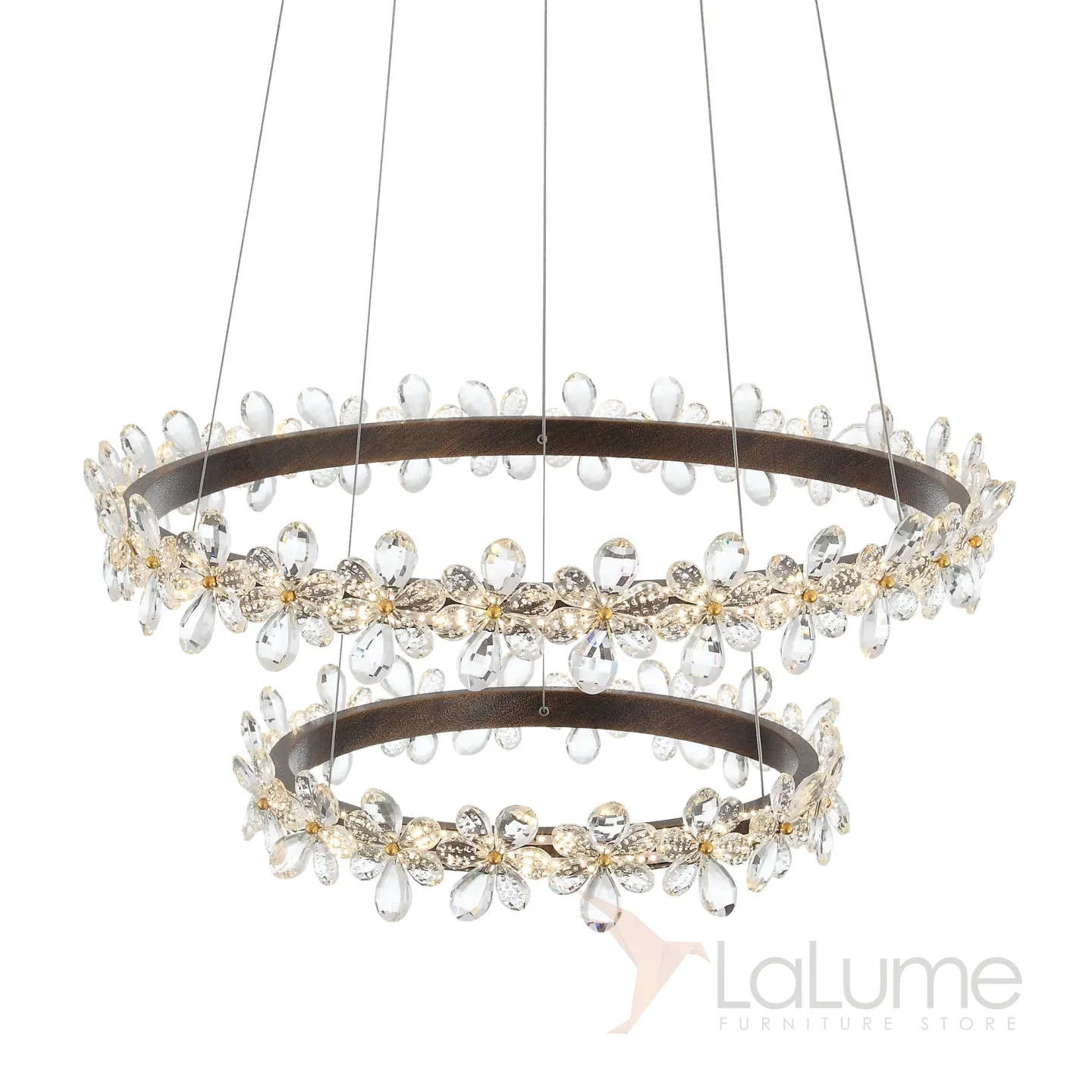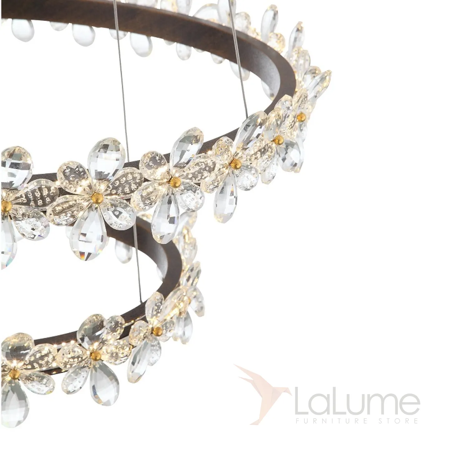 Кольцевая светодиодная люстра с плафоном из хрустальных цветов KRAFUR