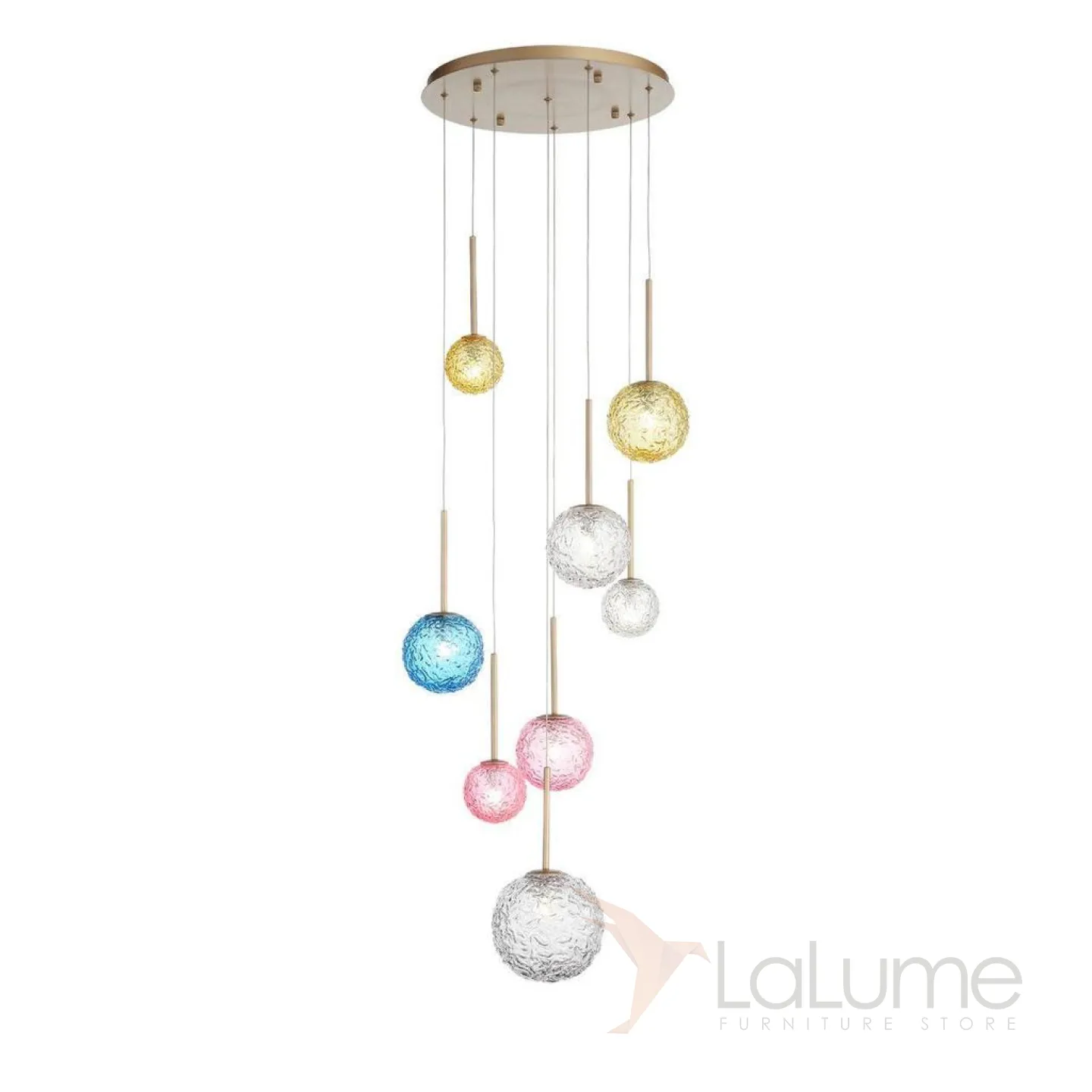 Комбинация подвесных светильников с разноцветными круглыми плафонами из прозрачного фактурного стекла RIO COMBO